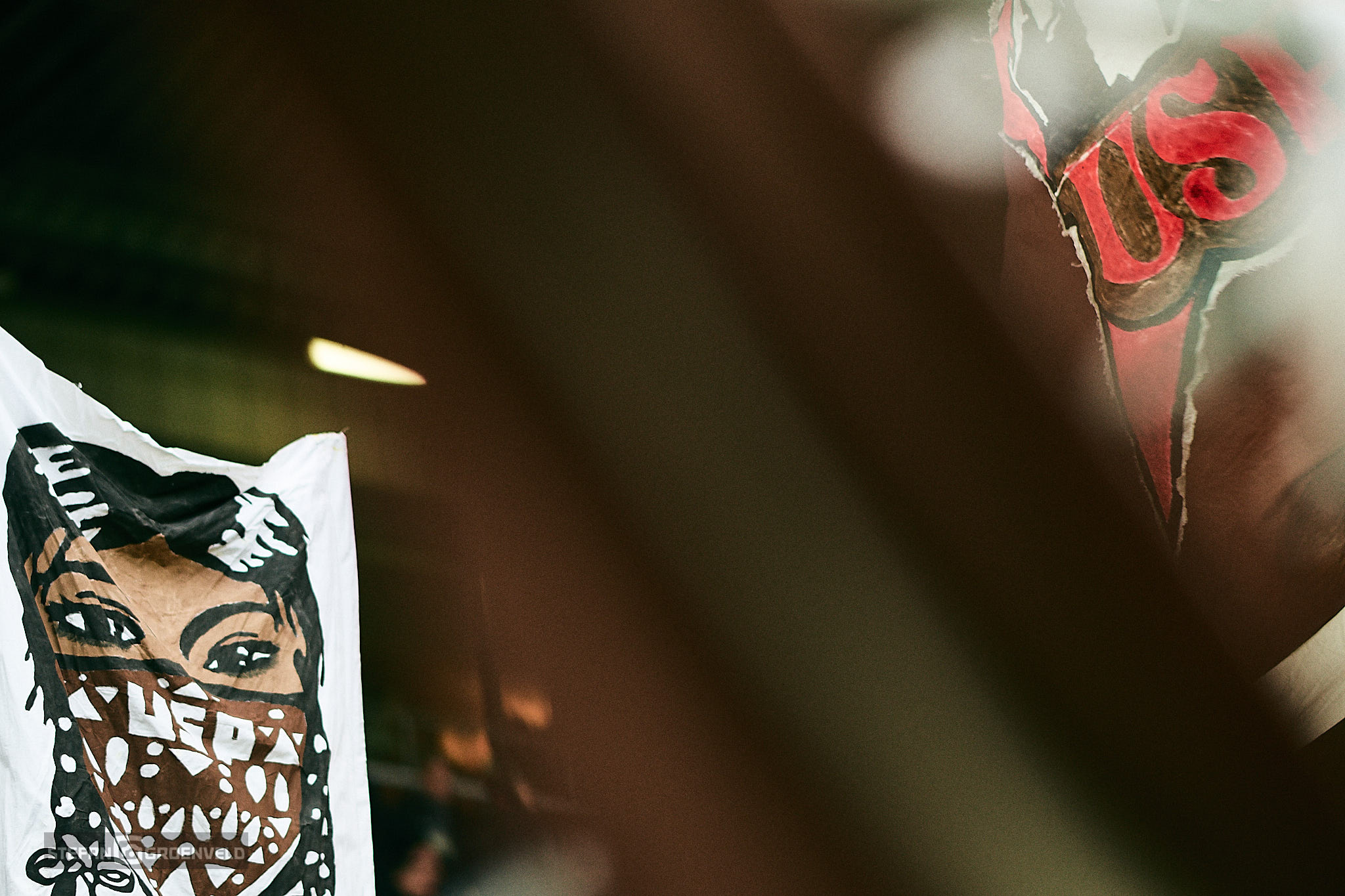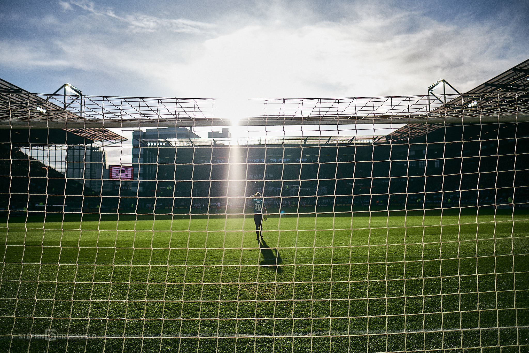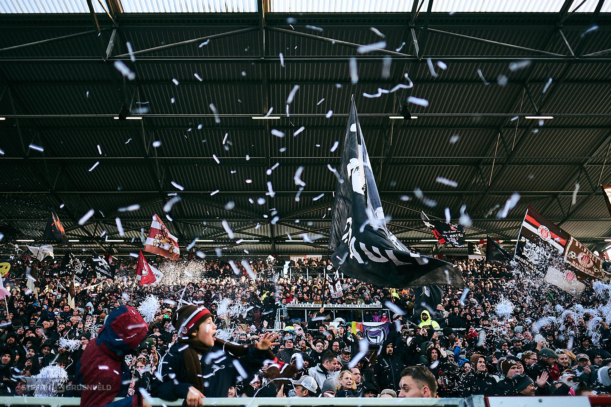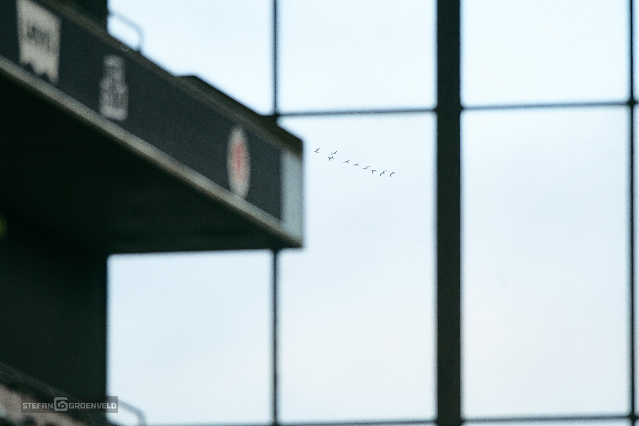 Ein halbe Stunde sind die Männer in braun und weiß überrascht, dass sie gegen ein Team mit einer Idee vom Spiel antreten. Jahn Regensburg ist am Millerntor zunächst immer näher am Ball, setzen den Gegner unter Druck, die eigenen Pässe kommen an und noch bevor es der FC St. Pauli schafft, erstmals auf des Gegners Tor zu schiessen, steht es auch schon 0:2 gegen das Heimteam. „Aufwachen, Aufwachen“ skandieren die Fans. Olaf Janssen wechselt gleich doppelt und die nächsten zwei Torschüsse sind dann auch drin. 2:2 zur Halbzeit, auch wenn der Ausgleich kurz vor der Pause aus nicht mal knapper Abseitsposition erzielt wird. Egal, das macht Hoffnung für die zweiten 45 Minuten.