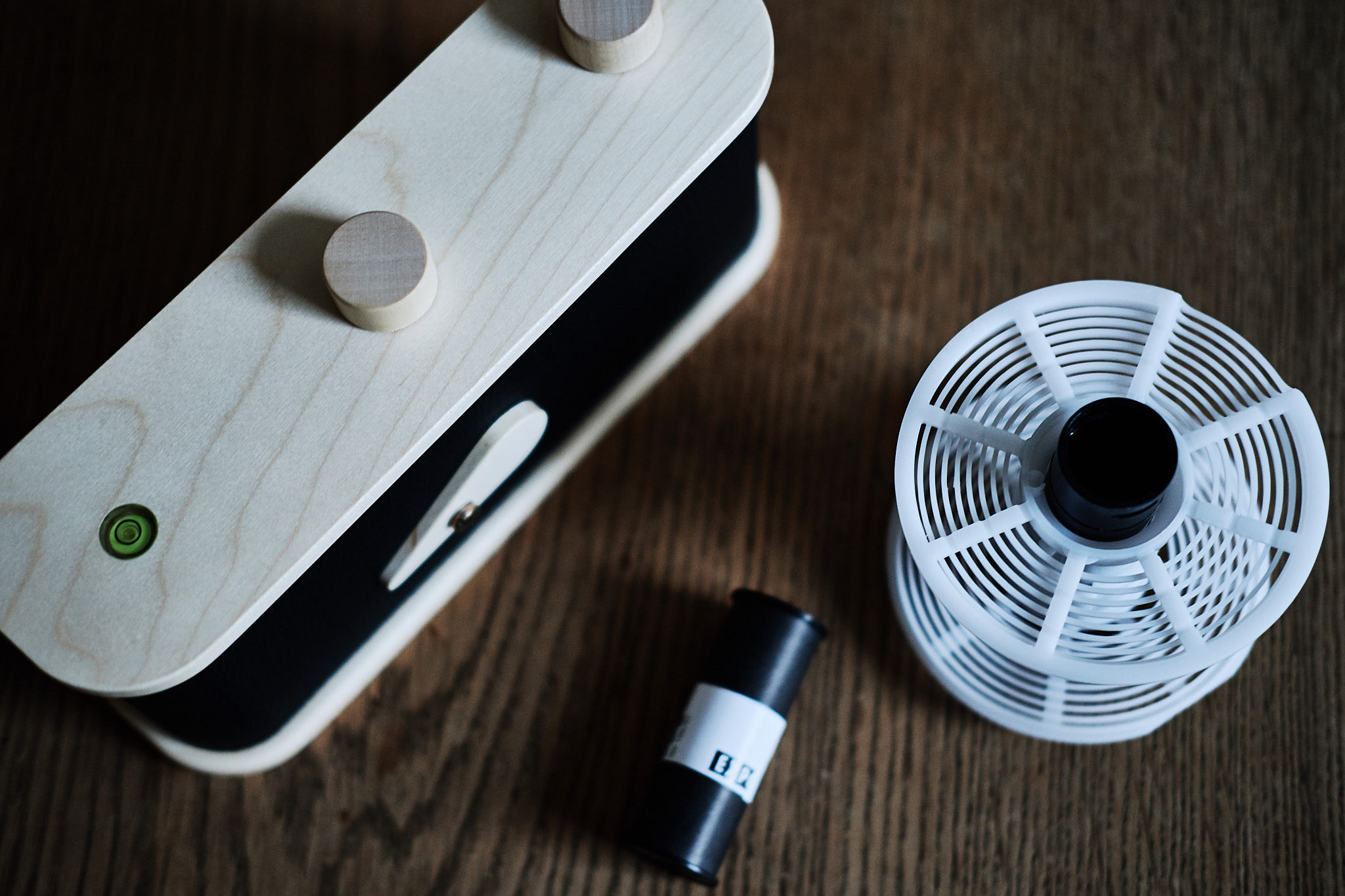 Ich verspüre immer wieder den Drang, alle möglichen Kameras mal auszuprobieren. Gerade bei analogen Kameras finde es interessant, weil du da so fotografierst, wie es hinterher ist. Durch Zufall stolperte ich über die Ankündigung, dass es in einem meiner Hamburger Kameraläden meines Vertrauens jetzt die Lerouge 612 Lochkamera gibt. Genau mein Ding und für 150€ kannst du ja auch praktisch nichts falsch machen. Und schwupps stand ich am nächsten Tag im Laden und hatte den Holzkasten in der Hand. Weniger kann eine Kamera nicht sein! Vorne ein Loch, hinten ein archaisches Filmtransportsystem, fertig. Kein Sucher, keine Belichtungsmessung, kein automatischer Verschluss, keine Blendenwahl – nichts. OK, Wasserwaagen und Stativgewinde haben schon fast die Anmutung von Luxus.