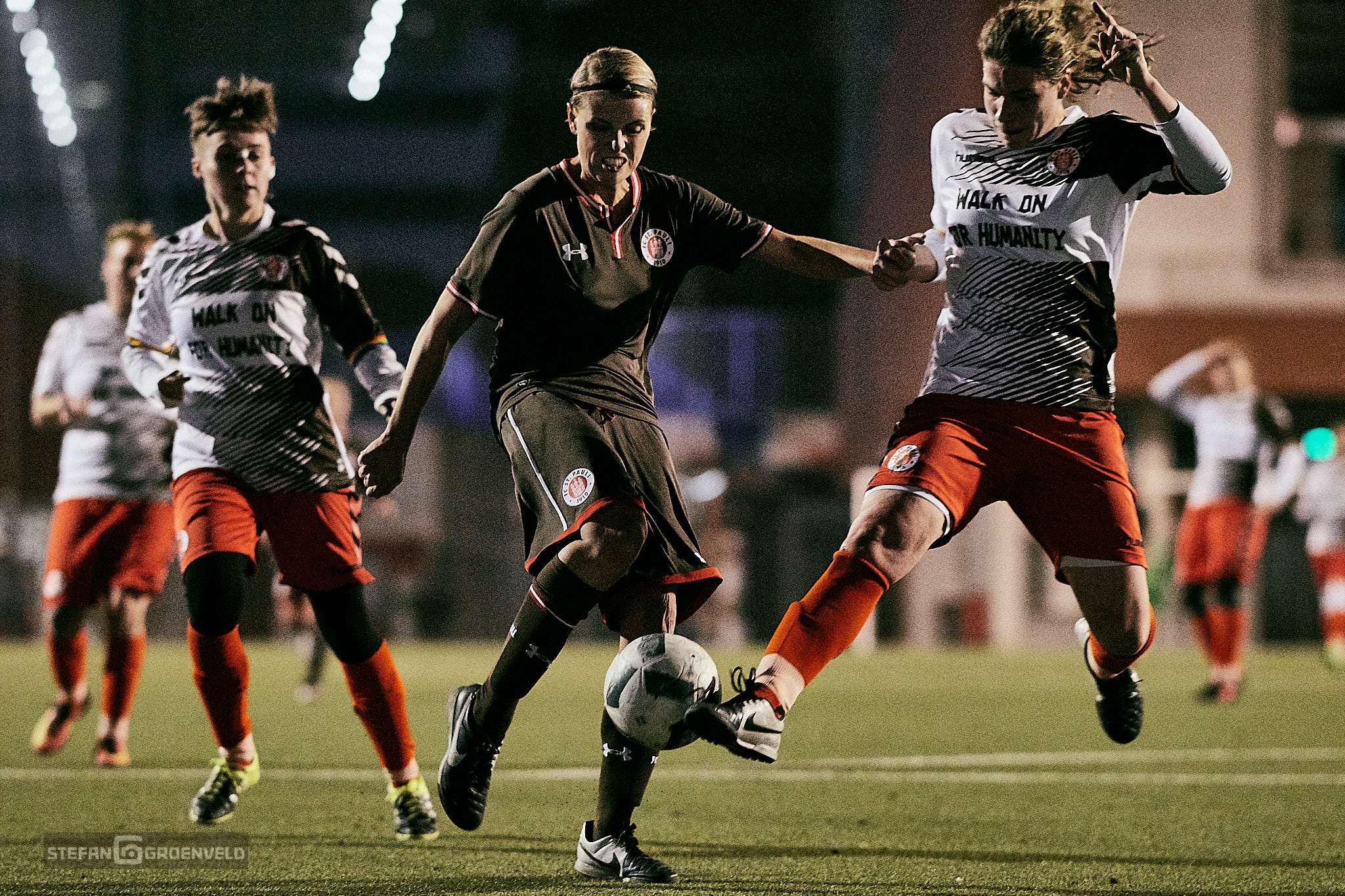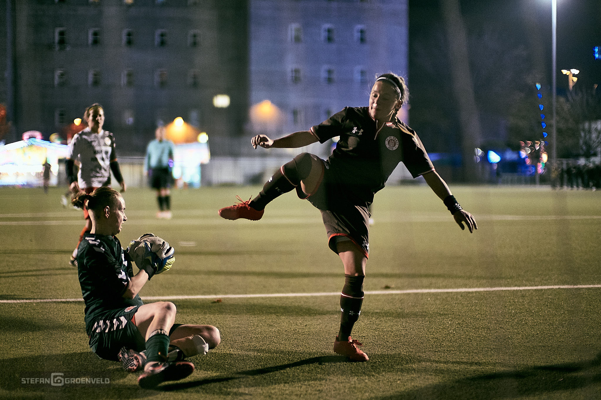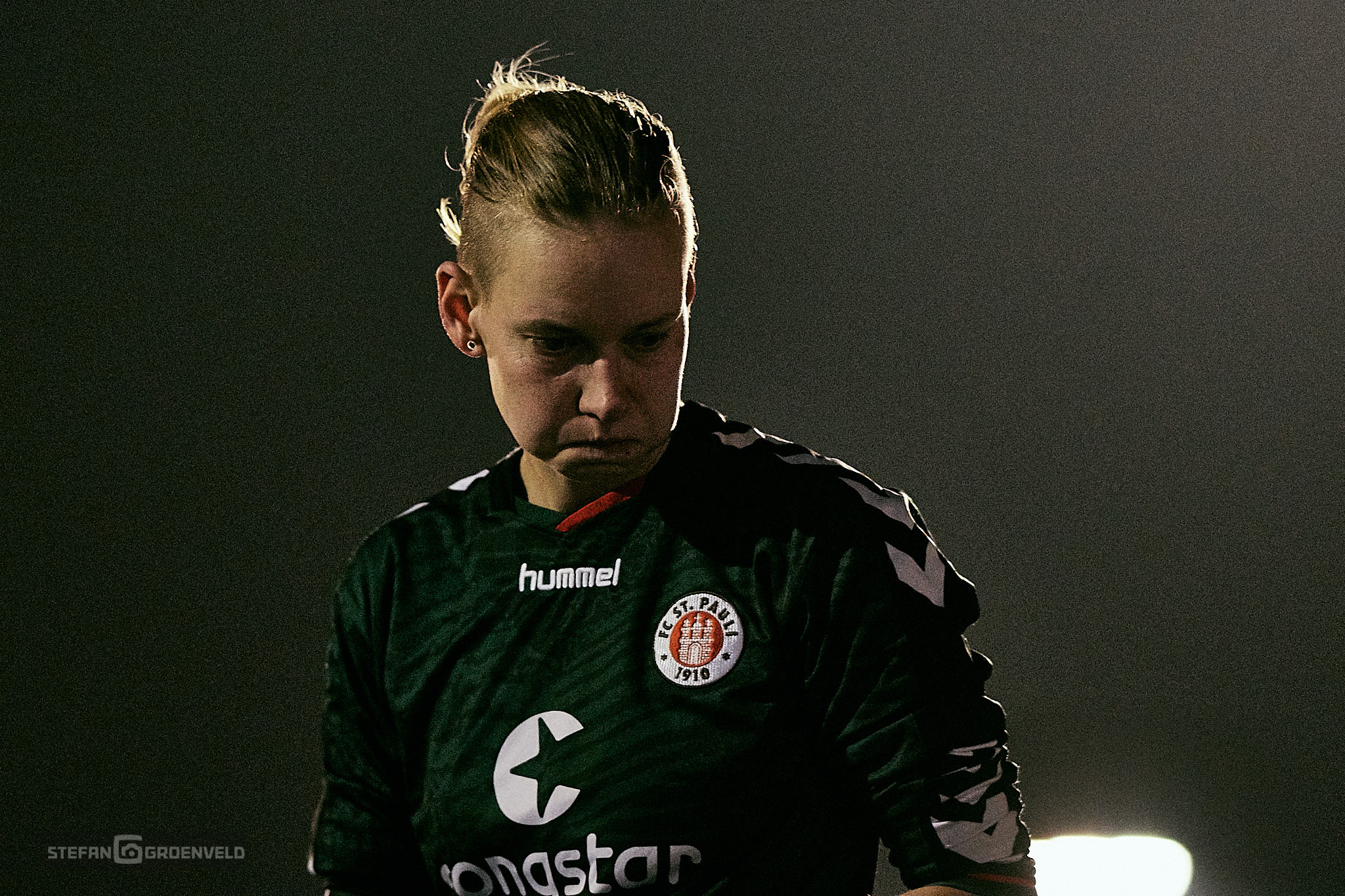 Anne im Tor der 2. Frauen wurde nach dem Spiel zur „Woman of the Match“ ernannt und sie hat auch wirklich getan, was als Torfrau zu tun ist. Beim Herauslaufen wünschte ich mir mehrmals an dem Abend, dass Himmelmann das mal mit ihr trainiert. Er könnte wirklich was von ihr lernen. Letztlich hat ihr Einsatz und der Wille des ganzen Teams aber nicht gereicht, um gegen die 1. Frauen eine Schnitte zu sehen. Die aktuelle Spitzenreiterin aus der Regionalliga Nord war in allen Belangen überlegen. Wenn ich mich nicht verzählt habe, ging die Partie tatsächlich 1:11 für die Gäste vom FC St. Pauli aus. In der Höhe haben aber schon Teams aus der Regionalliga Nord gegen die 1. Frauen verloren und daher ist das überhaupt keine Blamage. Ich fand es eher bemerkenswert, wie die 2. Frauen auch nach einem halben Dutzend Toren noch weiter fighteten.