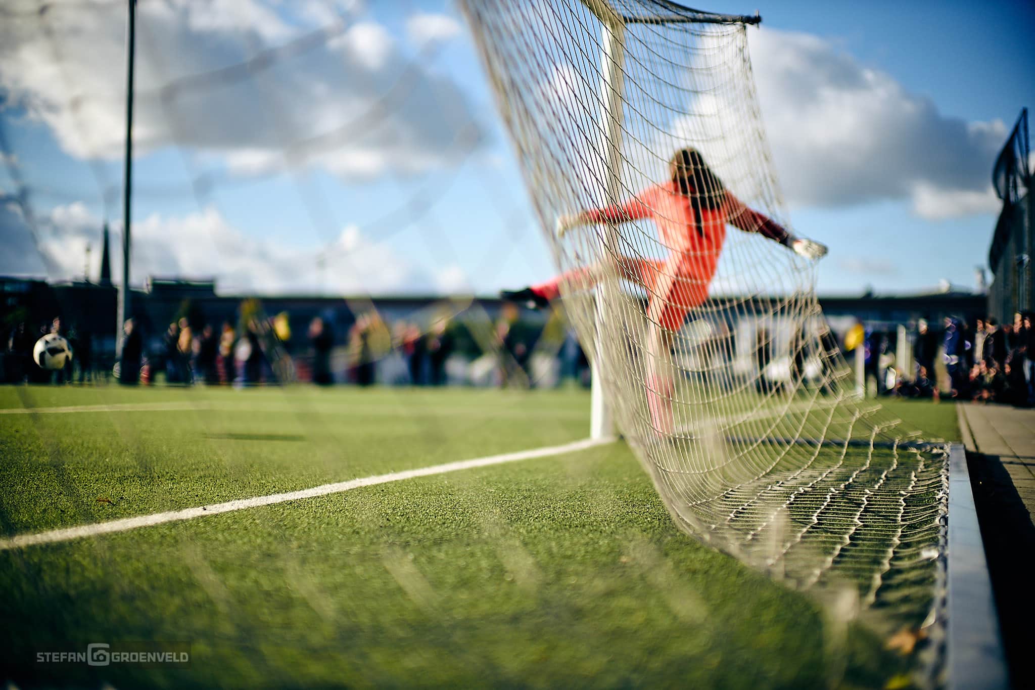 Allerdings könnte das auch an den etwas unwirtlichen Außenbedingungen liegen, die heute in der Feldarena herrschten. Der Wind pfiff unbarmherzig und als die Sonne weg war, wurde es auch richtig kalt. Es passiert selten, dass ich mich in der Halbzeit in der Stadionkneipe „Abseits“ aufwärme. Und selbst die Leica war irgendwann in der zweiten Halbzeit eingefroren. Gut, dass ich einen zweiten warmen Akku dabei hatte. Rechtzeitig zum Schlußjubel war sie wieder einsatzbereit.