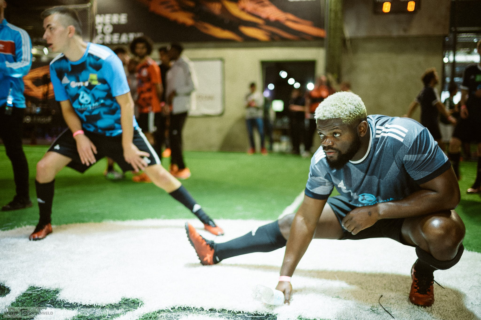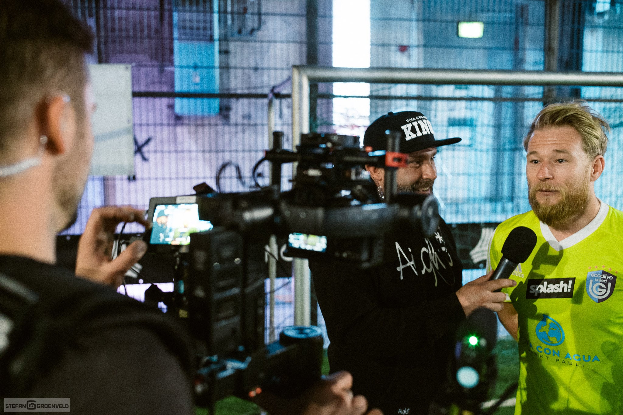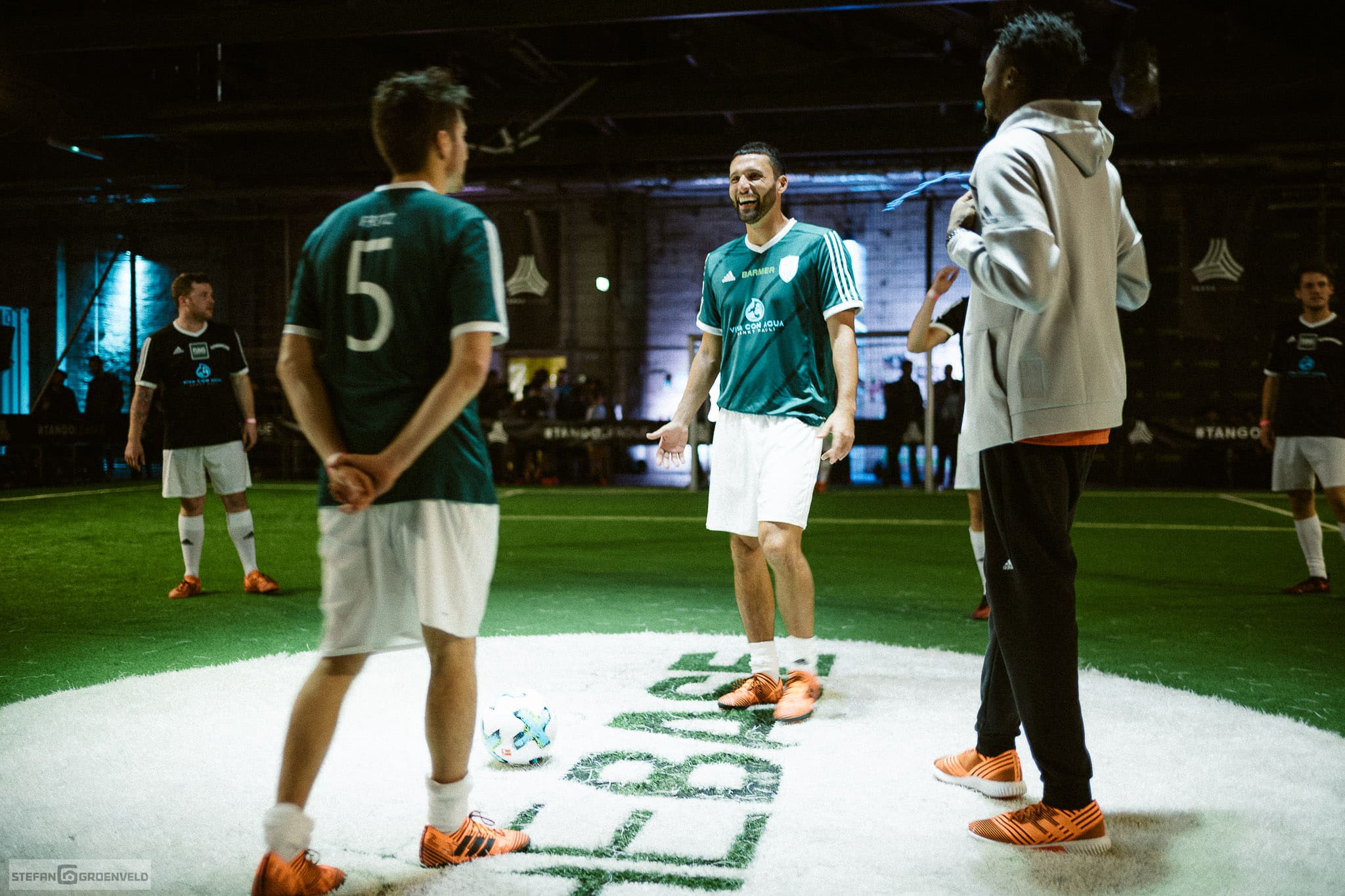 Nach dem beim letzten Event dieser Art Kartfahren in einem Fußballstadion angesagt war, gab es diesmal Fussball auf einer Kartbahn – nee, nicht ganz, aber Indoor war es schon. Natürlich haben wieder viele Musiker und Fussballer mitgemacht, denn ohne Spieler ist so eine Veranstaltung nur halb so schön. (Schau die nächsten Tage doch mal bei meinem Instagram Account vorbei, da gibt es noch ein paar schnelle analoge Portraits von einigen Mitmachern: es sind die Bilder auf schwarz.) In 6-Minuten-Spielen ging es hoch her und am Ende vieler Schlachten haben die Sportfreunde Stiller gewonnen. Ist bei dem Namen ja auch nachvollziehbar.