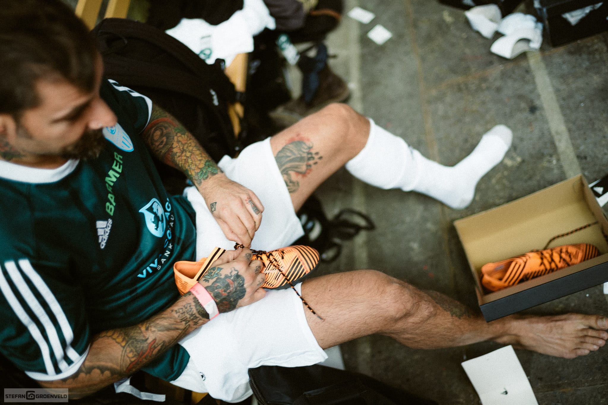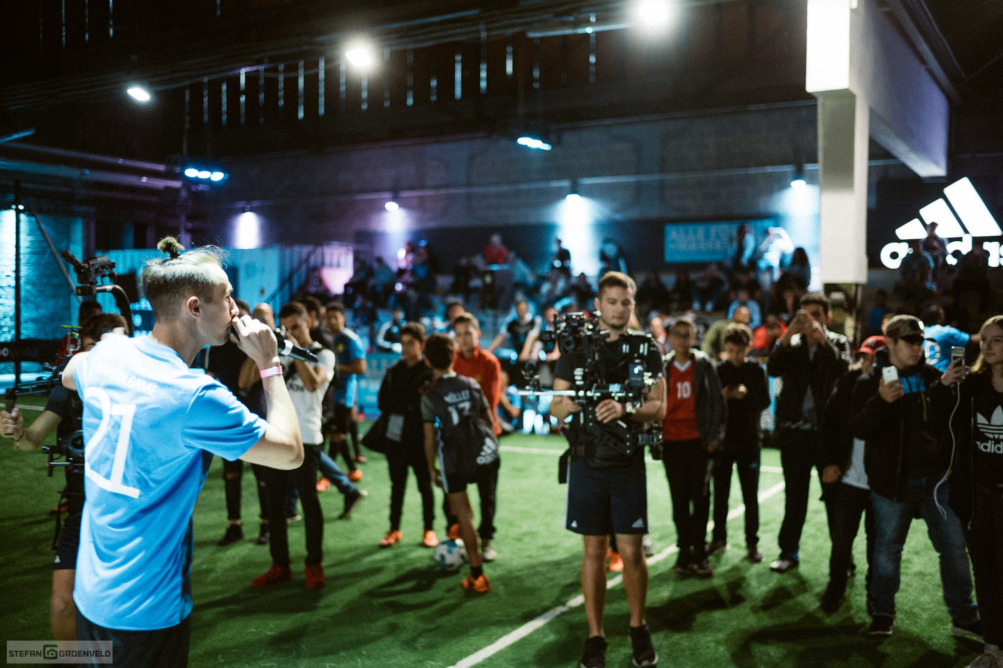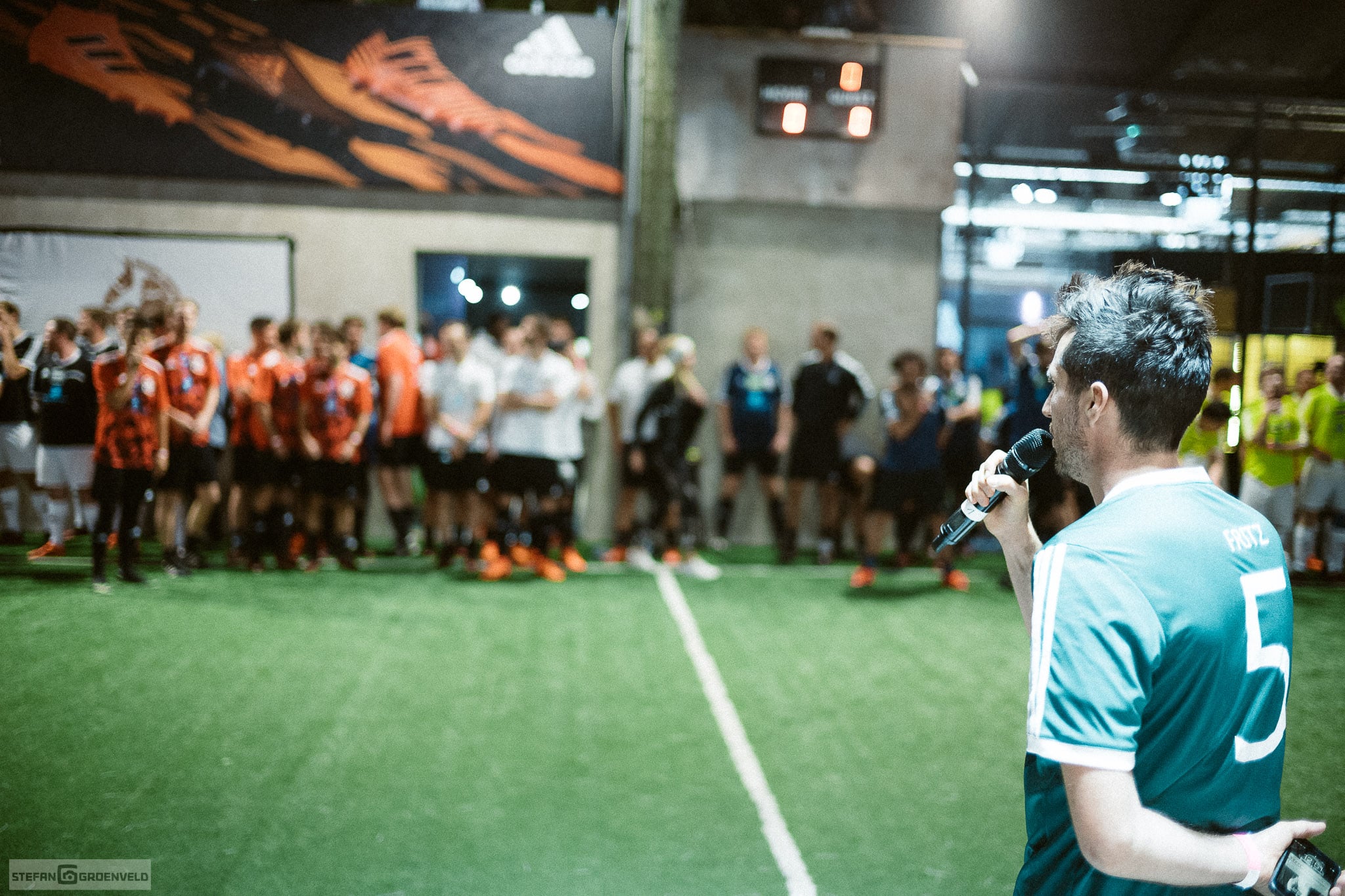 Nach dem beim letzten Event dieser Art Kartfahren in einem Fußballstadion angesagt war, gab es diesmal Fussball auf einer Kartbahn – nee, nicht ganz, aber Indoor war es schon. Natürlich haben wieder viele Musiker und Fussballer mitgemacht, denn ohne Spieler ist so eine Veranstaltung nur halb so schön. (Schau die nächsten Tage doch mal bei meinem Instagram Account vorbei, da gibt es noch ein paar schnelle analoge Portraits von einigen Mitmachern: es sind die Bilder auf schwarz.) In 6-Minuten-Spielen ging es hoch her und am Ende vieler Schlachten haben die Sportfreunde Stiller gewonnen. Ist bei dem Namen ja auch nachvollziehbar.