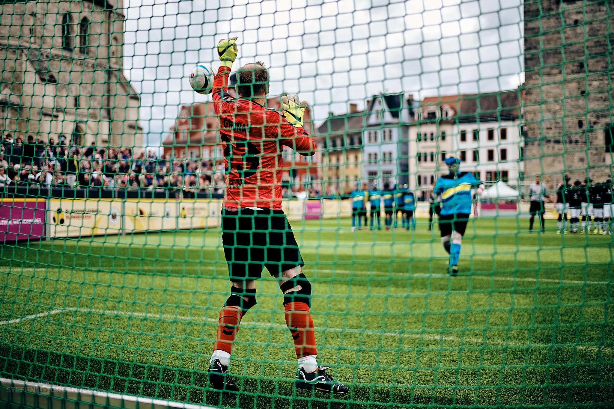 Die Unschärfe im Hintergrund gefällt mir gut. Vielleicht kannst du nochmal einen Beitrag schreiben, mit welcher Blende du fotografiert hast, ob mehrere Kameras und Objektive im Einsatz waren, oder du zwischendurch wechselst. Ich habe beispielsweise bei Blende 2,0 (Fujifilm 35mm F2) Probleme, den ballführenden Spieler zu treffen. Wie ist das bei dir?