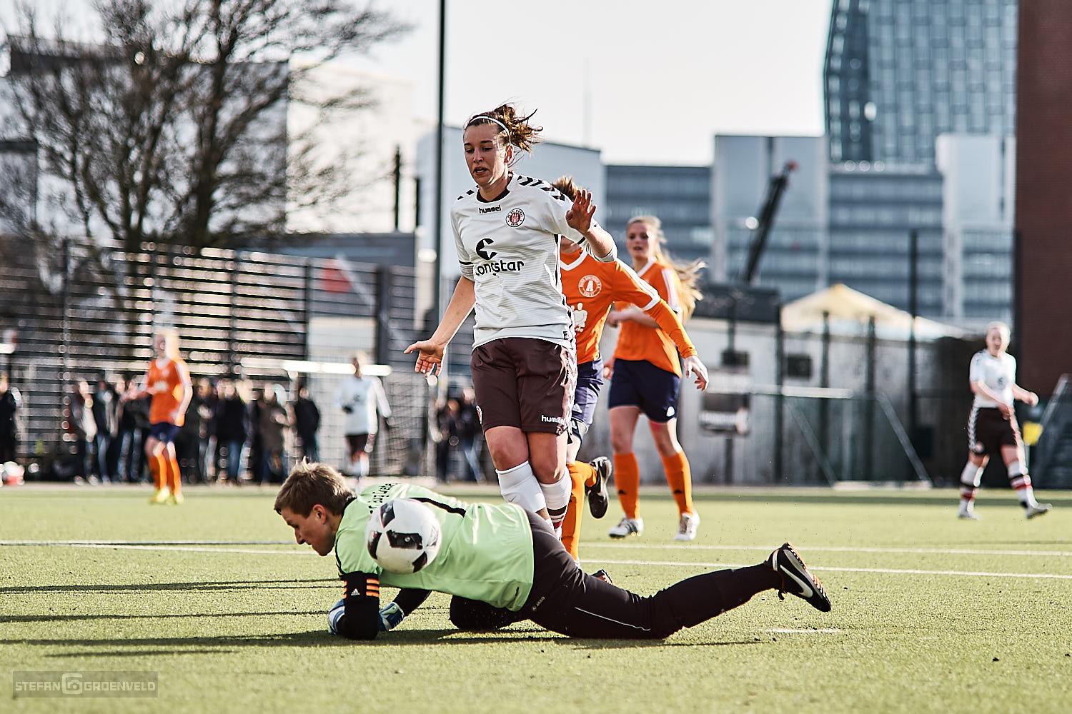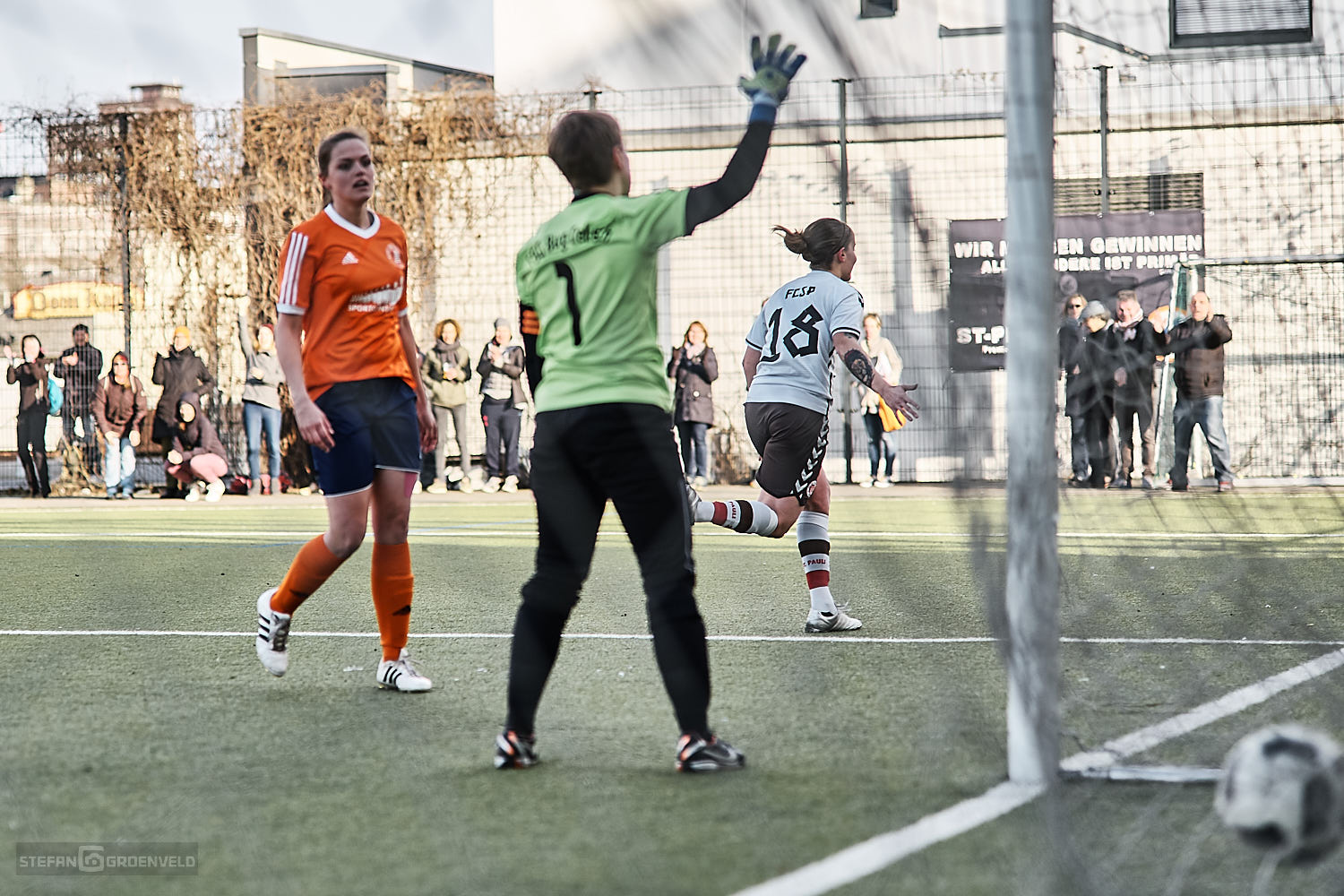 In der 85. Minute konnte sich die Torfrau vom FC St. Pauli Tara Zimmermann erstmals auszeichnen, als ein Angriff der Gegnerinnen aus Burg Gretesch gefährlich vor ihr Gehäuse kam. Das sagt alles über die drückende Überlegenheit aus, mit der FC St. Pauli das Spiel bestimmte.