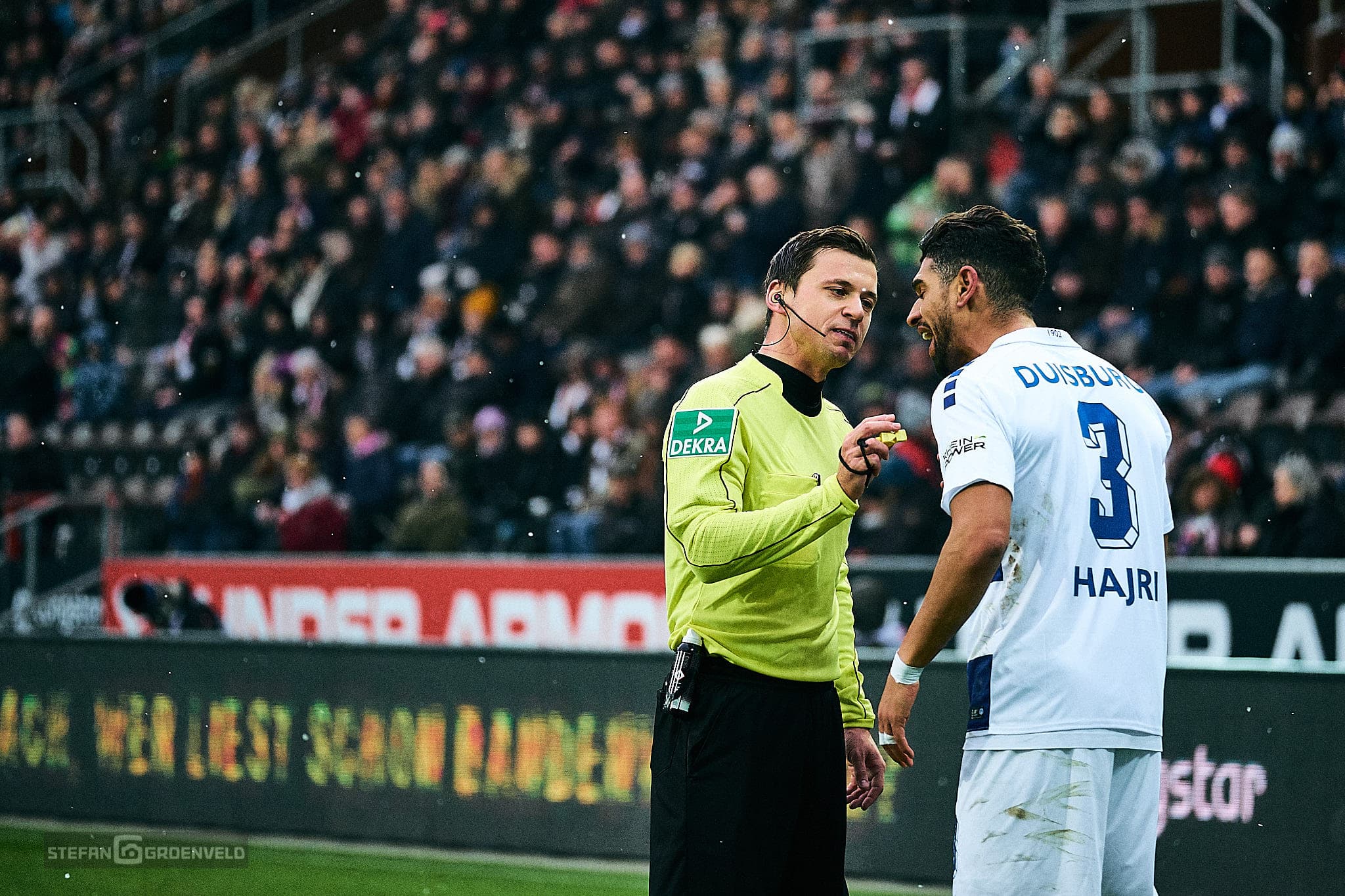 Das zweite Spiel gab es dann zum Beginn der zweiten Halbzeit. Stark gespielt und den Rückstand gedreht. Glückwunsch – dieses Spiel wurde verdient gewonnen. Es endete leider mit einer roten Karte für braun-weiß. Ich habe die Situation nicht gesehen, aber es war wohl eine unnötige Unsportlichkeit von Aziz Bouhaddouz – kann in einer hitzigen Partie passieren und er wird selbst unglücklich mit dieser Aktion sein. So begann dann das dritte Spiel des Tages, das dann Duisburg wieder für sich entscheiden kann. Zu zehnt ordentlich verteidigt und doch wieder so’n doofes Gegentor gefangen.