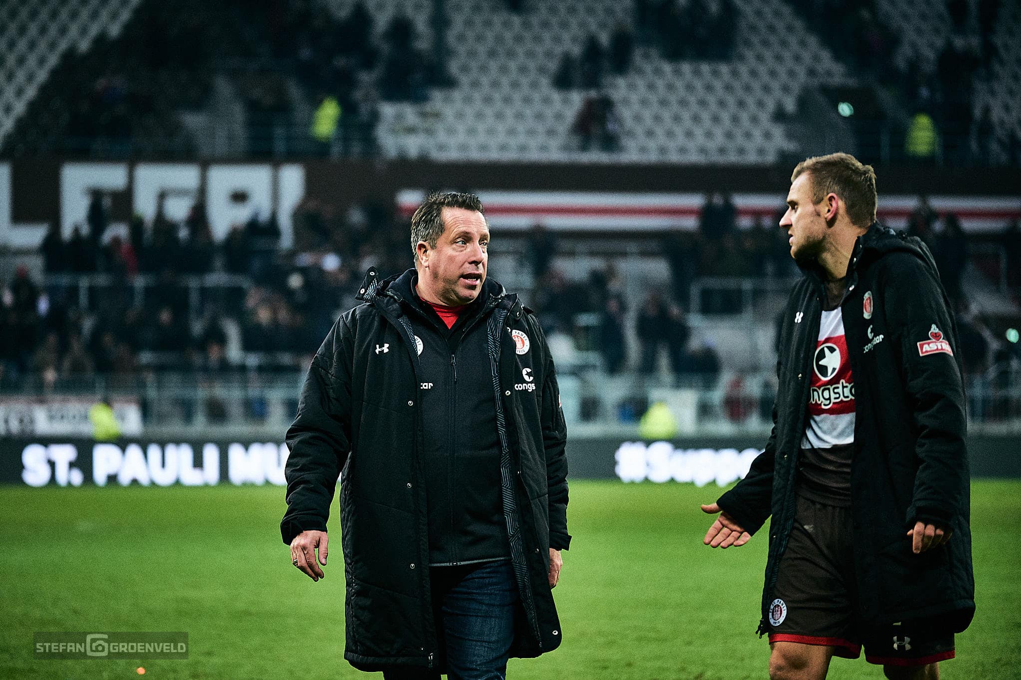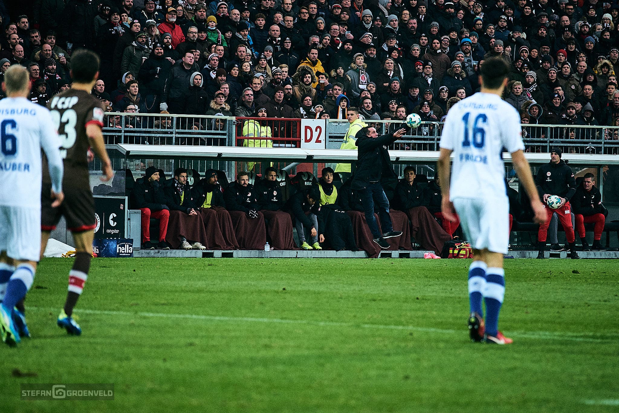 Erstes Spiel der neuen Ära Kauczinski und schon sind die Emotionen wieder am Millerntor. Natürlich ist nicht plötzlich alles wieder Gold, was vorher grau war. Interessanterweise läßt der neue Trainer eine sehr ähnliche Mannschaft auf’s Feld, die vorher eher fussballerische Magerkost zustande brachte. Nach nur 2 Tagen gemeinsamen Trainings nachvollziehbar und psychologisch sicherlich auch ganz gut für die gebeutelten Spielerseelen. So gab es heute in den ersten 45 Minuten das erste Spiel, das als bemüht und hinten unglücklich zu beschreiben ist. Sieht eigentlich aus, wie in den anderen Heimspielen vorher auch. OK, der Elfmeter für Duisburg war sehr zweifelhaft, aber es ist auch unnötig, zu viert auf einen Spieler zu gehen. Spätestens in der Winterpause müssen diese Standards geübt werden. Das ist in der Hinrunde ein echtes Manko in der braun-weißen Abwehr.