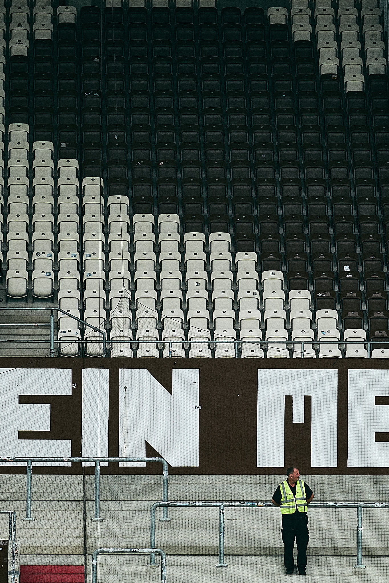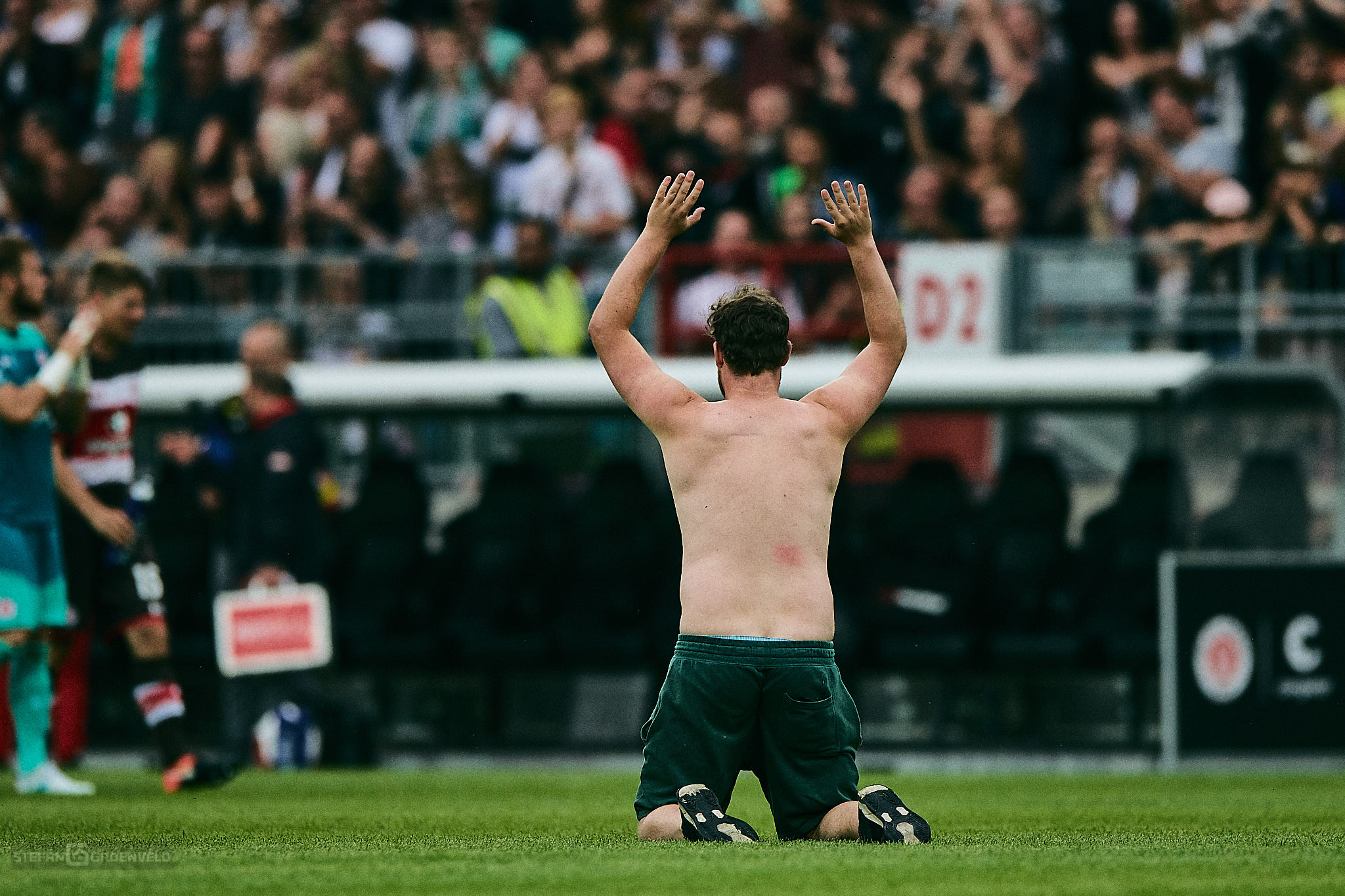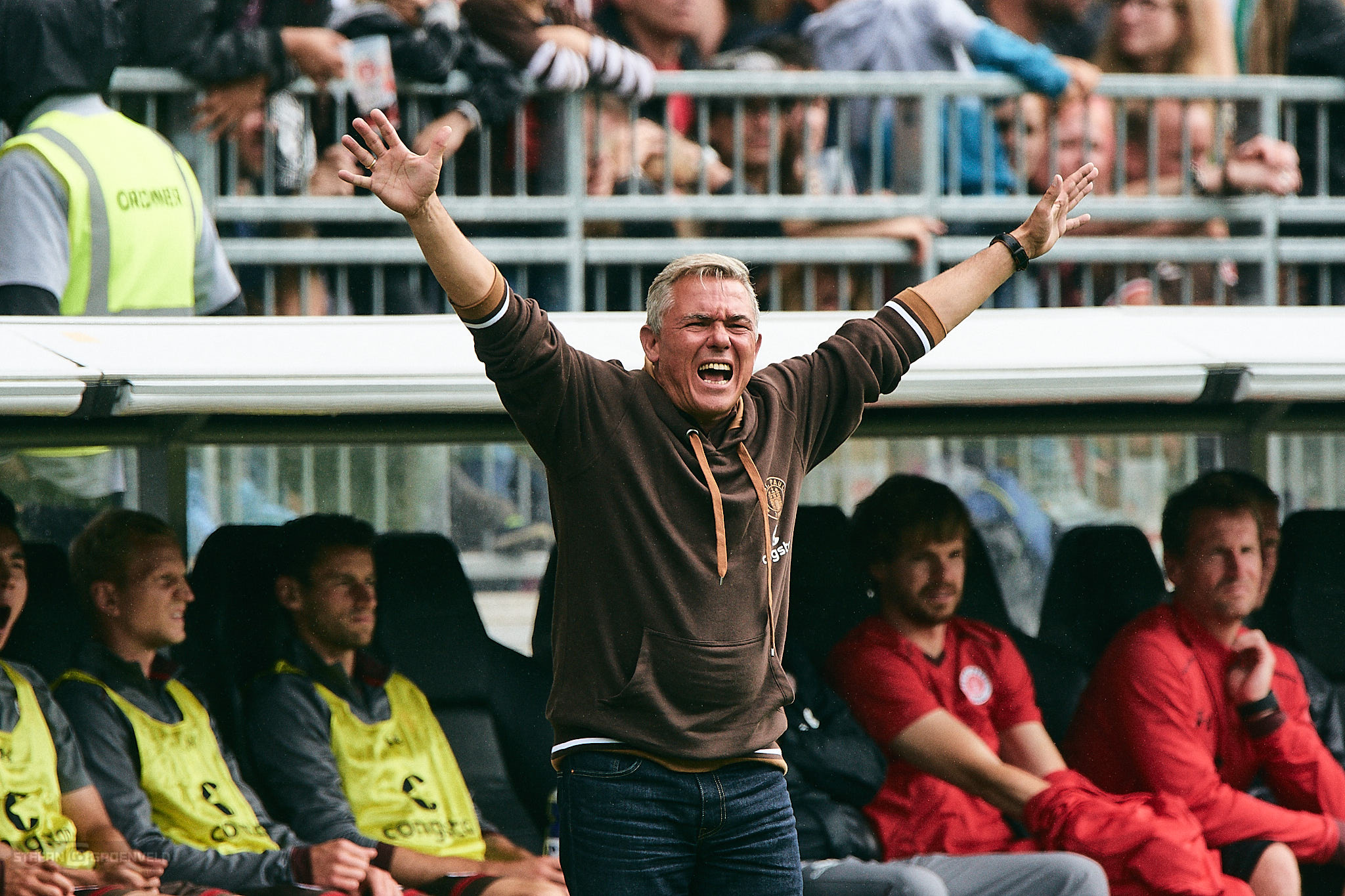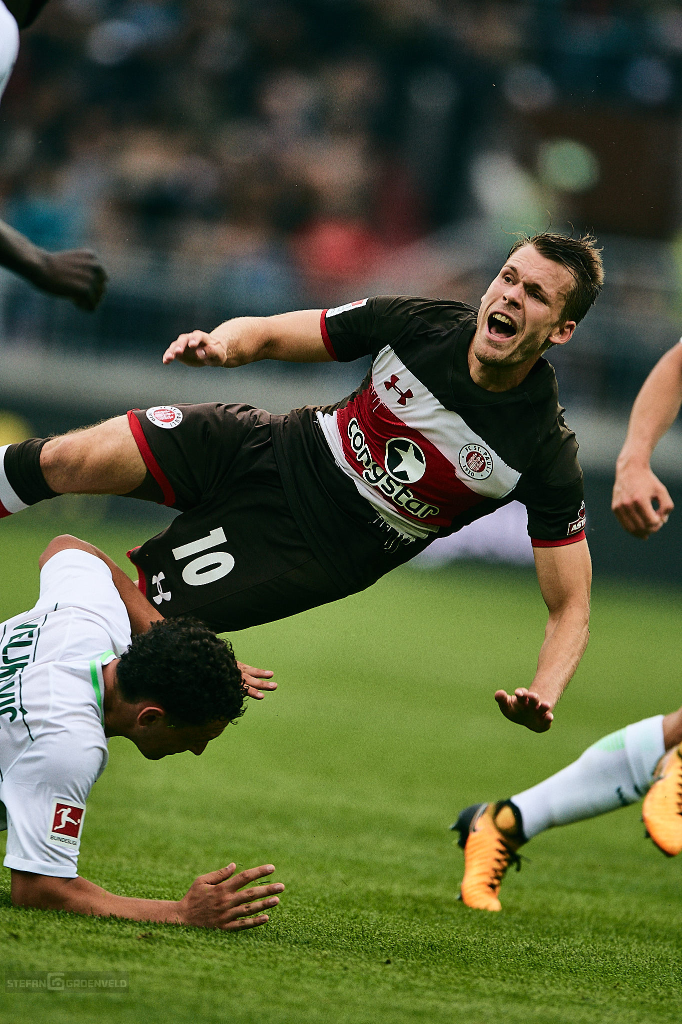 Was ist sonst noch neu am Millerntor in der Saison 2017/18? Trainer Olaf Janßen ist an der Aussenlinie nicht so entspannt wie Ewald Lienen – das freut die Fotografen. Diese haben hinter den neuen Banden nun auch mehr Platz. Leider fehlt die Möglichkeit sein Equipment unter den alten schrägen Planen einigermaßen regengeschützt abzustellen, dafür könnte man theoretisch einen Kaffee auf halber Höhe abstellen. Nicht geändert hat sich das schlechte Licht vor der Süd, das bleibt die dunkelste Ecke im Stadion und macht das Fotografieren jubelnder Spieler nicht schön. Aber hey, wen interessieren schon schöne Fotos vor der Süd – Hauptsache, es gibt da genug Grund zum Jubeln. Kein Grund zum Jubeln sind die frisch renovierten Plätze der Rollifahrer, die nun einem Schwimmbad gleichen. Würde mich aber nicht wundern, wenn da noch Abhilfe geschaffen wird. Bis zum ersten Ligaspiel sind ja noch über 2 Wochen Zeit…