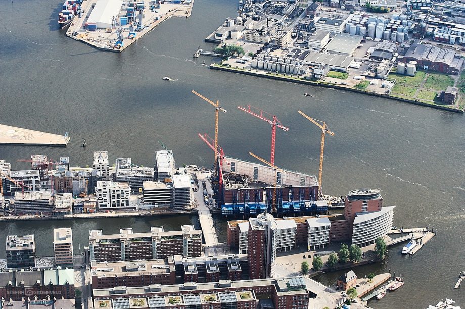 Weltexklusiv? Unveröffentlichtes Bild! Die heute eröffnende Elbphilharmonie von oben! 🙂