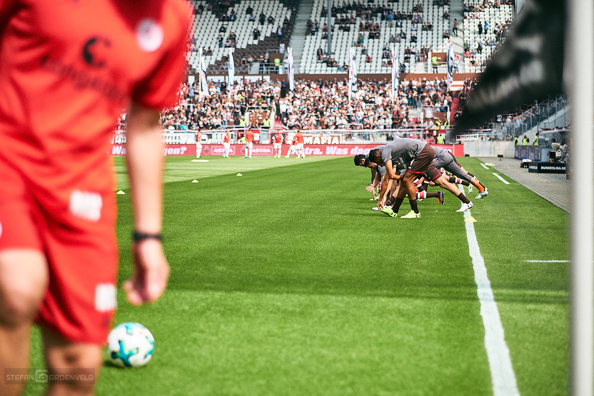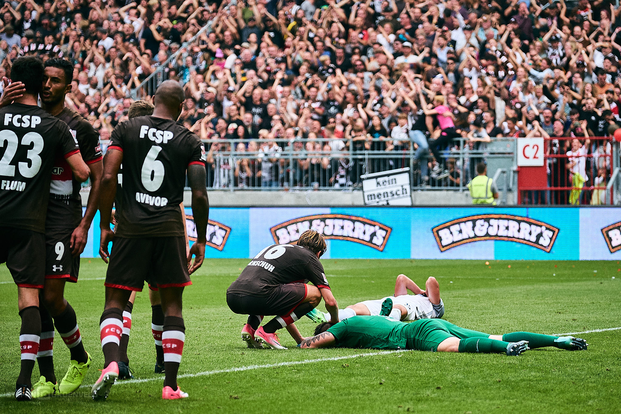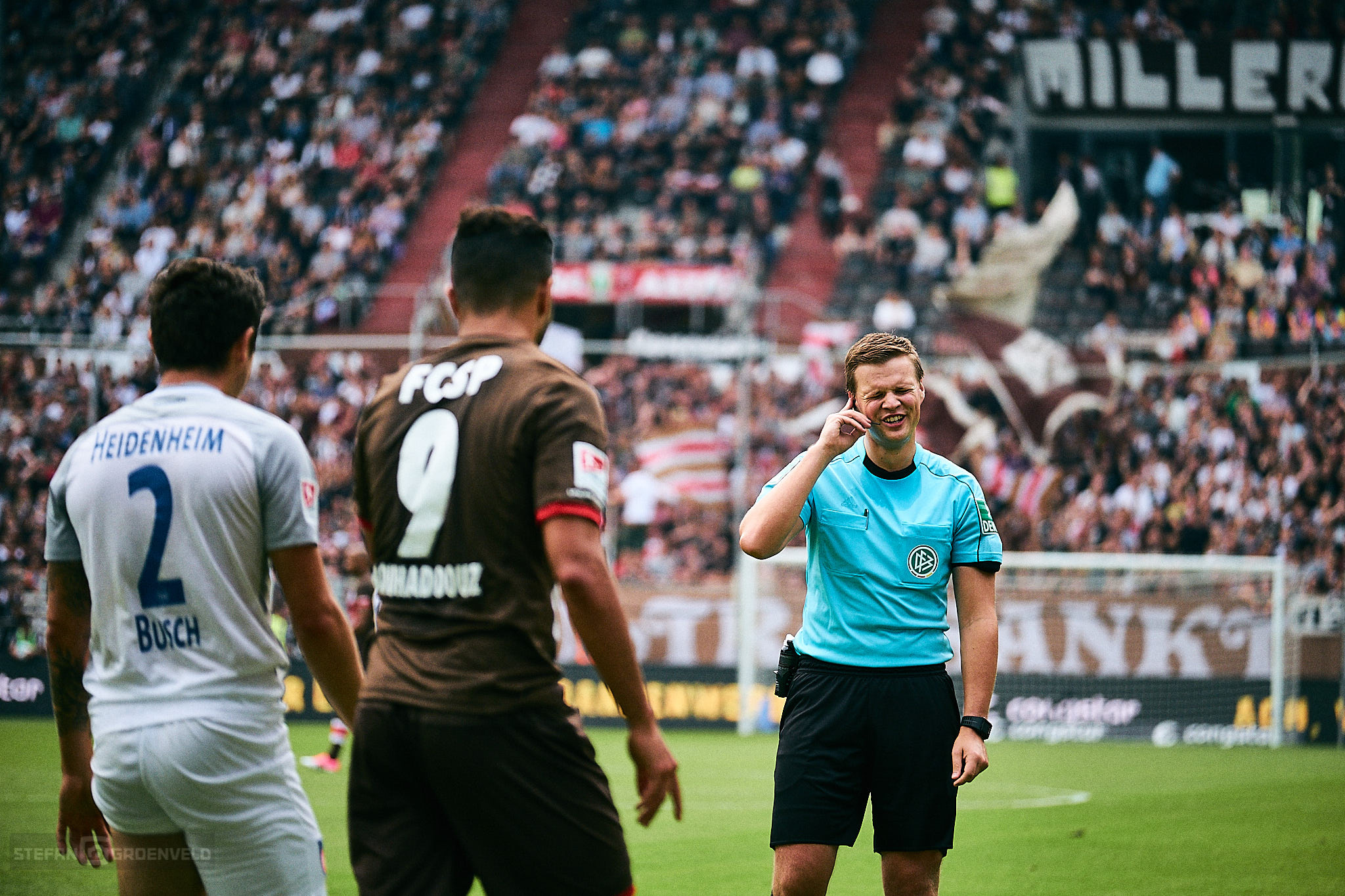 Jedenfalls stocherte Flum mit dem Schlusspfiff in der 92. Minute den unglücklich vor seine Füße prallende Ball als bebenden Schlussakkord eines eher langweiligen Spiels zum erlösenden 1:0 ins Netz. Was bleibt ist also Jubel. Über den Rest des Spiels können wir getrost den Mantel des Schweigens hüllen. In der ersten Halbzeit witzelte ich mit einem Fotokollegen, dass wir von Allagui Langzeitbelichtungen machen könnten. Zumindest in der 2. Halbzeit bemühten sich St. Paulianer, fanden aber kein Rezept gegen wie immer vielbeinig abwehrende Heidenheimer. Das erste Mal, dass der gegnerische Torwart einen Ball abwehren musste, war in der 75. Minute. Dann noch mal in der 77. Das war es auch schon. Den in der 92. konnte er nicht halten. Bitter, aber geil!