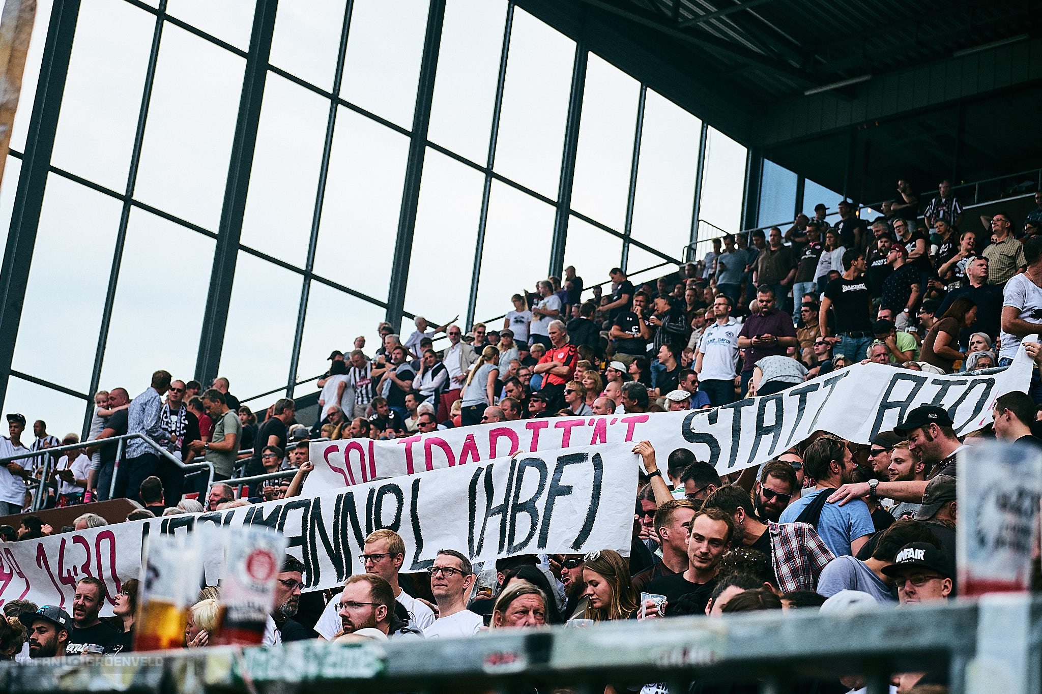 Was war sonst noch? Das ganze Stadion. Geile Arbeit mal wieder! Michel 🙁 Demoaufruf für den 9.9. am Hachmannplatz und der zarte Hinweis, dass Investoren mal wieder feuchte Träume zwischen Sternschanze und Kiez bekommen – da bahnt sich der nächste unnötige Konflikt im Viertel an.