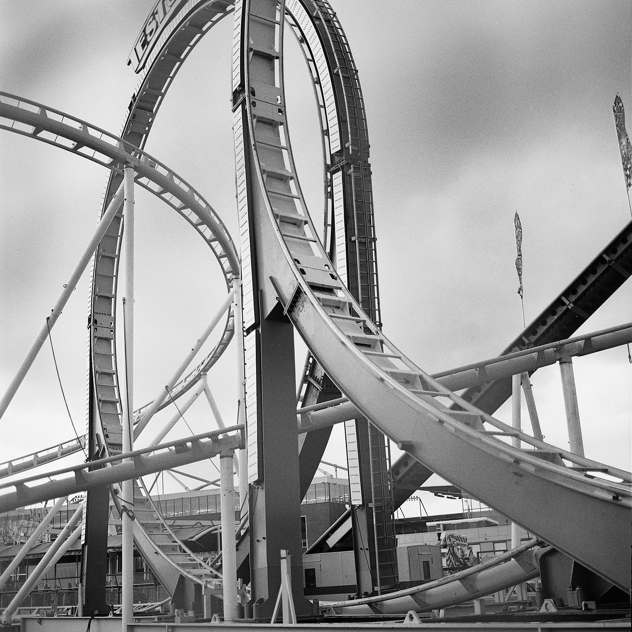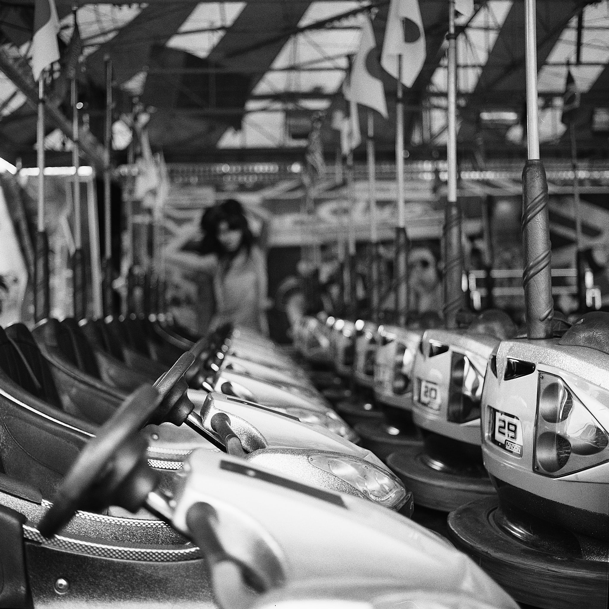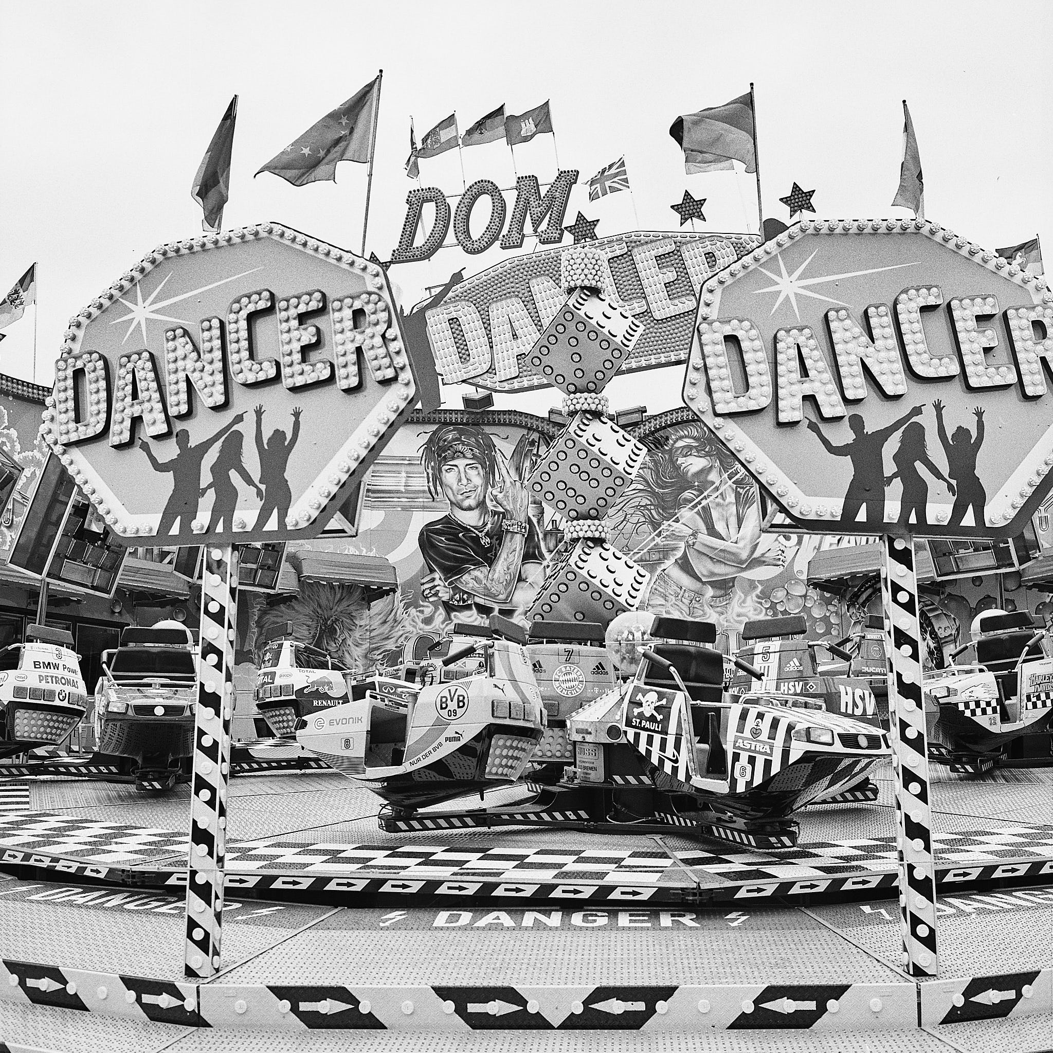 Mich zog es jedenfalls an Karfreitag mit zwei Freunden auf den Hamburger Dom. Ursprünglich wollte ich bei strahlendem Sonnenschein die kräftigen Farben des Rummels fotografieren. Da es dann aber doch Hamburger Wetter hatte, spannte ich meine letzten beiden Ilford HP5+ in die Magazine meiner Hasselblad und fotografierte tristes schwarz-weiß. Passt auch…