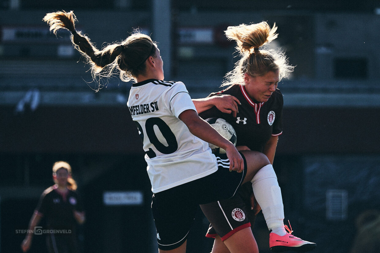 „Jetzt holen wir uns die Punkte“, schrie der Trainer vom Absteiger Bramfelder SV nach dem Ausgleich zum 1:1. Das Frauen-Team vom Bramfelder SV stritt sich die letzten Jahre entweder mit Bergedorf oder mit dem HSV um den Platz 1 als bestes Hamburger Team. Da die beiden letztgenannten ihre Teams zwischenzeitlich zurückgezogen haben (und teilweise eben wieder von unten anfangen müssen), war der Stadtmeisterinnen Titel den Bramfelder Deerns eigentlich nicht mehr zu nehmen. Letzte Saison sind sie allerdings abgestiegen und so kam es an der Feldarena zur interessanten Partie gegen den FC St. Pauli.