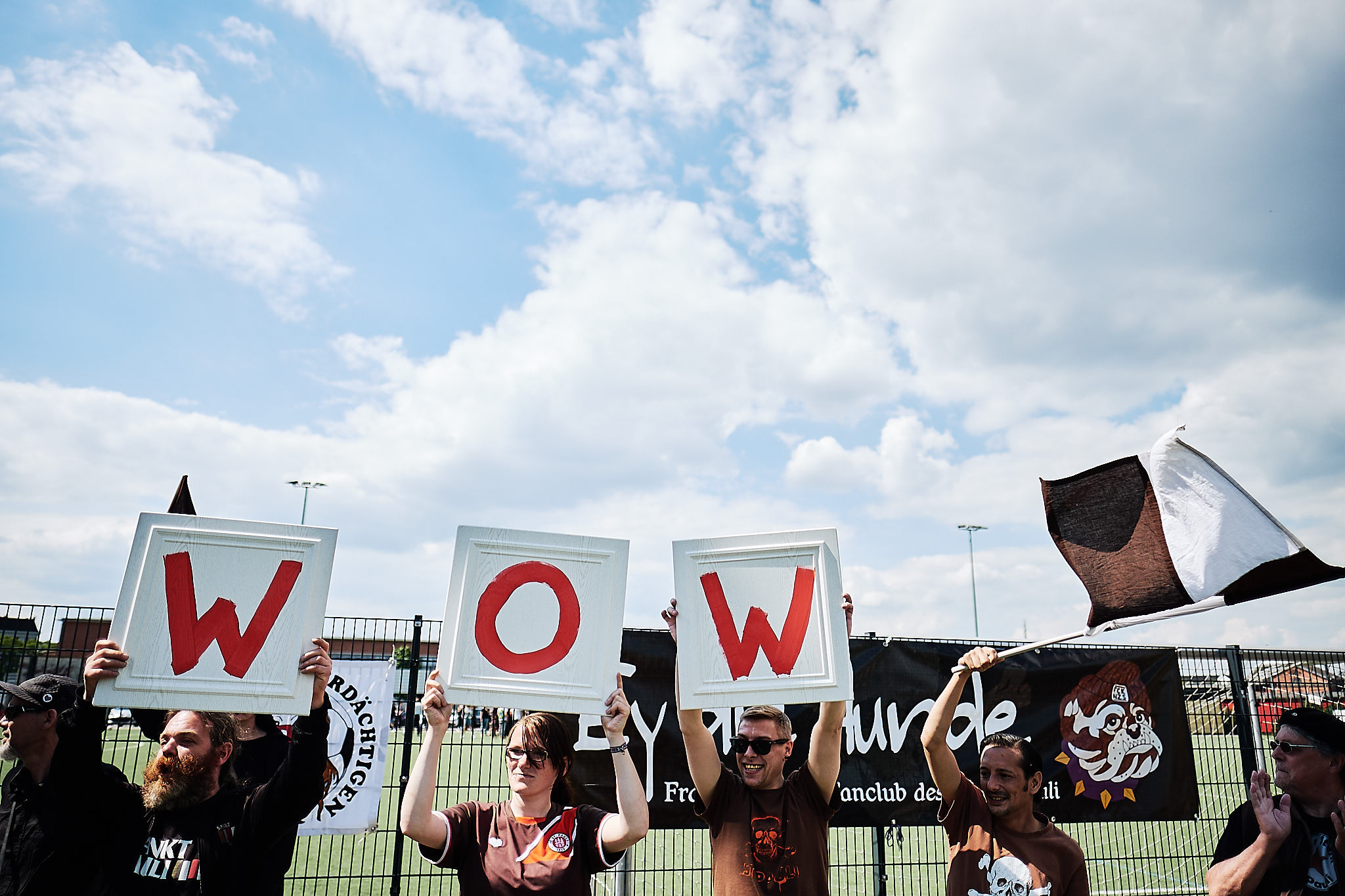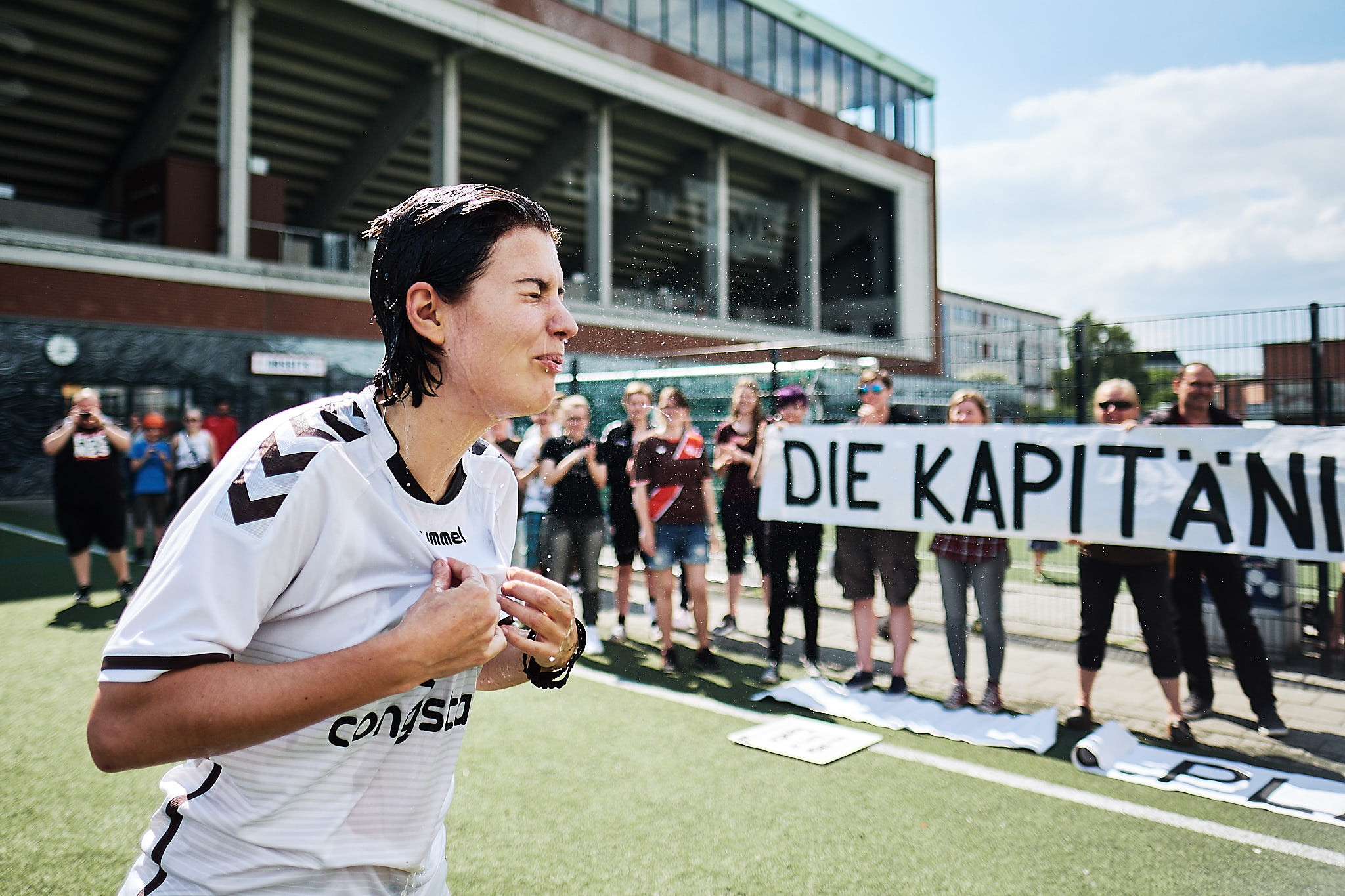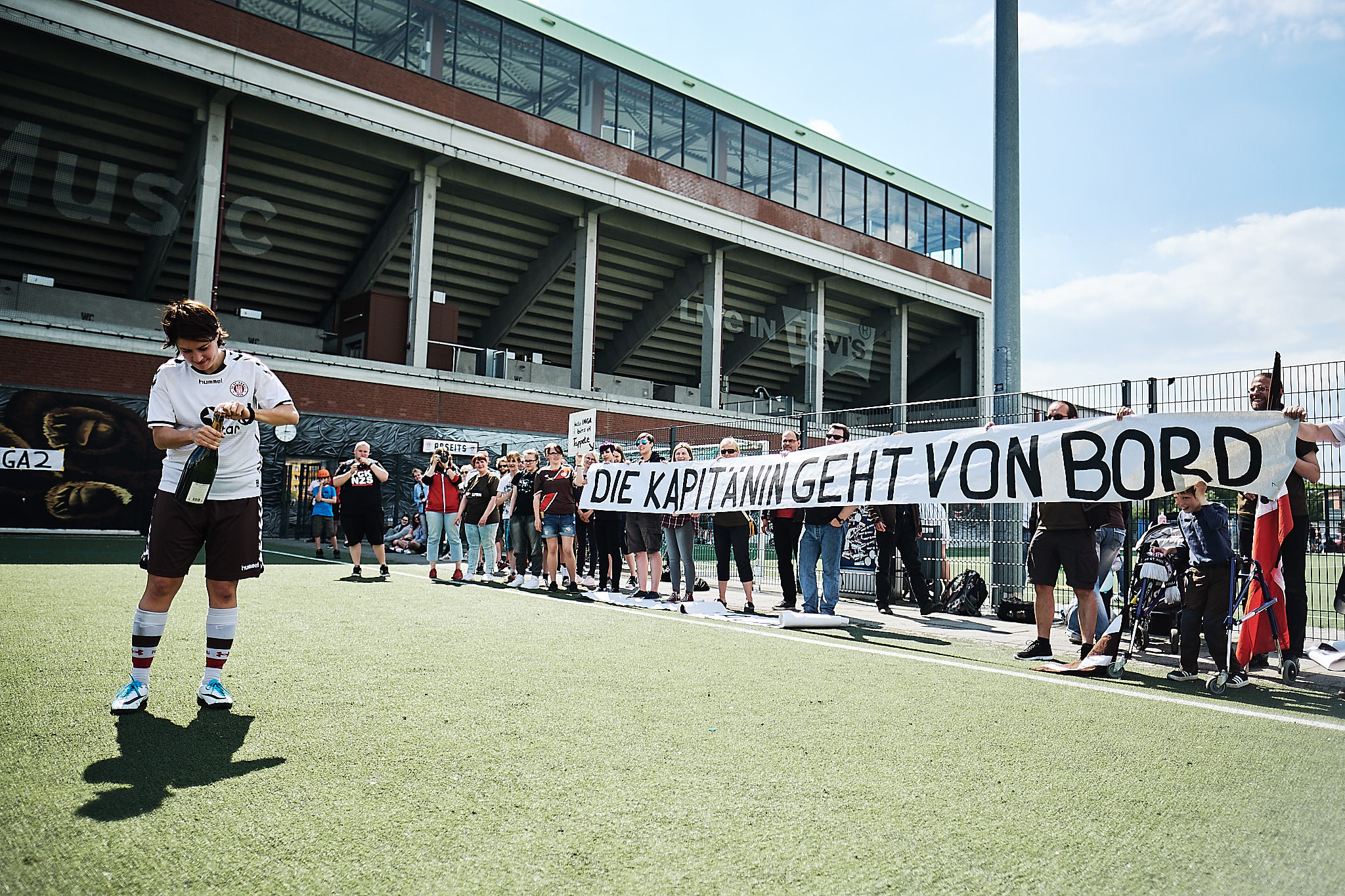 Letztes Spiel der 1. Frauen vom FC St. Pauli in der Saison 2016/17 und in der heimischen Feldarena waren die Aufsteigerinnen von Jahn Delmenhorst zu Gast. Gleichzeitig war es das letzte Spiel von Kapitänin Inga Schlegel und Trainer Kai Czarnowski. Es sollte also bei sommerlichen Temperaturen was zu feiern geben.