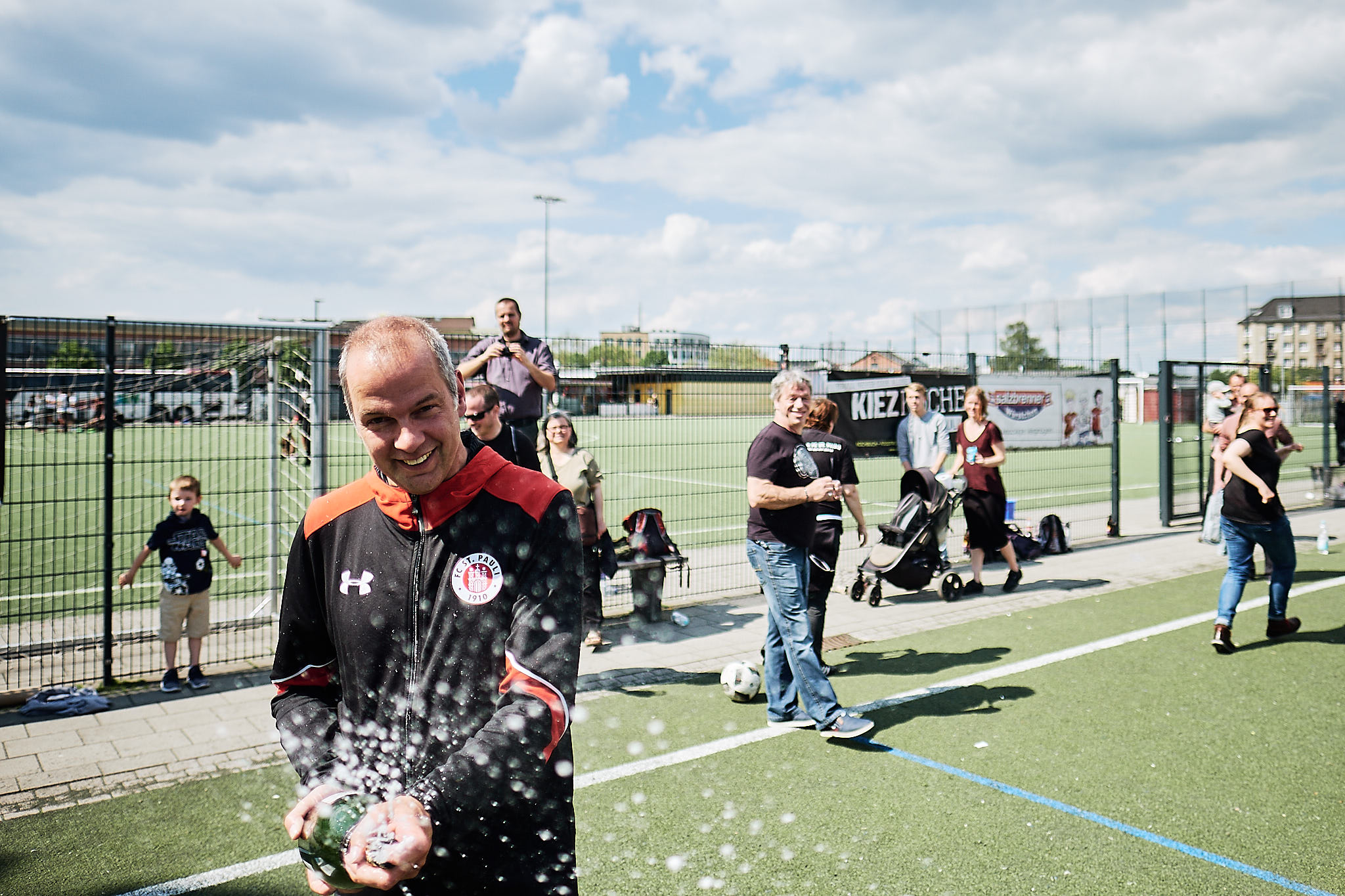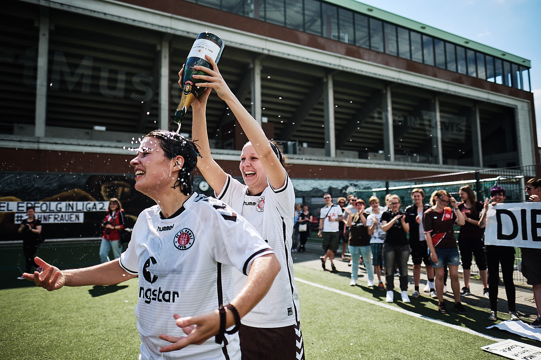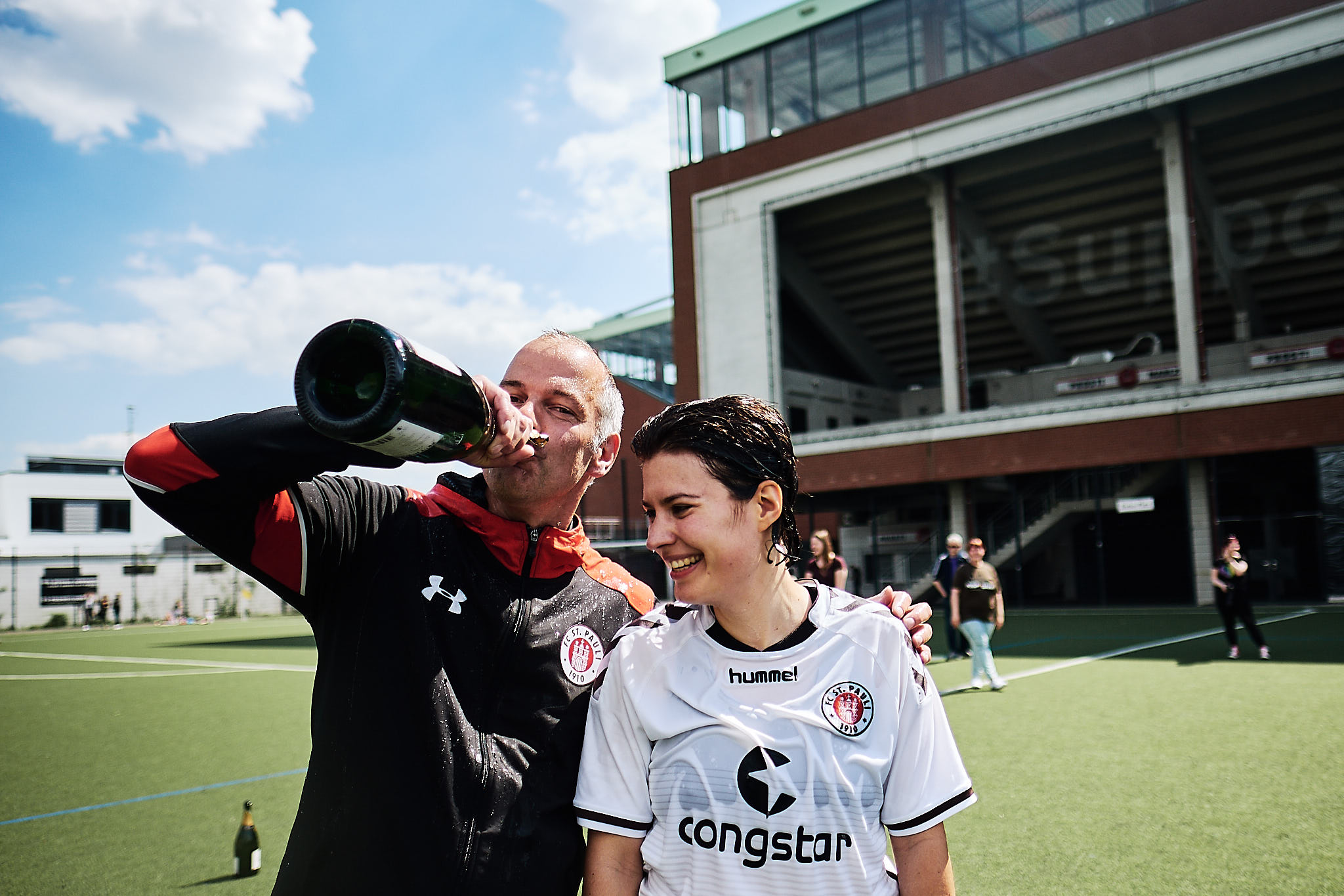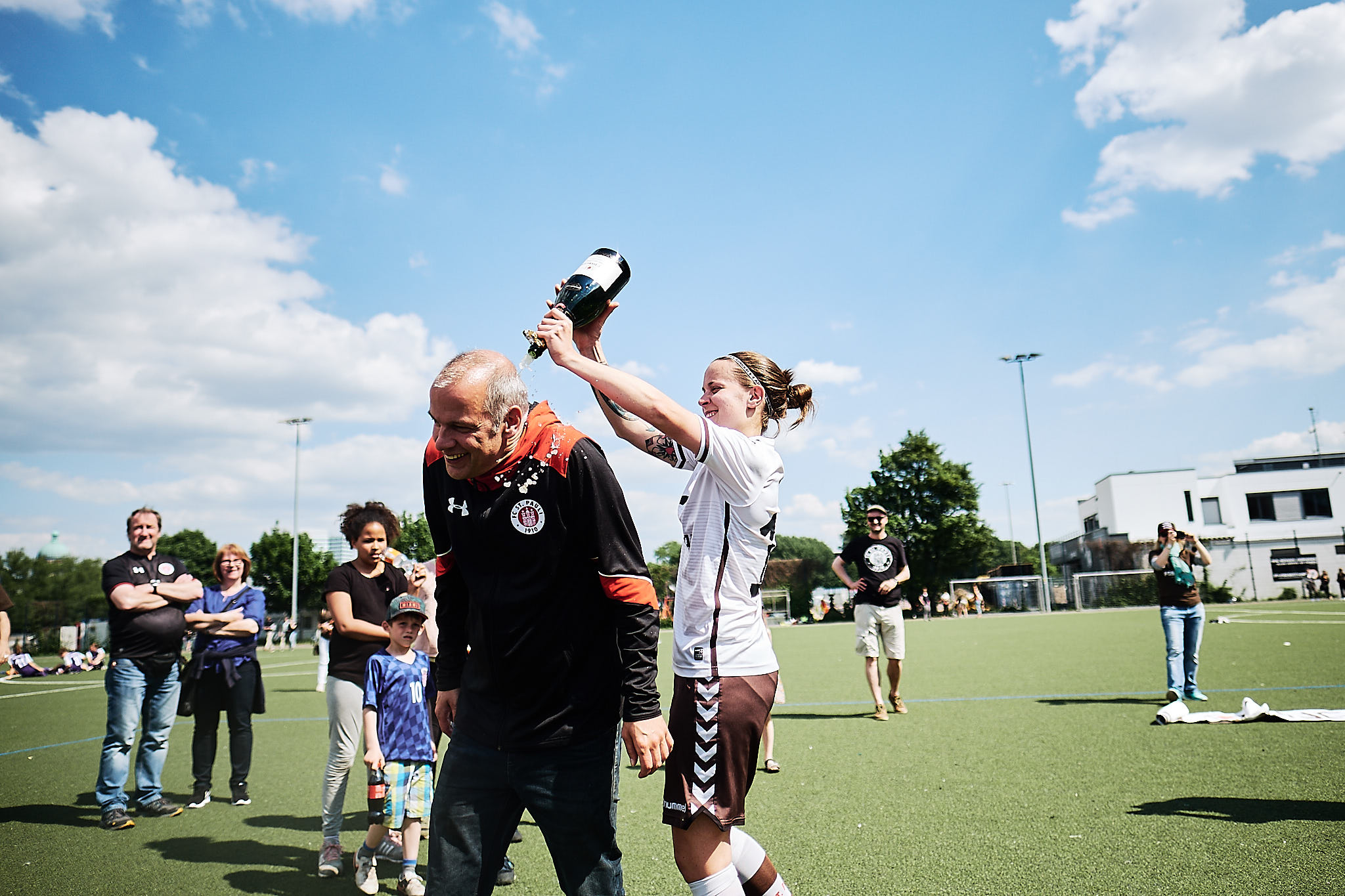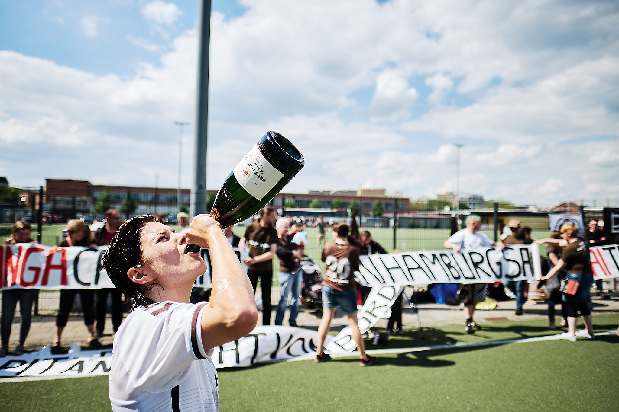 Es folgte die bewegende Auswechlung von Inga Schlegel in der 85. Minute und dann der Schlusspfiff. Reichlich Sekt ergoss sich über Spielerinnen, Trainer, Zuschauer und Kunstrasen. Ein sehr würdiger Abschluss einer tollen Saison.