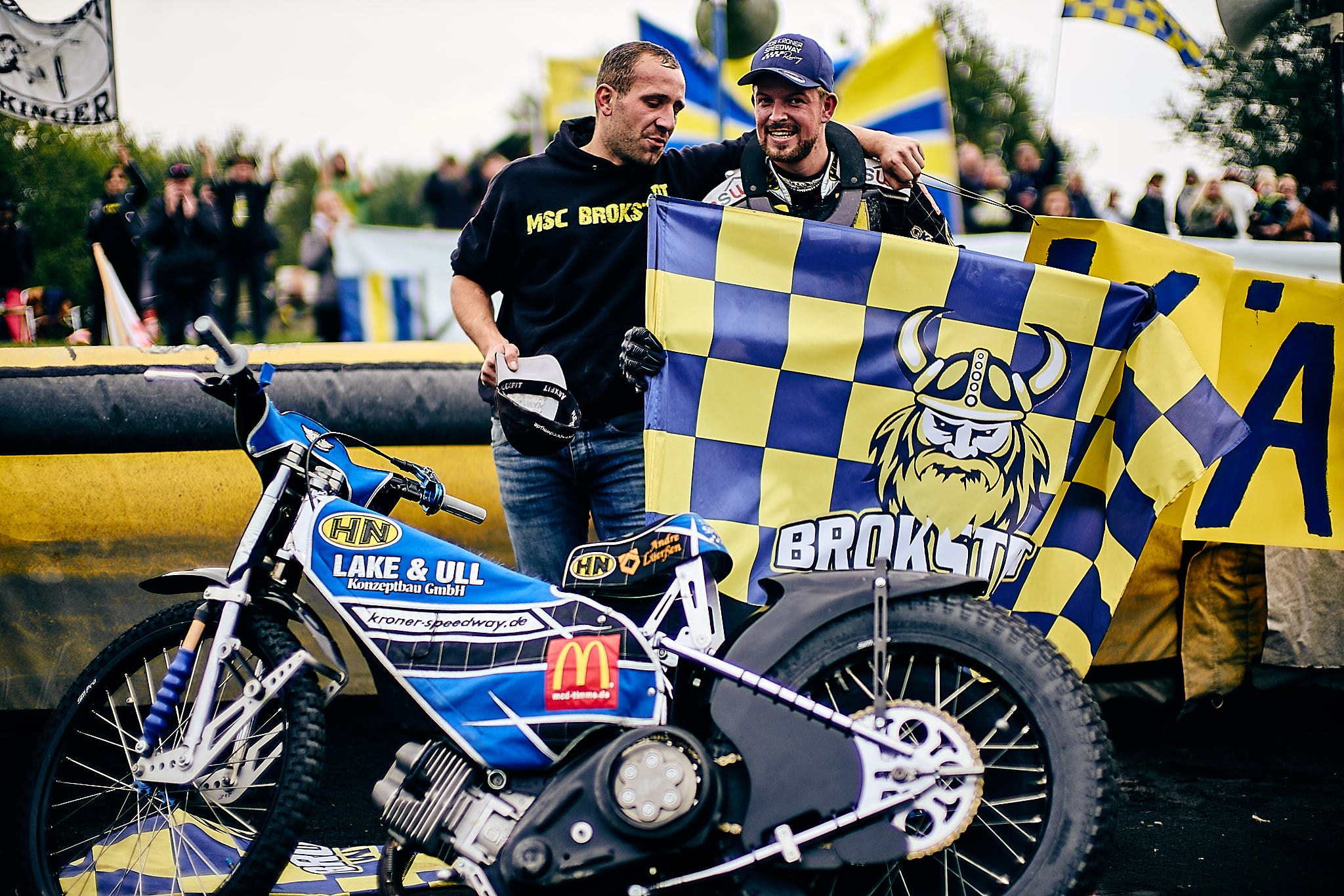Diesmal wurde Tobias Kroner bei seinem letzten Heimspiel gefeiert. Der Kapitän vom MSC Brokstedt hört zum Jahresende mit dem Speedwayrennen Sport auf und natürlich wünsche ich dem sympathischen Fahrer zum Ende seine Karriere den Mannschafts-Meistertitel.