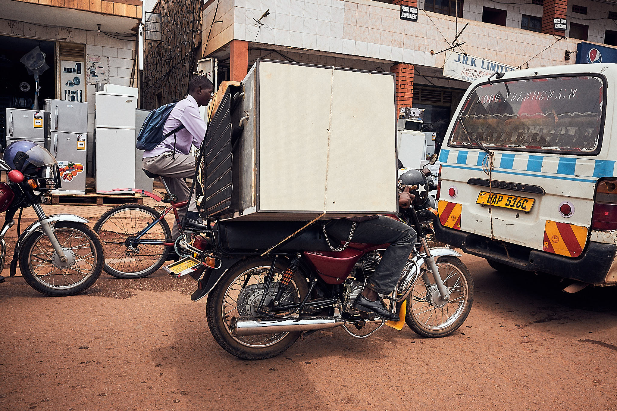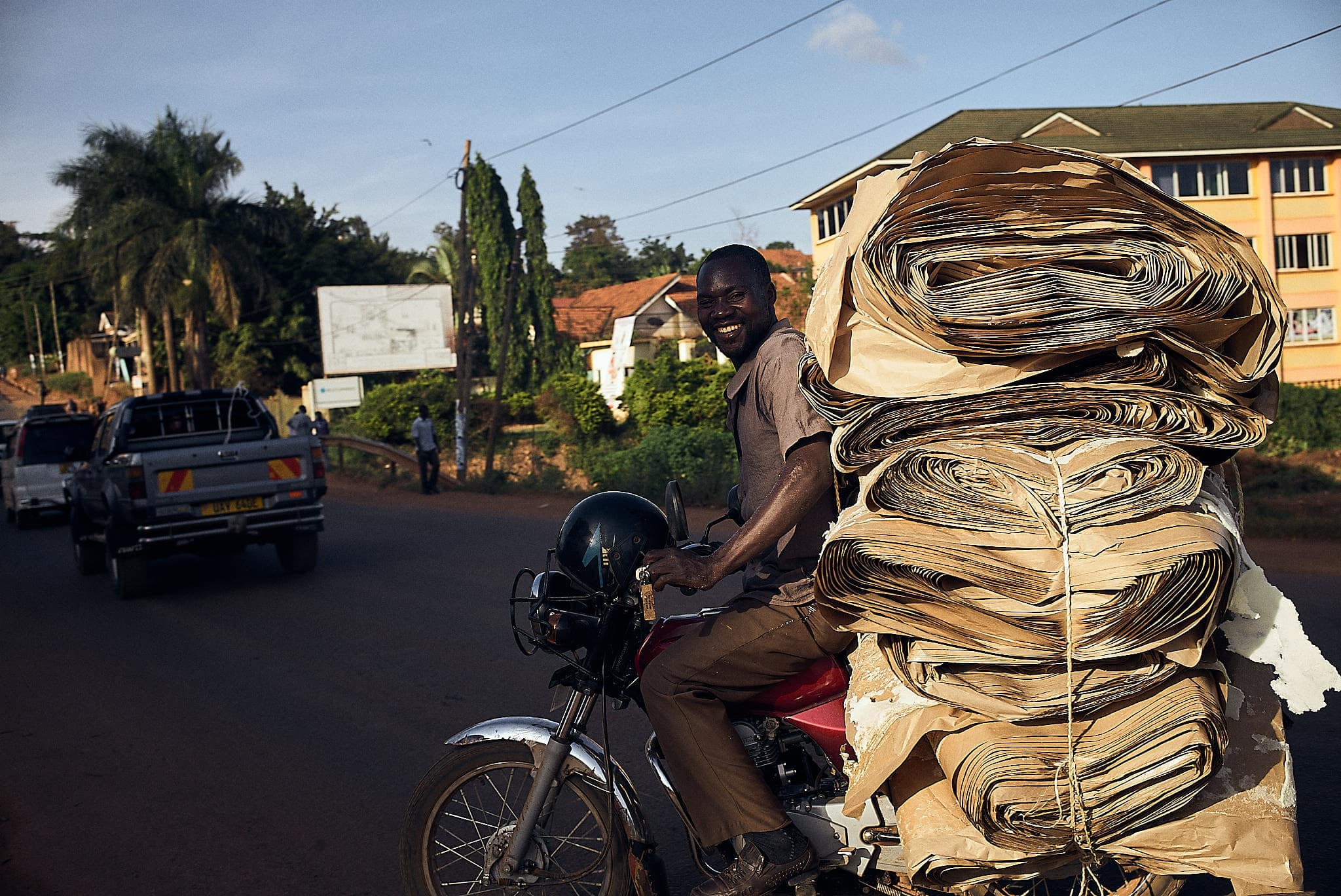 Das Nummer eins Street-Food heißt Rolex, eigentlich Rolled Eggs. Das beschreibt die sättigende Mahlzeit sehr gut: Gemüse ja nach Vorhandensein, Chapati Teig und eben Eier. Gibt es für kleines Geld an ziemlich jeder Strassenecke und hilft gegen den großen und kleinen Hunger zwischendurch. Das individuelle Taxi-ähnliche Hauptverkehrsmittel in Kampala ist das Boda Boda. Ein 250er Motorrad, das einen mehr oder weniger sicher von A nach B bringt.
