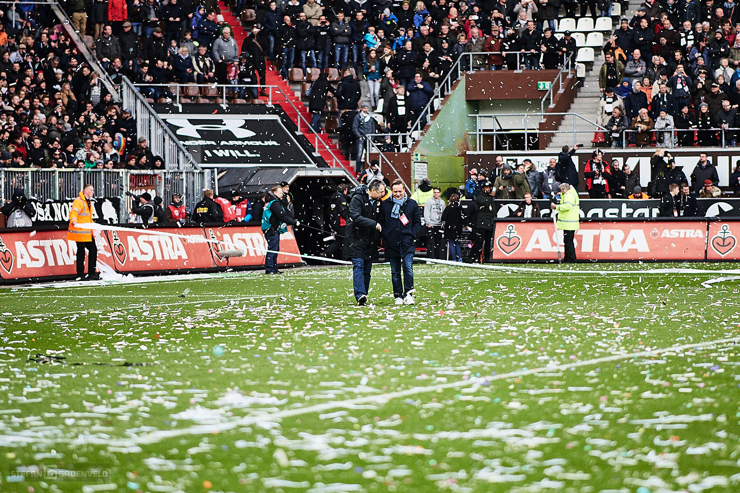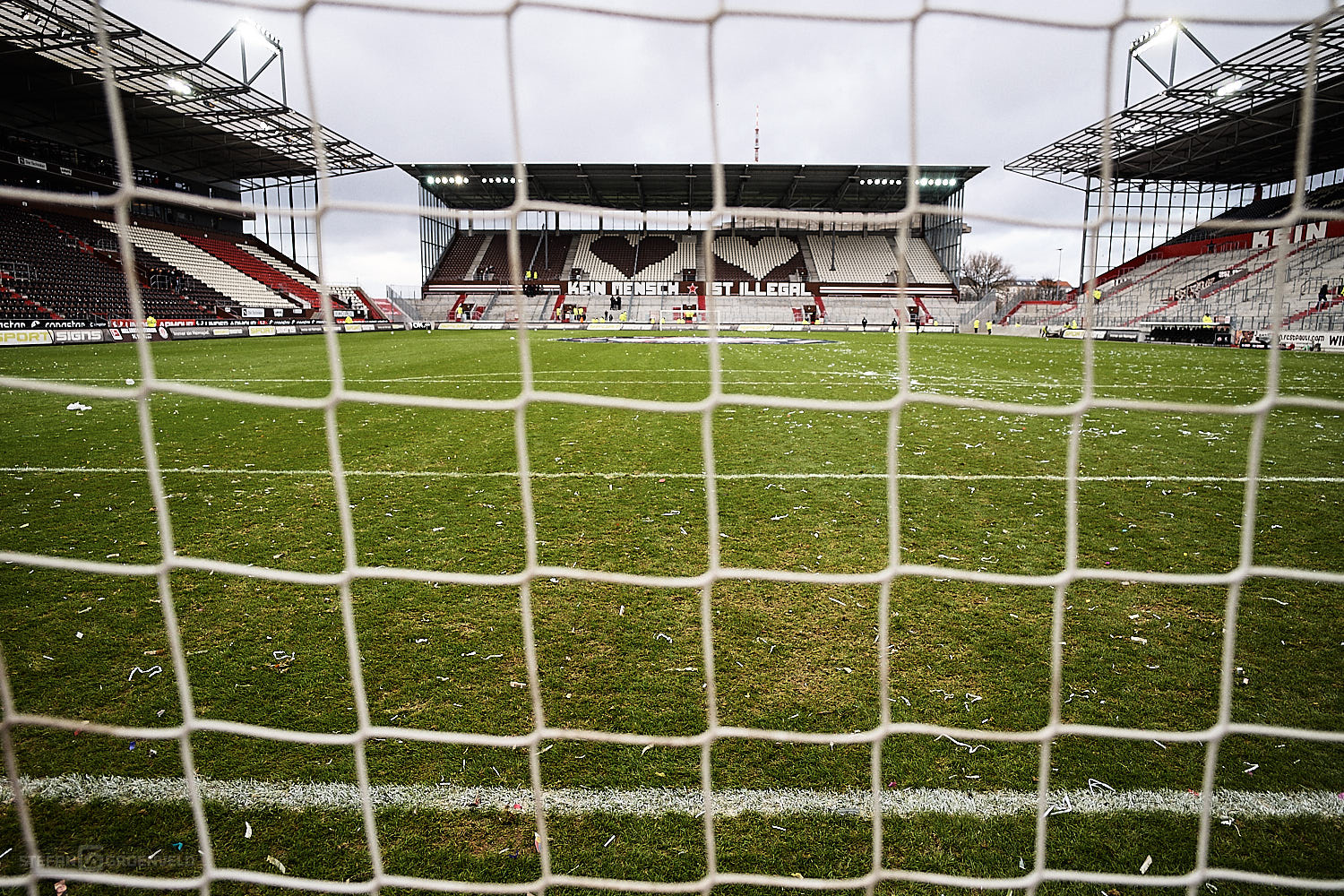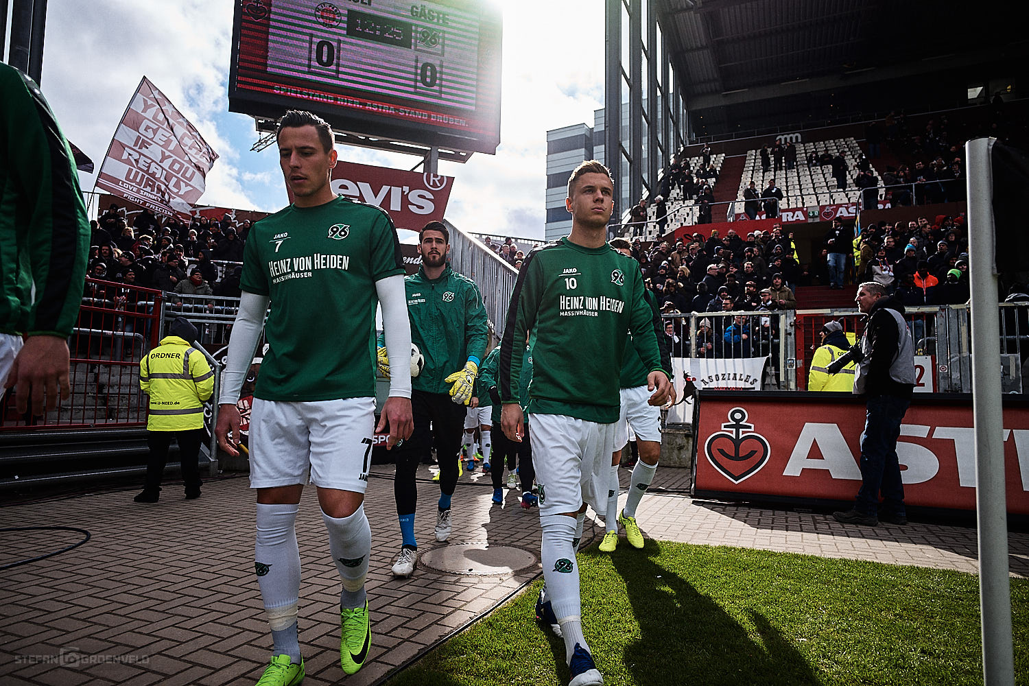 Ganz stark dagegen die Aktion der St. Pauli Fans auf den sogenannten Behindertenplätzen, die für den im Krankenhaus liegenden „Rolli-Werner“ eine fette Choreo bauten. Gute Besserung auch von dieser Stelle.