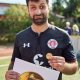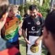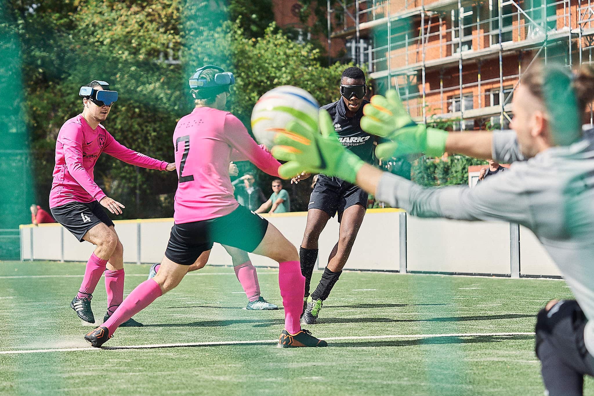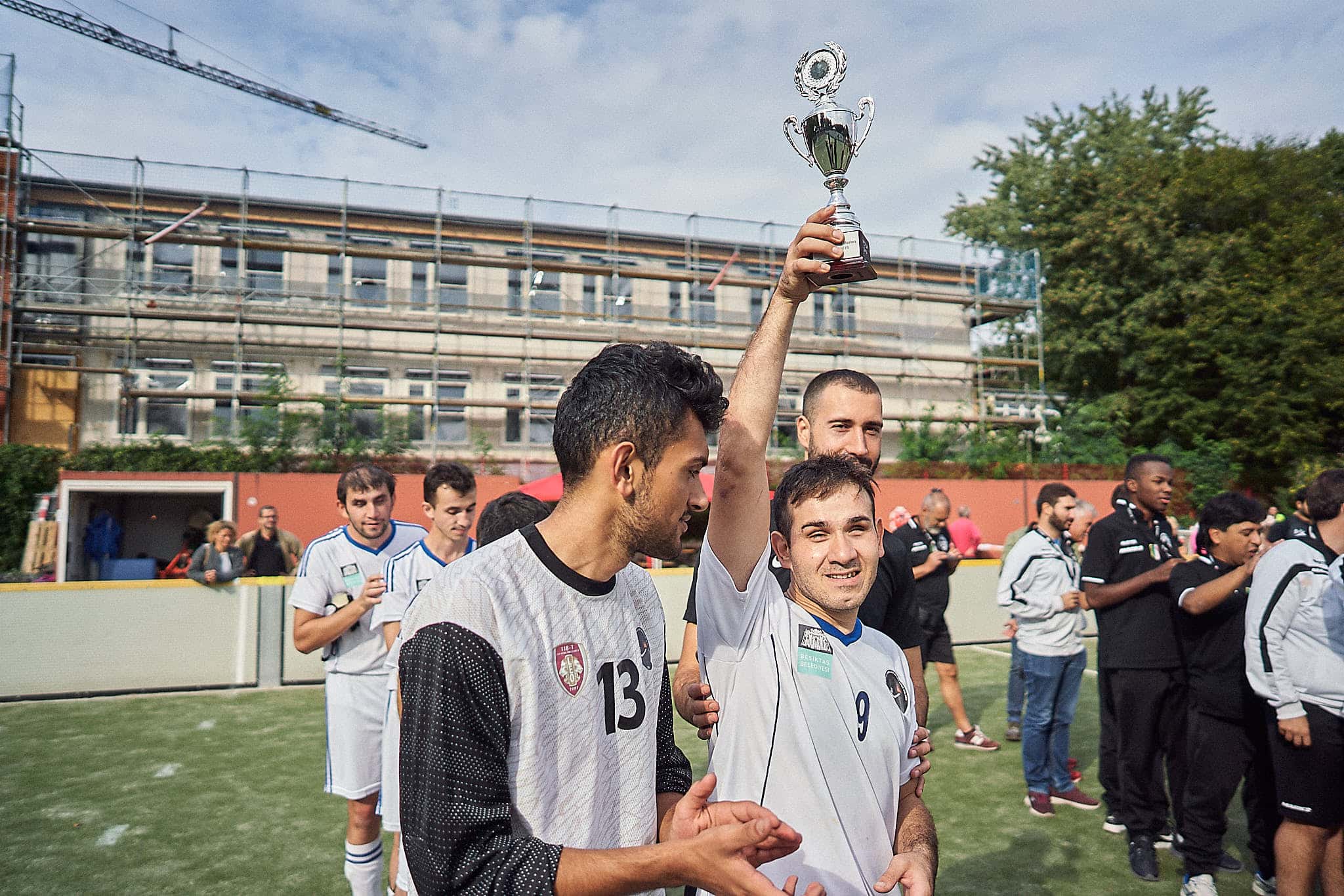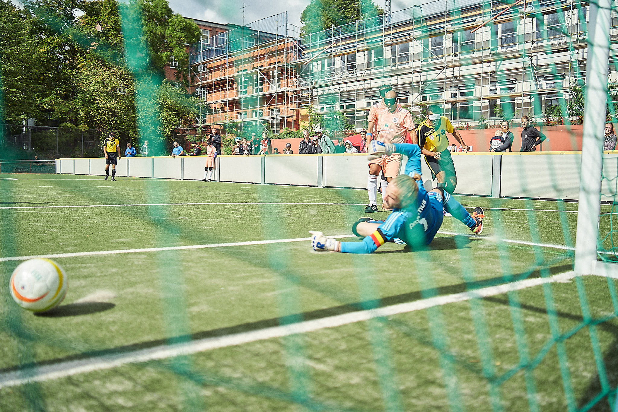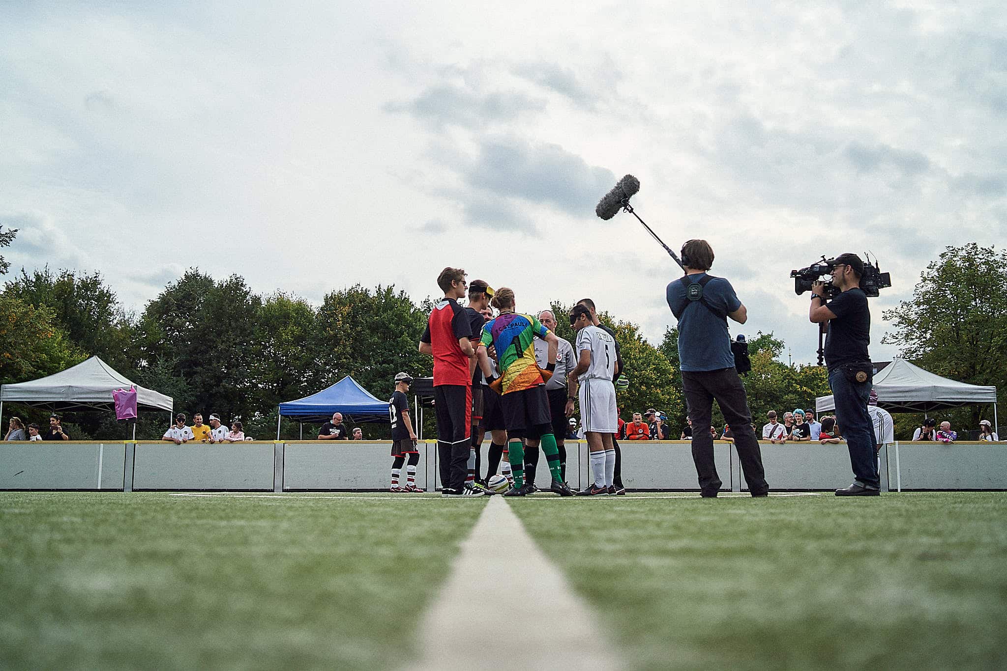 Erstmals waren (zumindest am Sonntag) auch richtig viele Zuschauer beim Blindenfussball Masters. Selbst HFV Präsident Dirk Fischer schaute vorbei. Das rege Interesse hatte sicherlich auch mit der Nominierung von FC St. Pauli Spieler Serdal Celebi beim “Tor des Monats” zu tun, zumindest sorgte das für eine gute filmische Begleitung des Turniers. Selbst ein dpa Fotograf gab sich Samstag die Ehre, um entsprechendes Bildmaterial zur Verfügung zu stellen. Dafür war ich dann am Sonntag der einzige, der die Ehrung fotografieren konnte – denn Serdal hat tatsächlich mit überragenden 36% das Voting gewonnen. Sensationell und ganz fetten Glückwunsch, mein Lieber! Die Sportschau hatte am Sonntag einen wunderbaren Beitrag ins Programm genommen.