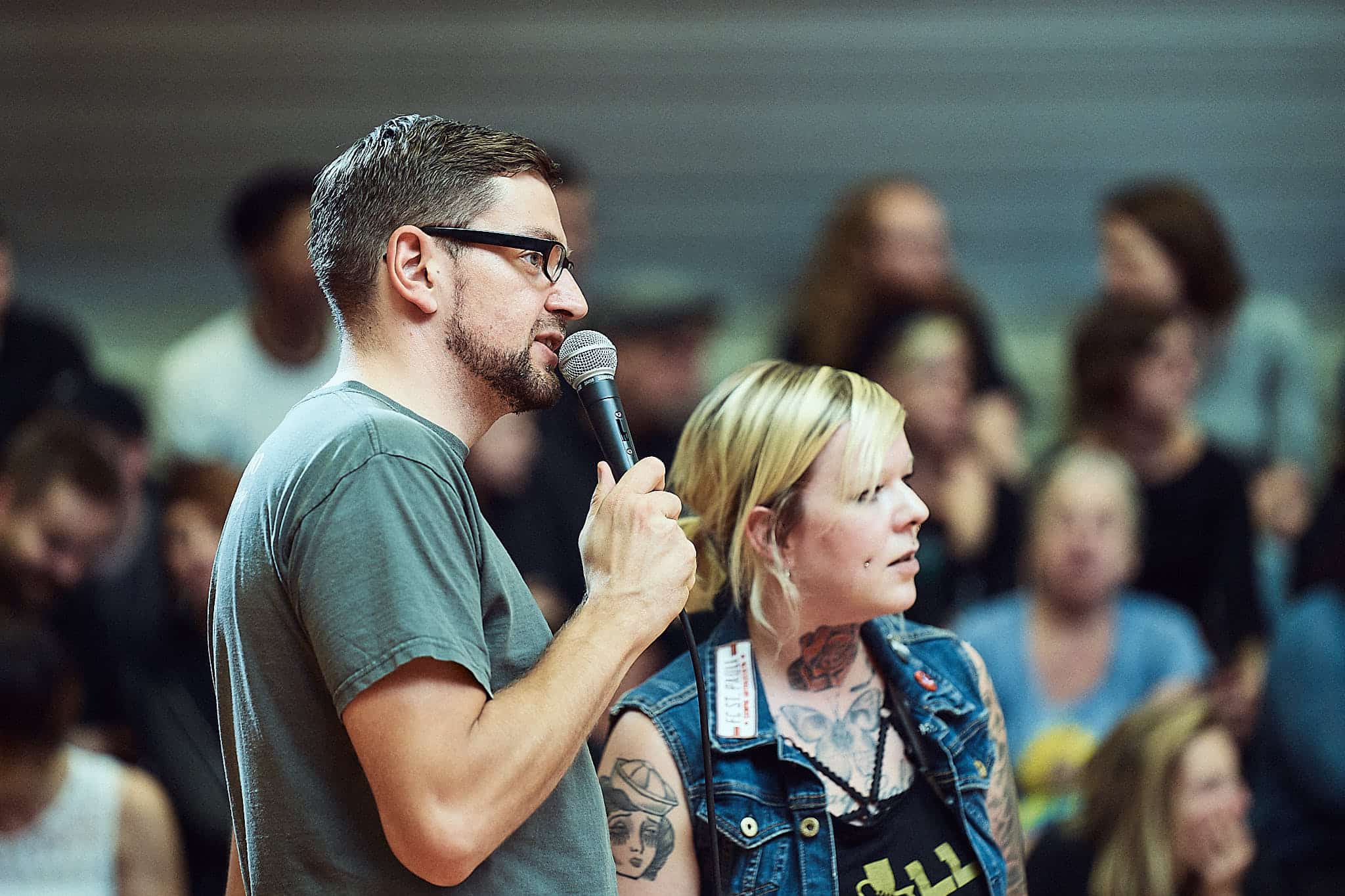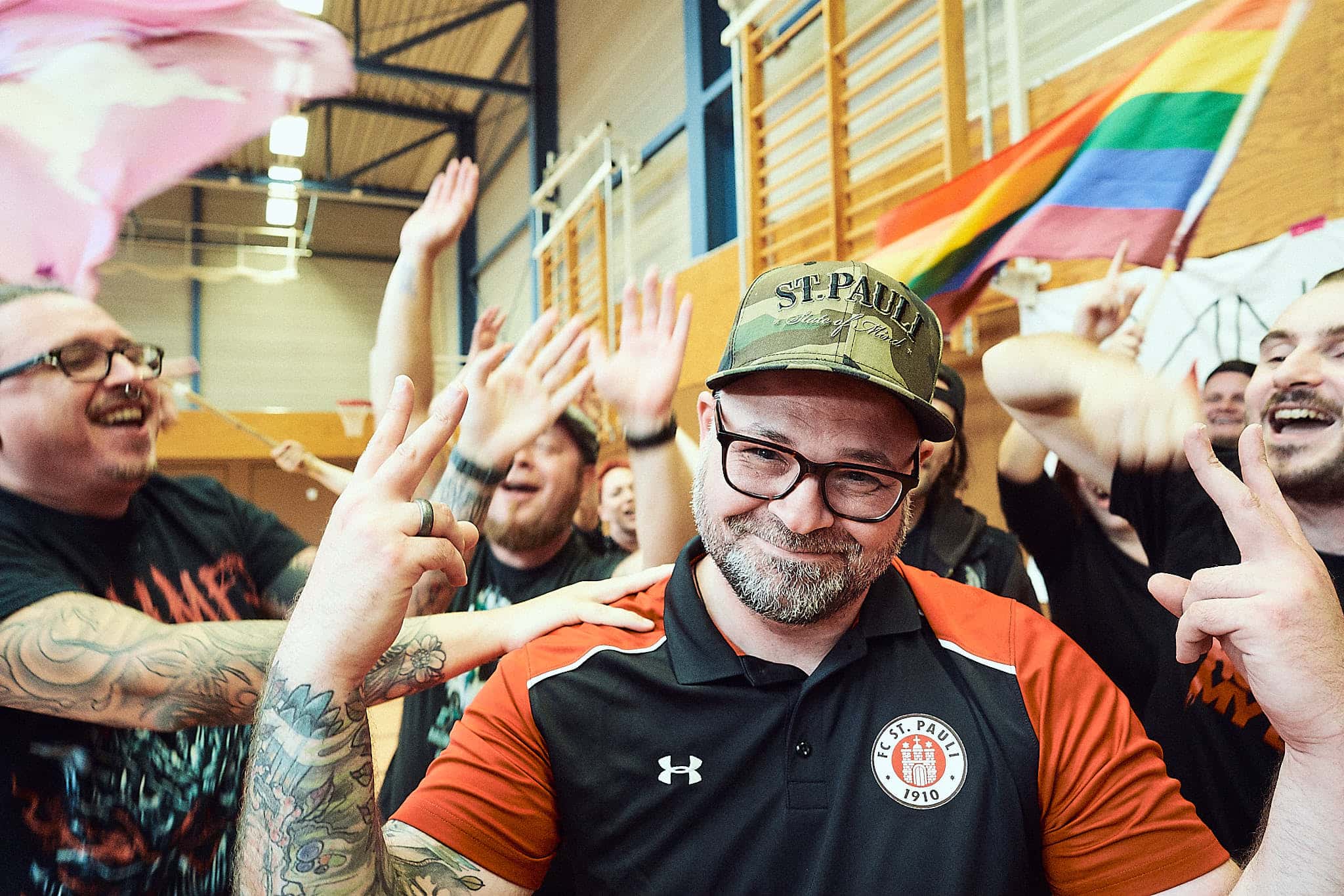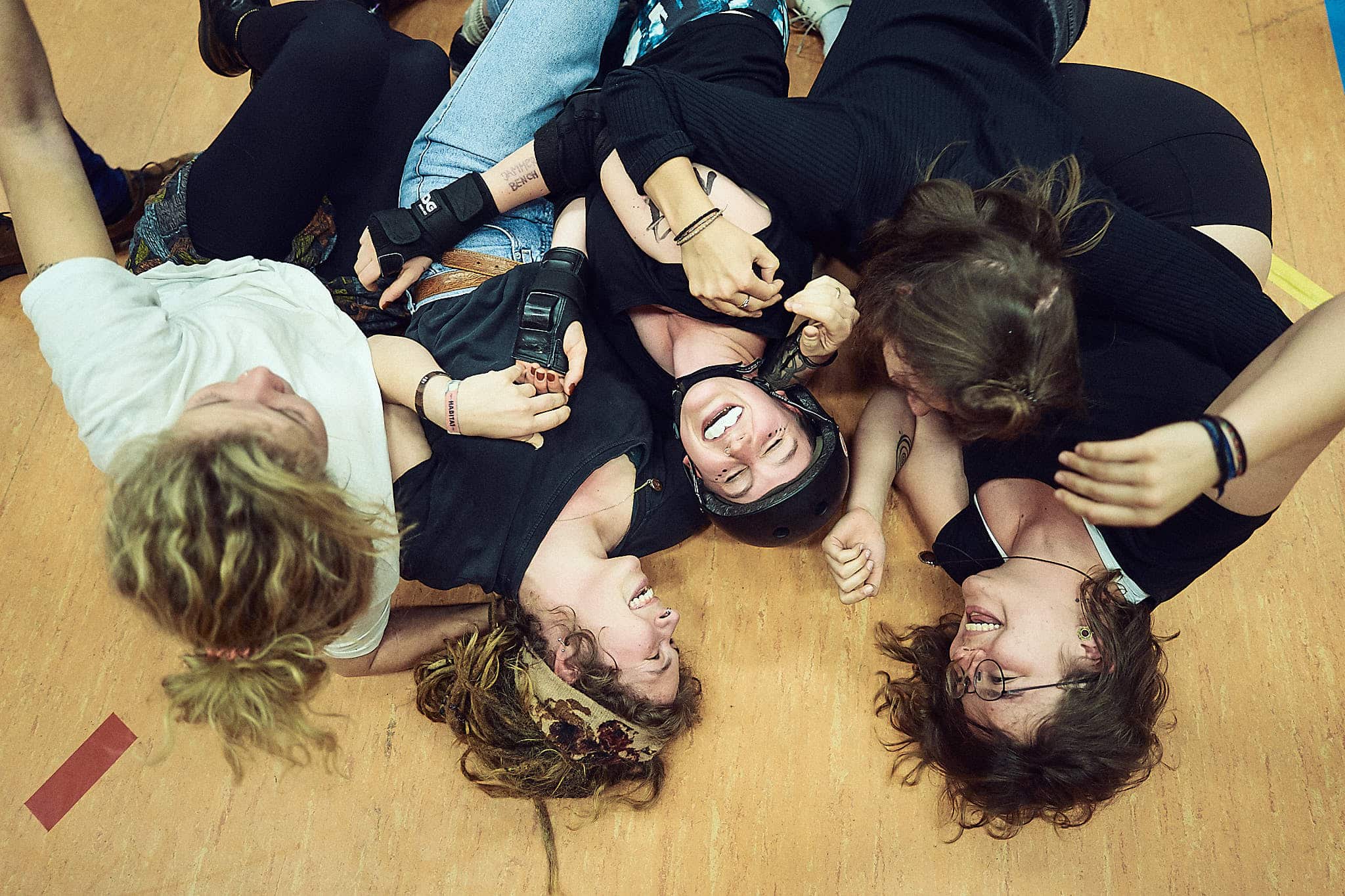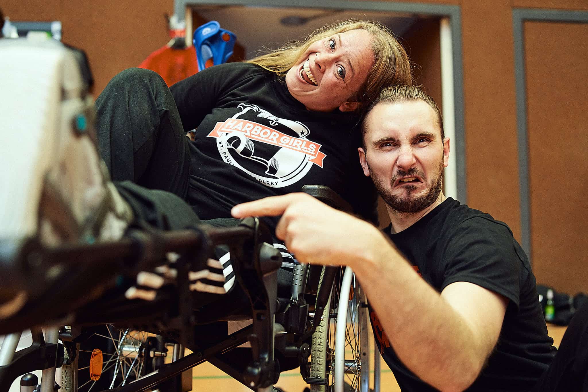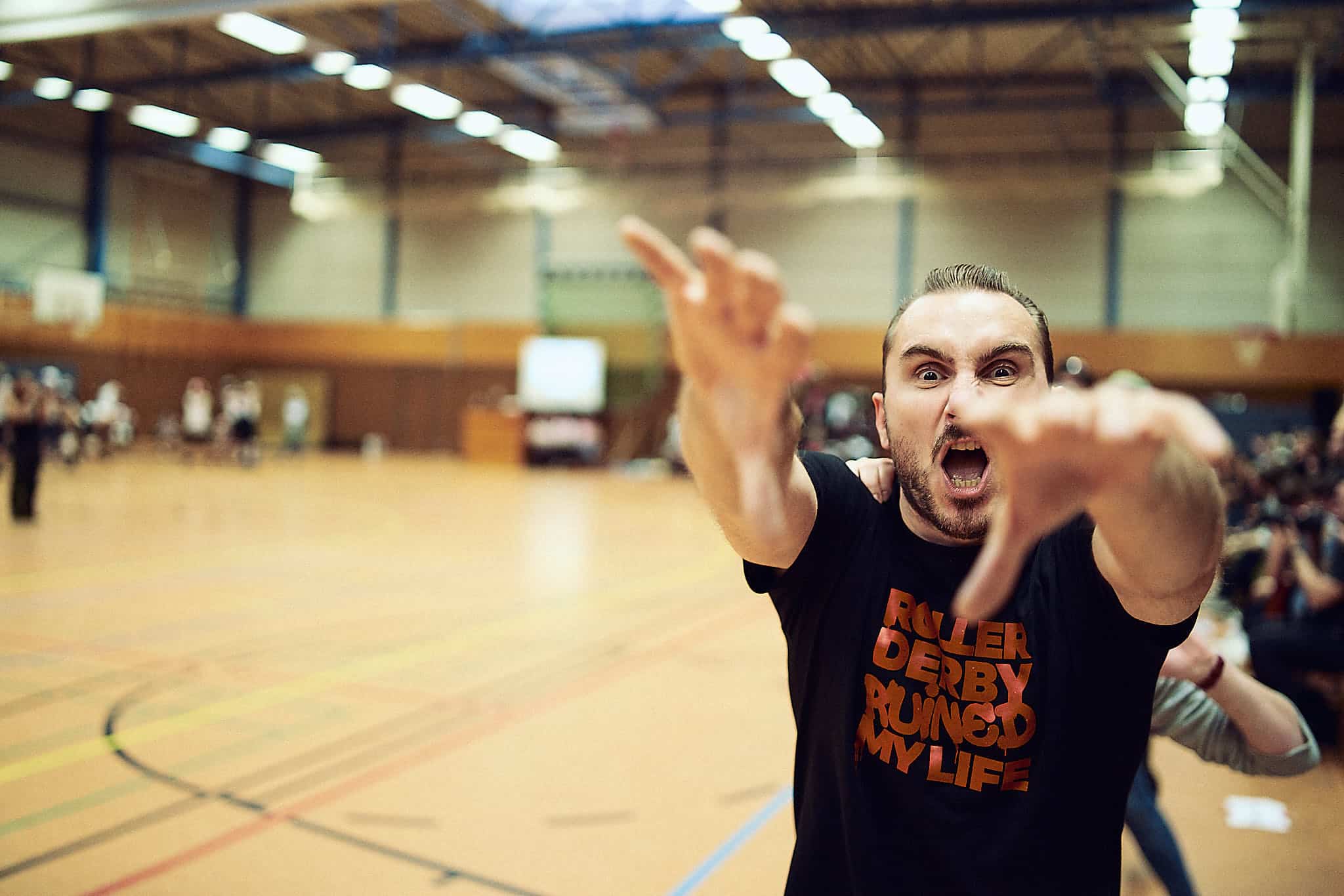 Selbstverständlich ist es beim Rollerderby so, dass Fans friedlich nebeneinander sitzen können und ihre Teams anfeuern. Genauso selbstverständlich ist es, dass die Team hinterher gemeinsam feiern.