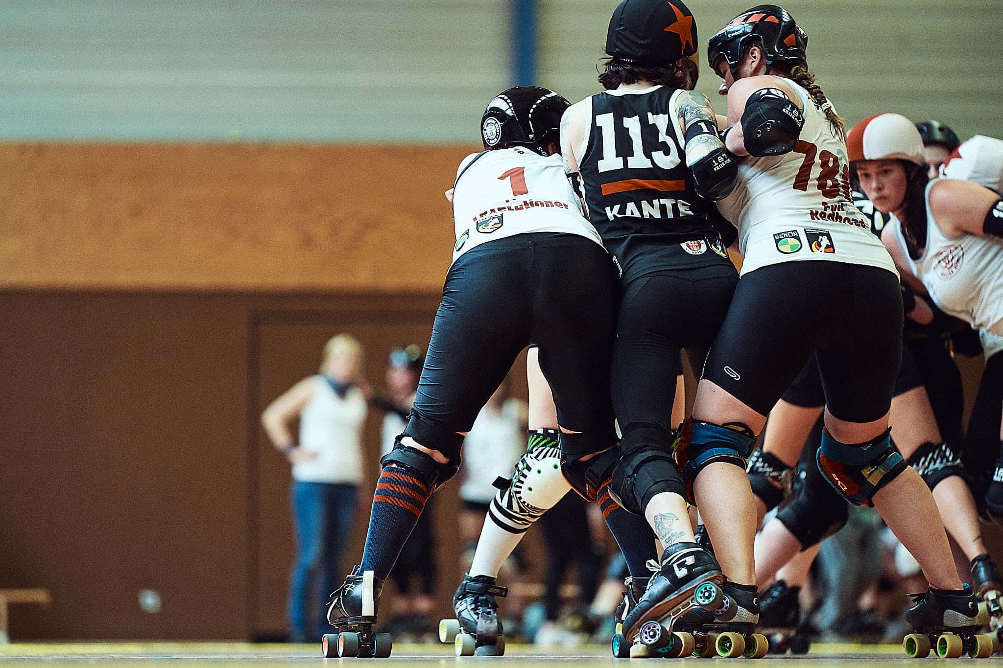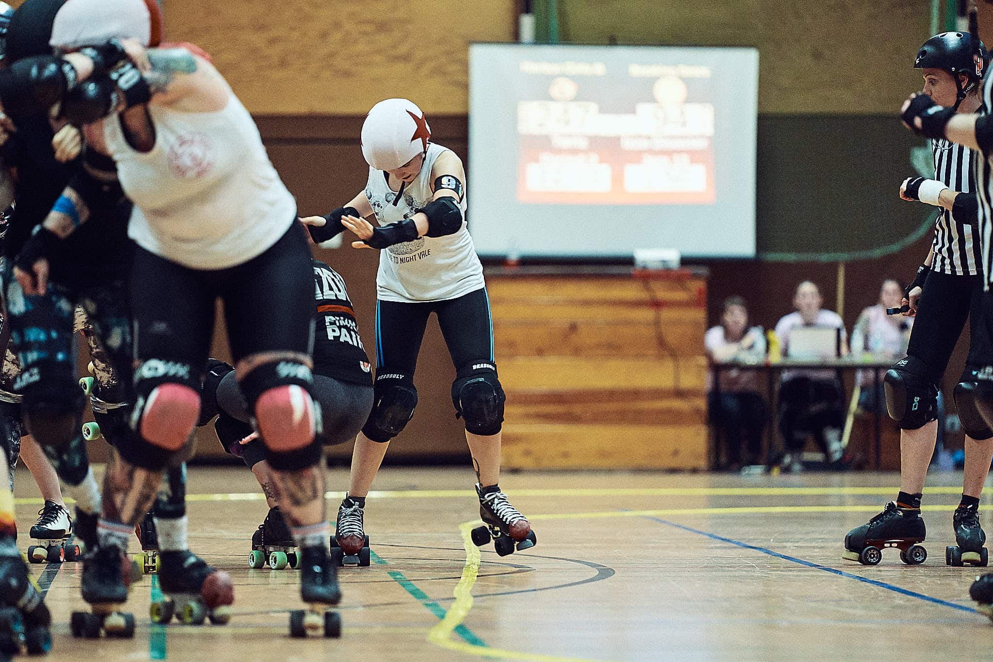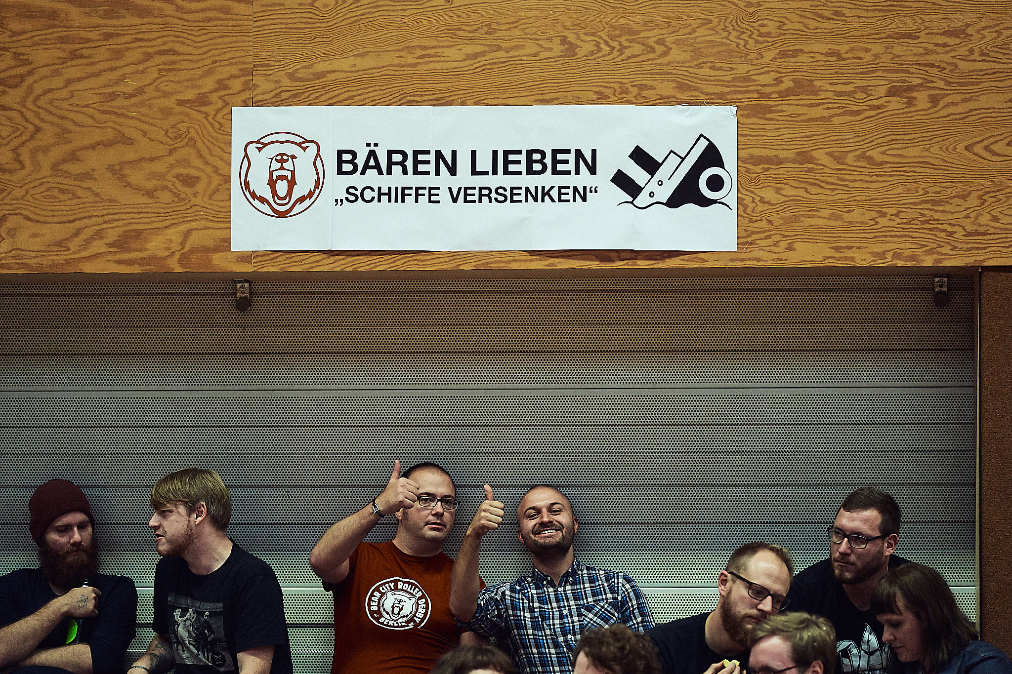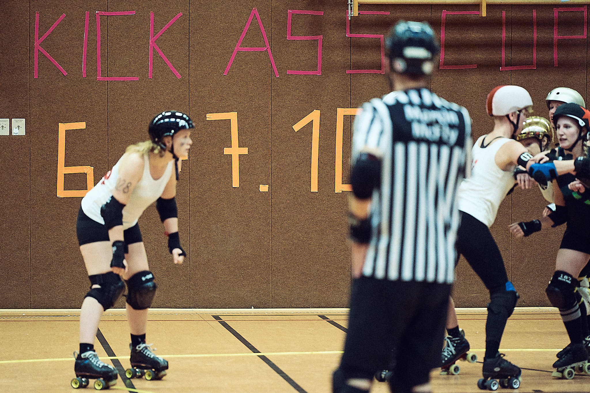 Da das A Team der Berliner nur noch international auftritt, spielt in der Bundesliga das B Team. Daher traf das B Team der Berliner auf das A Team der Hamburger. Und hinterher battelten sich das B Team der Hamburger gegen das C Team der Berliner. Alles logisch? Vielleicht wird es noch etwas verwirrender, wenn ich sage, dass mindestens eine aus Hamburgs A Team mittlerweile im A Team der Berliner rollt. Und da bei diesem Double Header die Personaldecke bei beiden Team etwas dünn war, spielten einige gleich in beiden Teams.