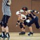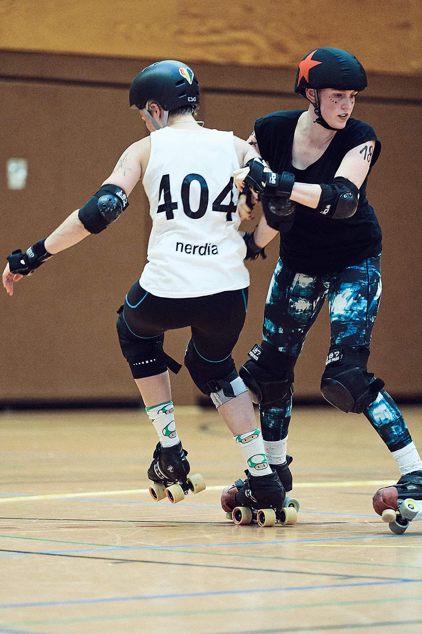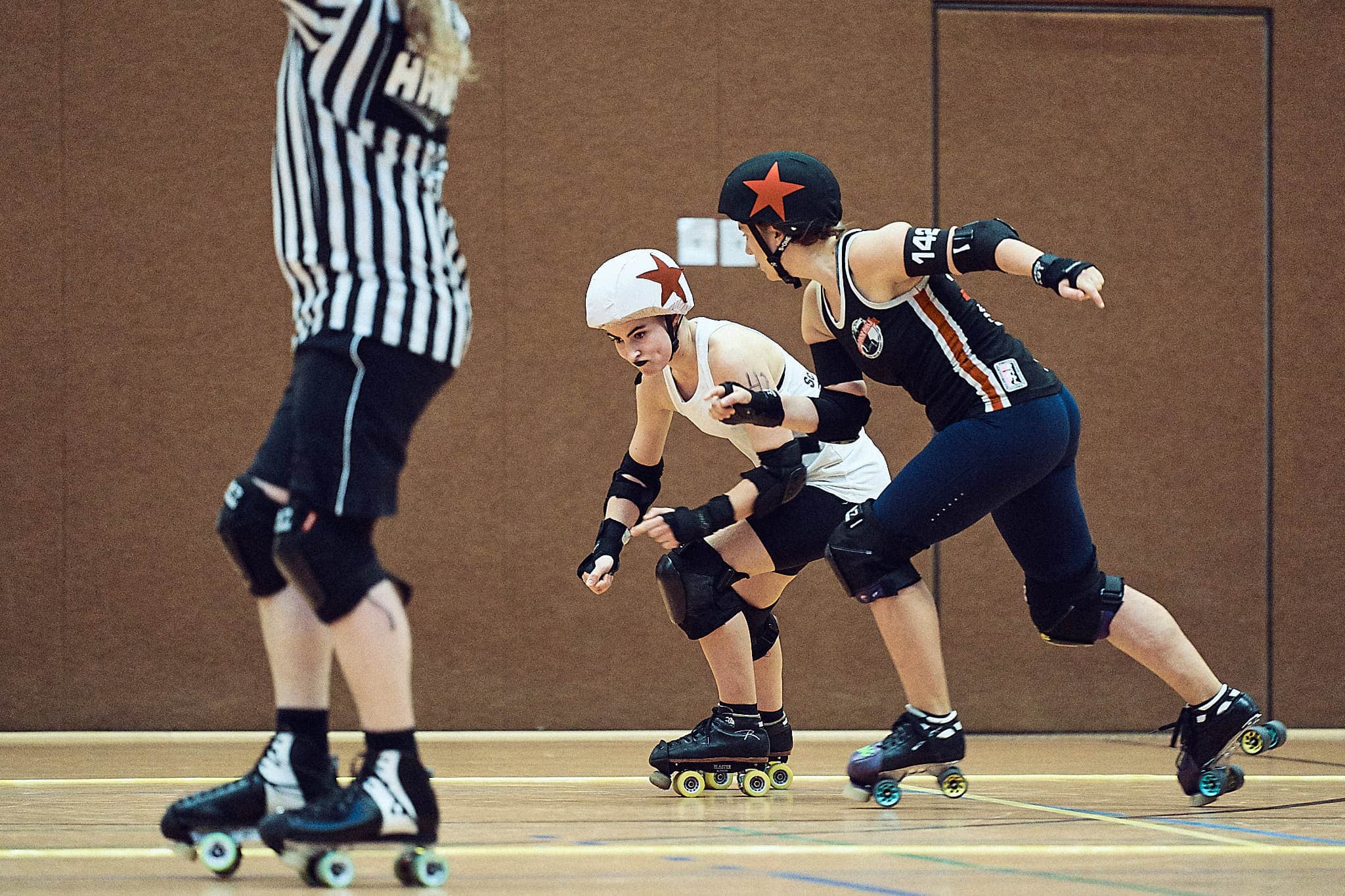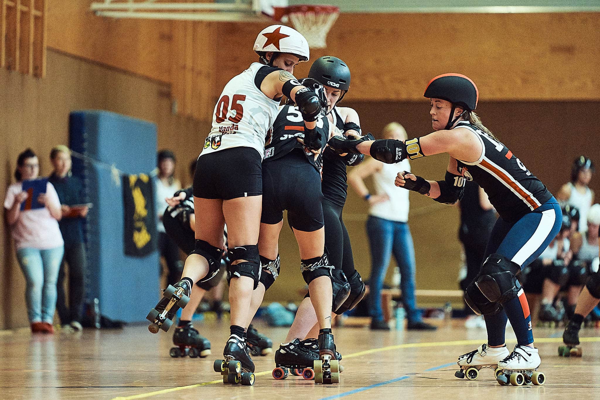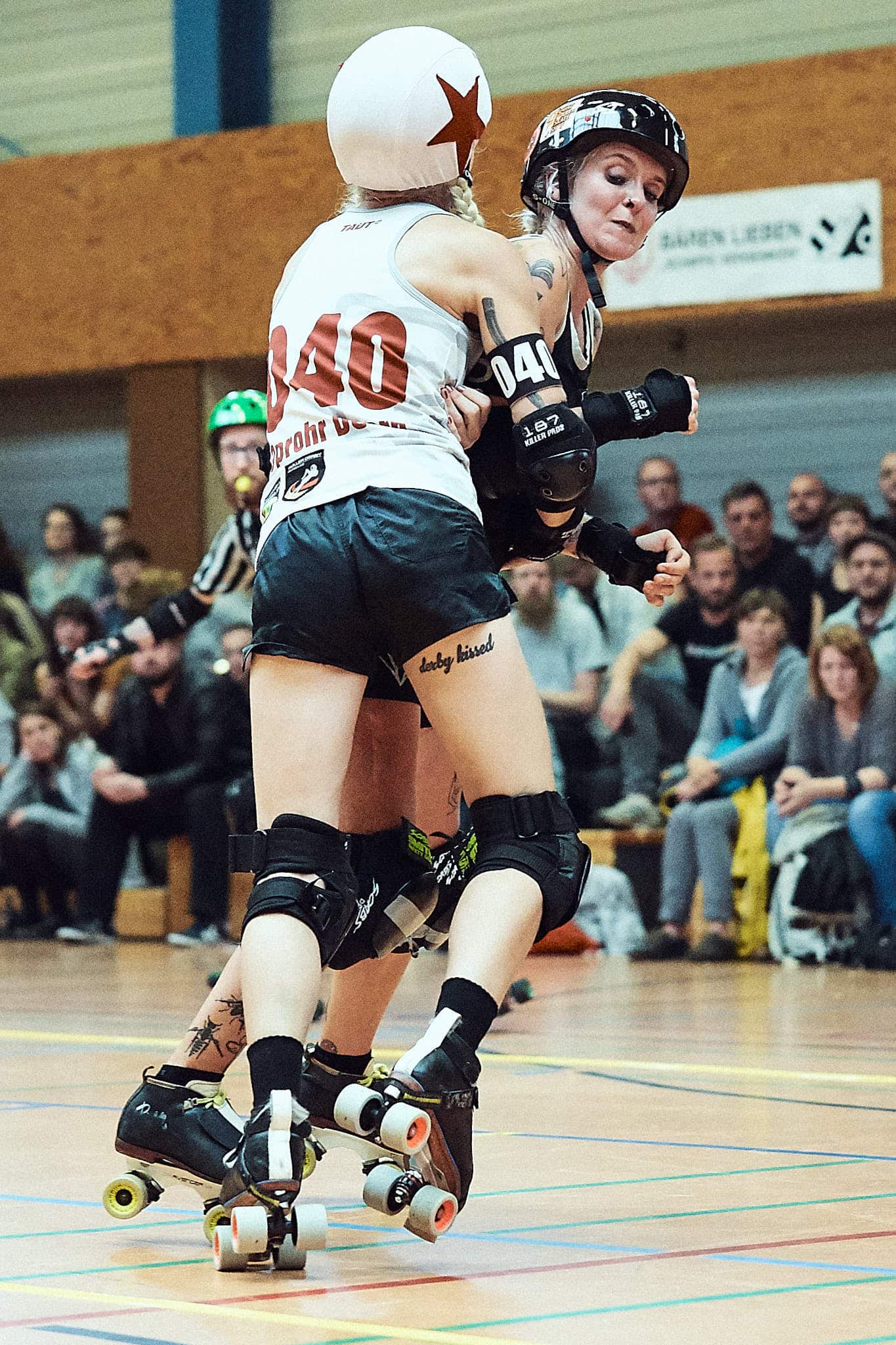 Da das A Team der Berliner nur noch international auftritt, spielt in der Bundesliga das B Team. Daher traf das B Team der Berliner auf das A Team der Hamburger. Und hinterher battelten sich das B Team der Hamburger gegen das C Team der Berliner. Alles logisch? Vielleicht wird es noch etwas verwirrender, wenn ich sage, dass mindestens eine aus Hamburgs A Team mittlerweile im A Team der Berliner rollt. Und da bei diesem Double Header die Personaldecke bei beiden Team etwas dünn war, spielten einige gleich in beiden Teams.