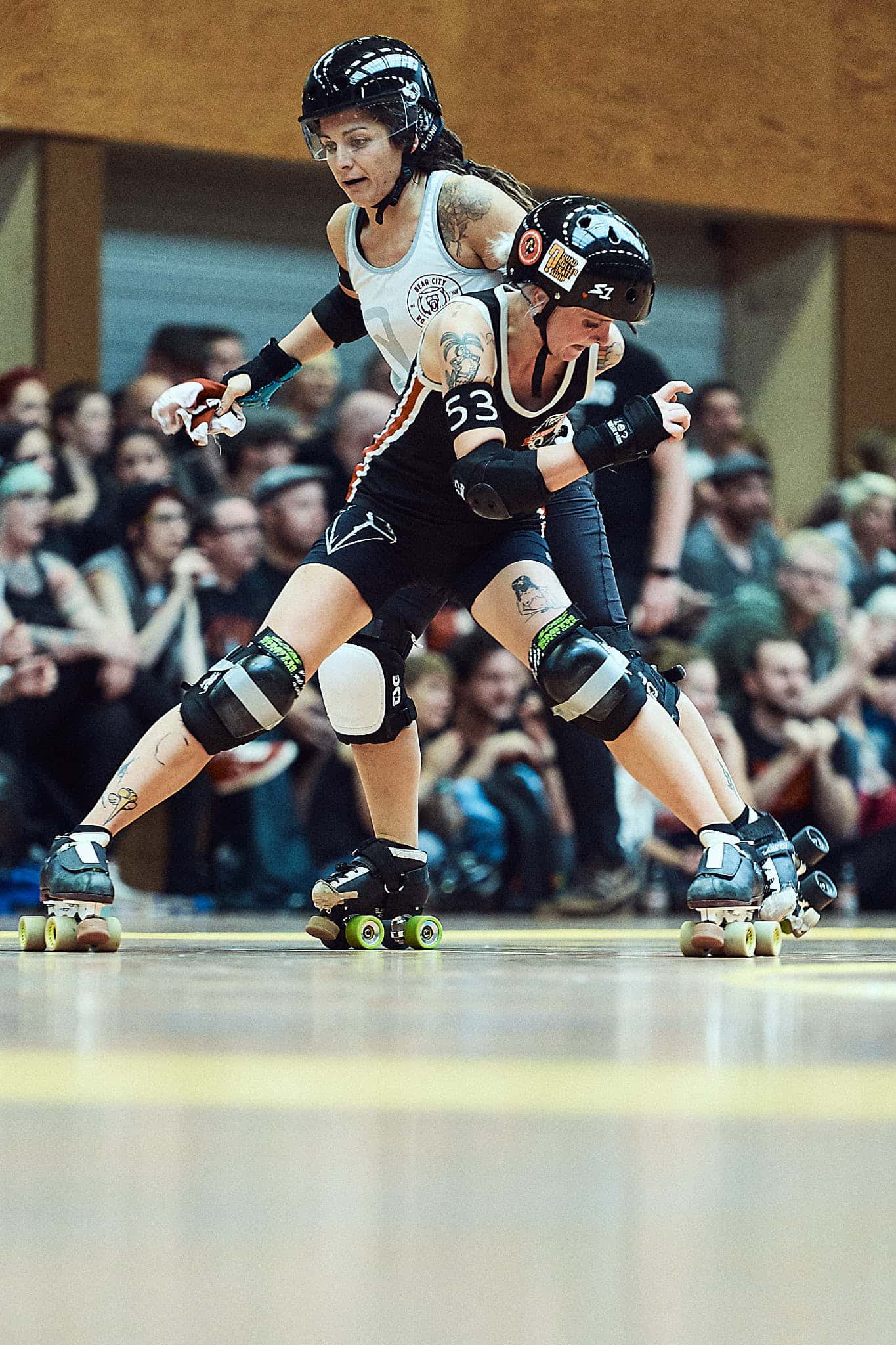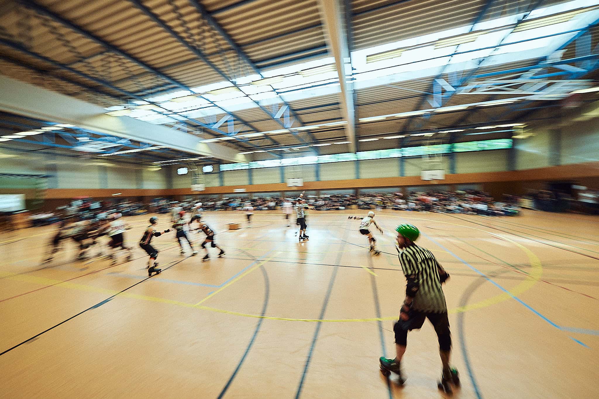 Bundesliga Zeit in der Halle an der Budapester: Rollerderby lädt ein. Zu bewundern gibt es einen Double Header gegen Berlin. Das erklärt dann auch die Überschrift – und wenn nicht, dann wird es durch die Bilder nachvollziehbarer. Auch logisch, dass ich da vom Blindenfussball mal schnell vorbei gefahren bin.