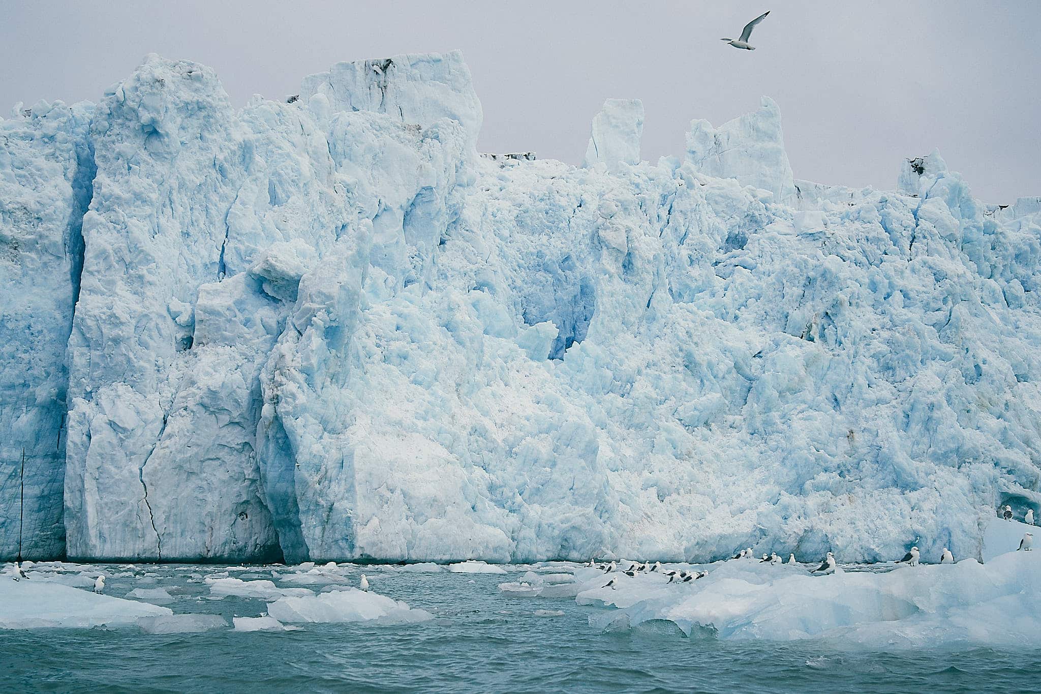 Kurz vorher waren wir am Lilliehöökbreen – einer der größten Gletscher, die es noch zu sehen gibt. Noch ist er 22km lang und bietet vielen Möwenarten ein Rückzugsgebiet. Und wir hatten wahnsinniges Glück, denn die Sonne kam kurz raus und hüllte den Gletscher in viele unterschiedliche Blautöne.
