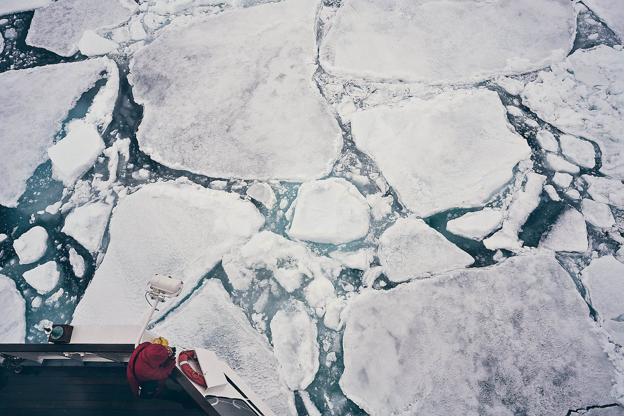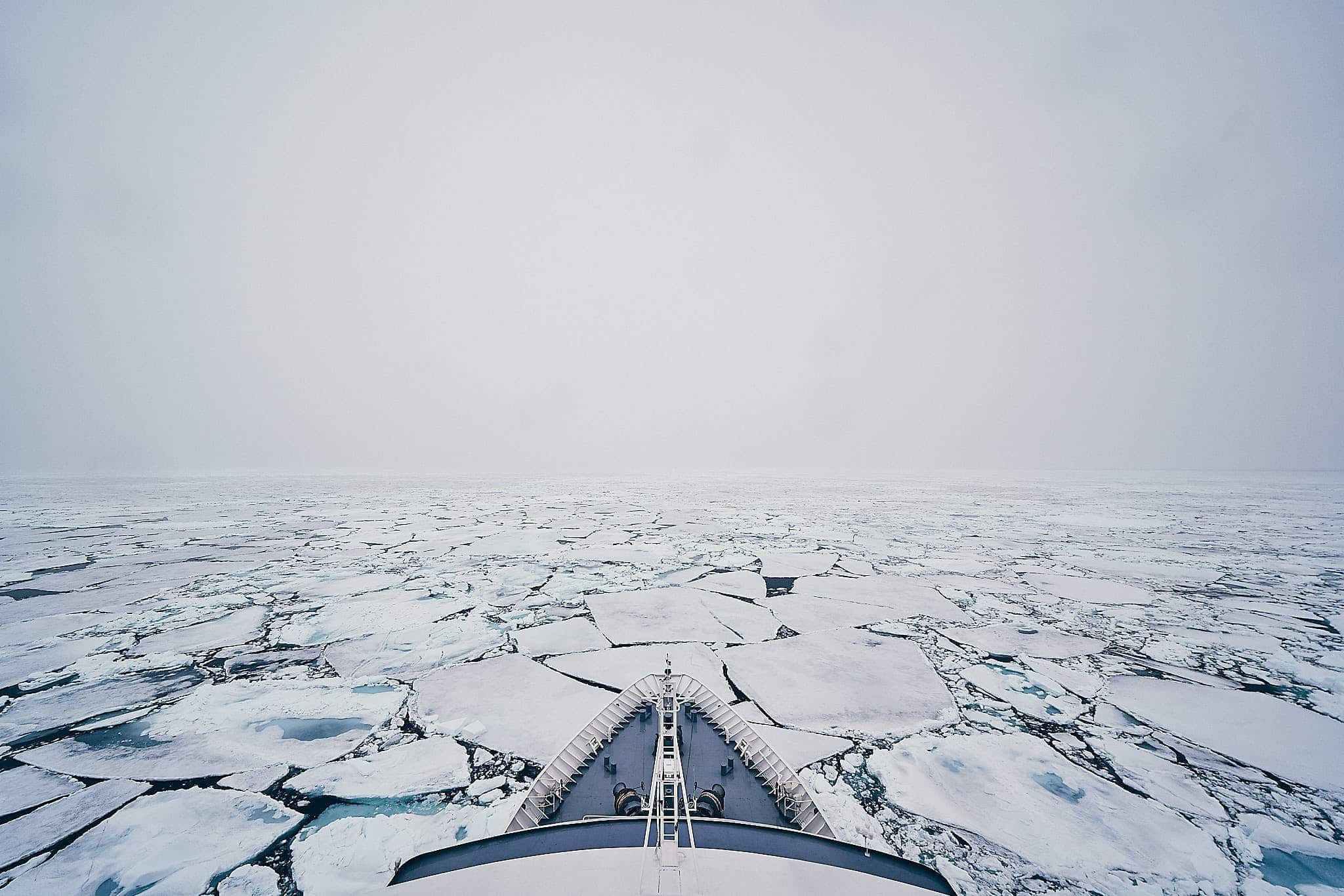 Leise knirscht das Packeis. Langsam bahnt sich das Schiff seinen Weg. Nach vielen Stunden im scheinbaren Nichts und hektischen Anrufen des Kapitäns bei anderen Schiffen, haben wir endlich die Packeisgrenze passiert. So hoch im Norden war die Hanseatic noch nie, um Packeis zu erleben. Wir sind nur noch rund 900km vom Nordpol entfernt. Spitzbergen ist lange hinter uns. Erst Recht das Nordkap, das wir wenige Tage vorher noch besucht hatten. Auch die Grenze der Karte ist lange überschritten. Ein Passagier erzählt mir, dass er 1973 das erste Mal Richtung Spitzbergen unterwegs war und damals die Frage war, ob die Inselgruppe wegen des Packeises überhaupt erreicht werden kann. Plötzlich wird für mich die Klimaerwärmung greifbar und erlebbar.