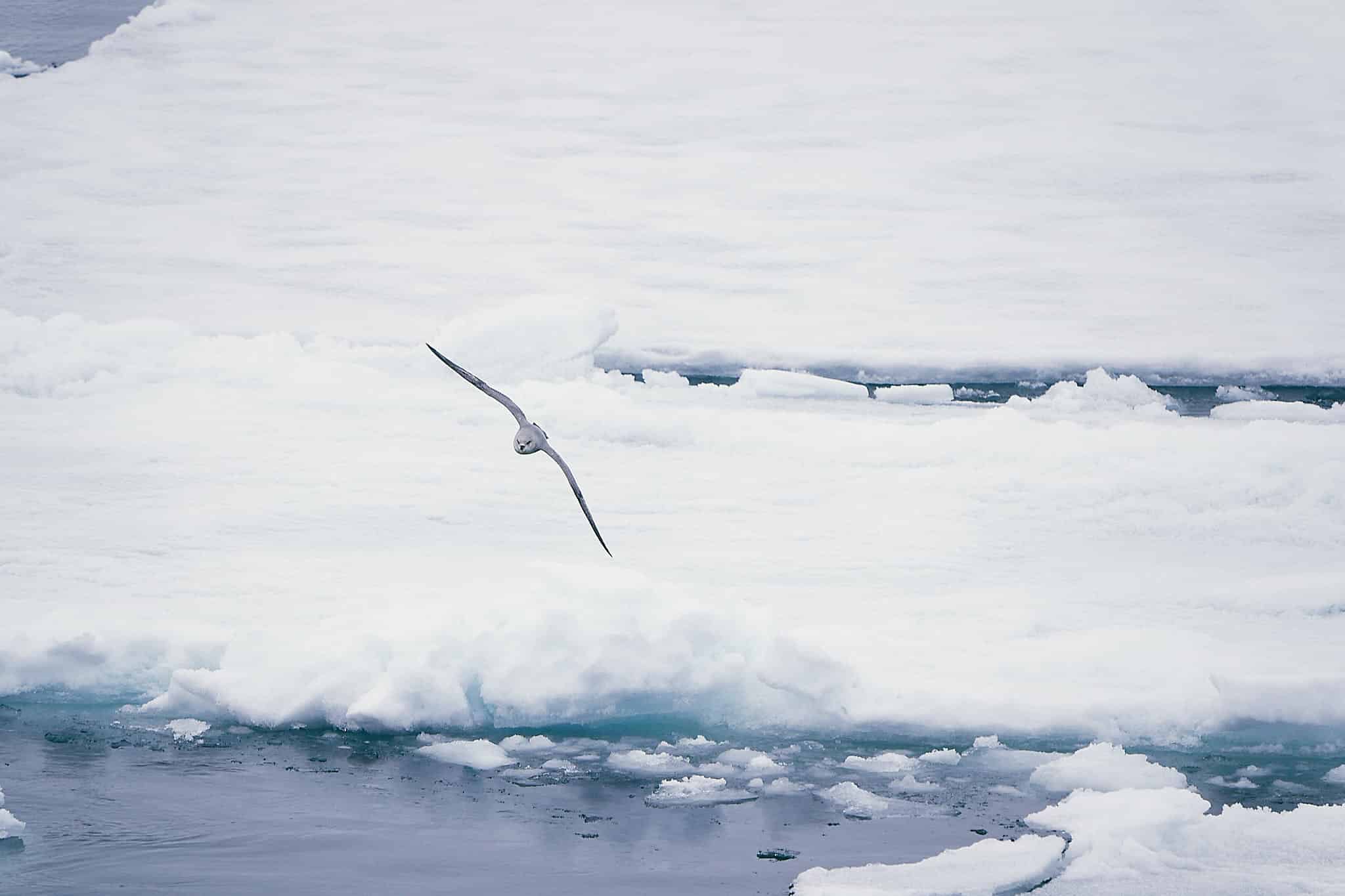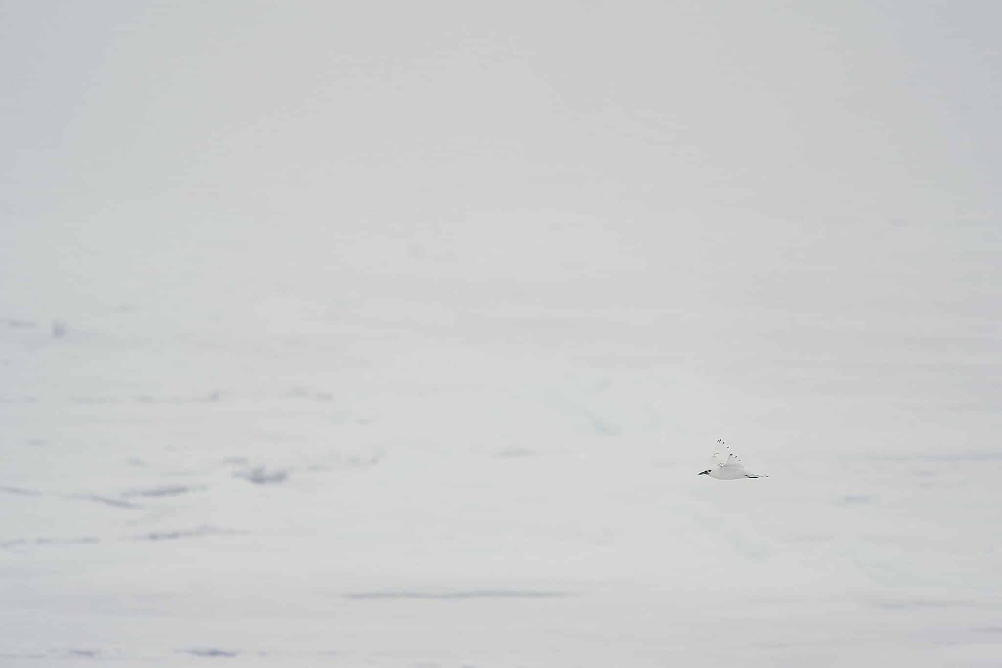 Später im Packeis dann nur Nebel. Das Packeis scheint unendlich. Lautlos segeln Möwen um uns herum. Der Autofokus meiner Kamera hat schwer zu kämpfen, um im Nebel mit weißem Hintergrund eine junge Elfenbeinmöwe zu fokussieren. Es klappt und ich bin glücklich, denn auch diese Tiere sind vom Aussterben bedroht. Ihr Revier – das Packeis – wird immer kleiner.