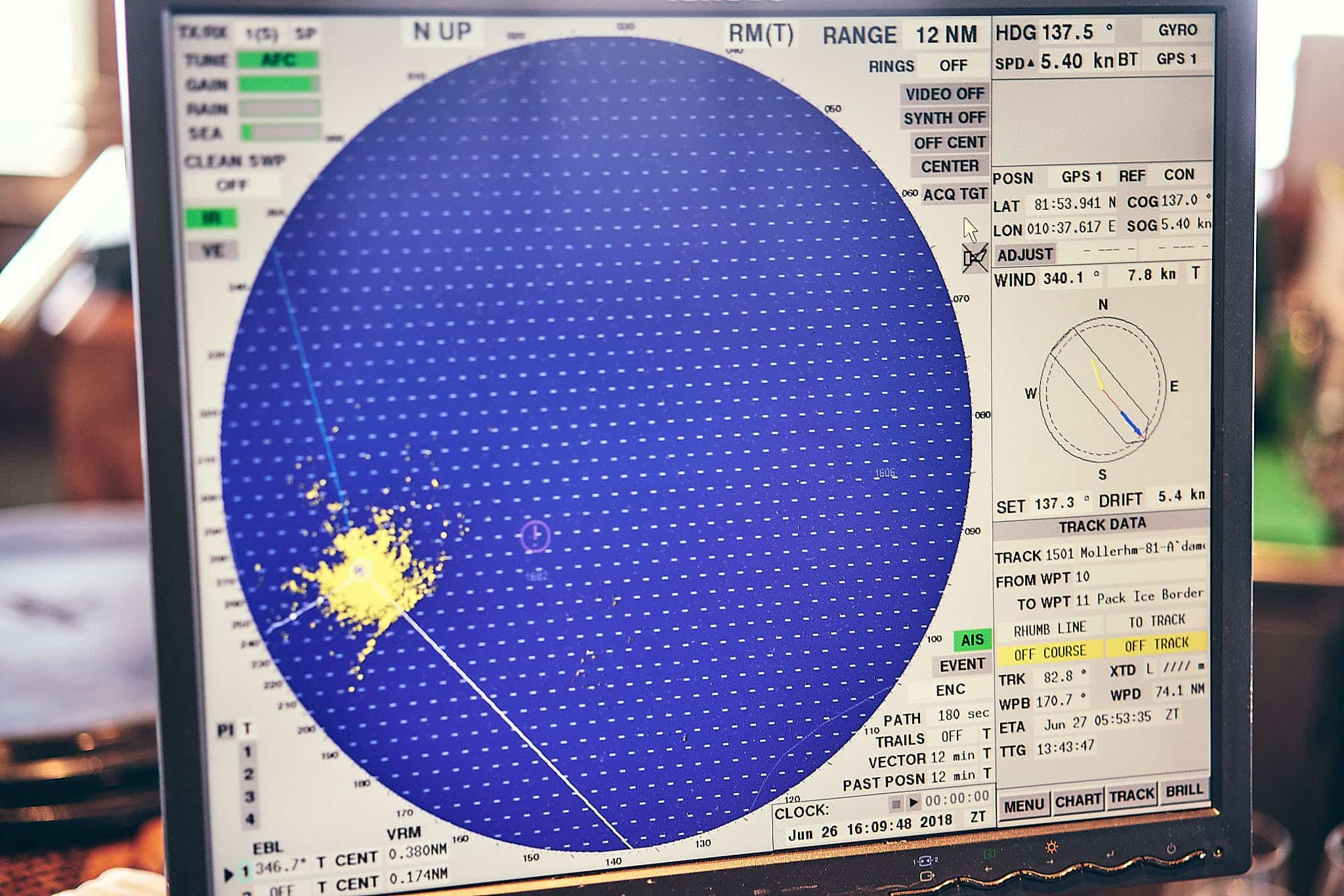 Der Kapitän hat Gefallen an meinen Bildern gefunden und lässt mich mit einem der ebenfalls fotografiebegeisterten Offiziere den kleinen Turm zum Radar hochklettern. Vier Meter bin ich hier über Deck und eine echte Absicherung gibt es nicht. Glücklicherweise habe ich Höhenangst, aber mit einer Kamera vor dem Auge ist es nicht so schlimm. Ich werde mit einem tollen Blick belohnt.