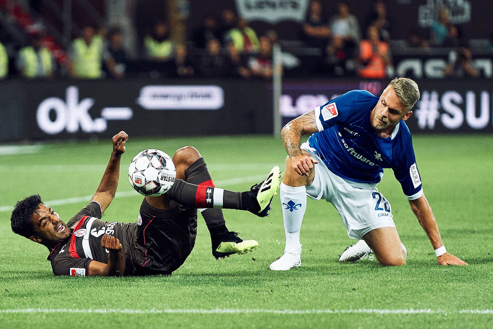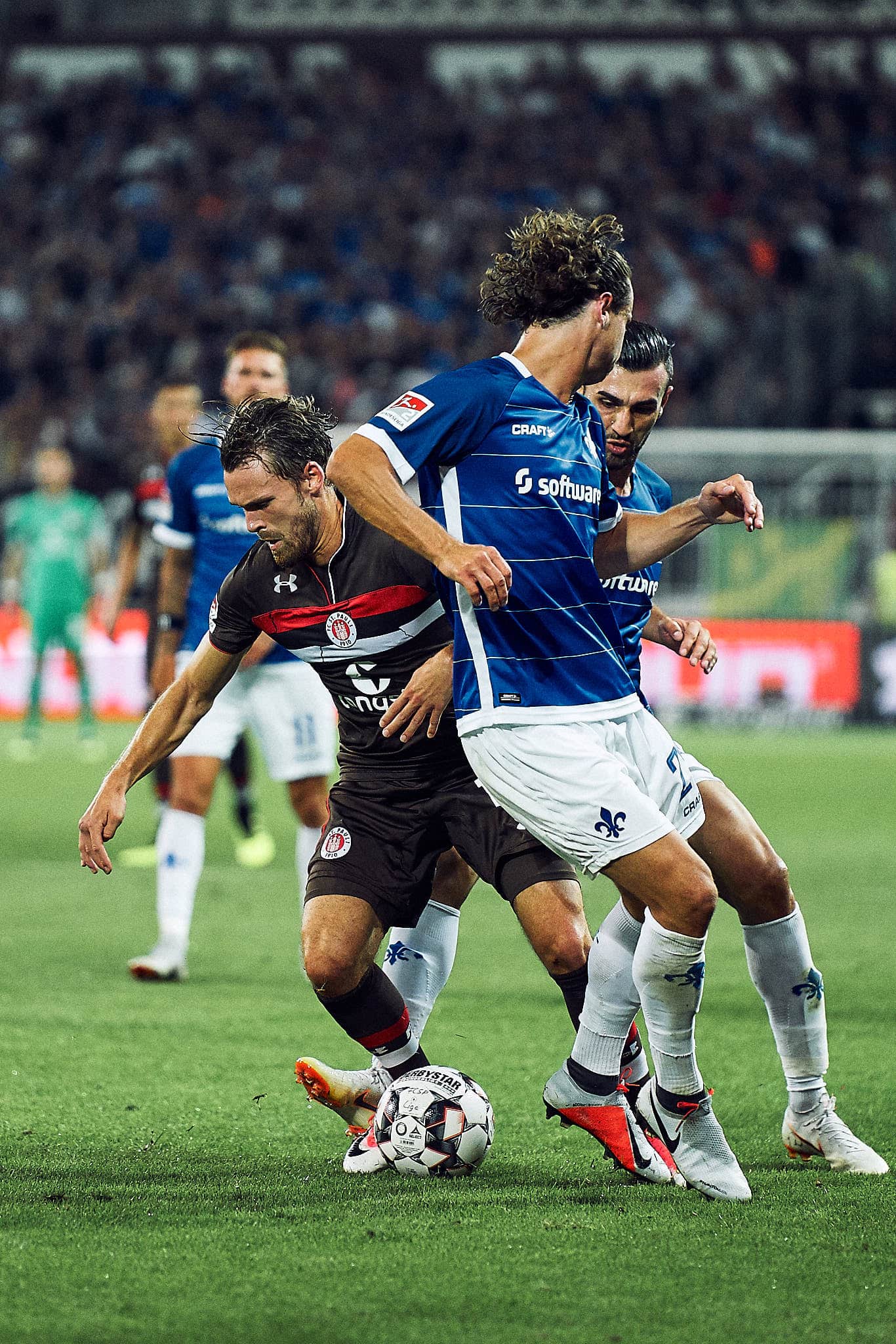 Das erste Heimspiel einer neuen Saison ist immer was besonderes! Alle haben auf diesen Moment gewartet und das ist zu jeder Minute im Millerntor zu spüren. Auch ich bin schon früh da und sehe wie sich der neue im Sturm Henk Veerman das Stadion erklären lässt. Viele Fans, mit denen ich mich unterhalte, sind wegen des letztwöchigen Auswärtserfolg besonders euphorisch. Die übrigen Ergebnisse des Abends lassen das Wort „Tabellenführer“ schon vor dem Spiel besonders oft erklingen. Davor stehen aber erstmal 90 Minuten Fussball gegen den SV Darmstadt 98, gegen den die Jungs in braun und weiß die letzten Male nicht besonders gut ausgesehen haben. Wenigstens bringen die gute Musik mit…