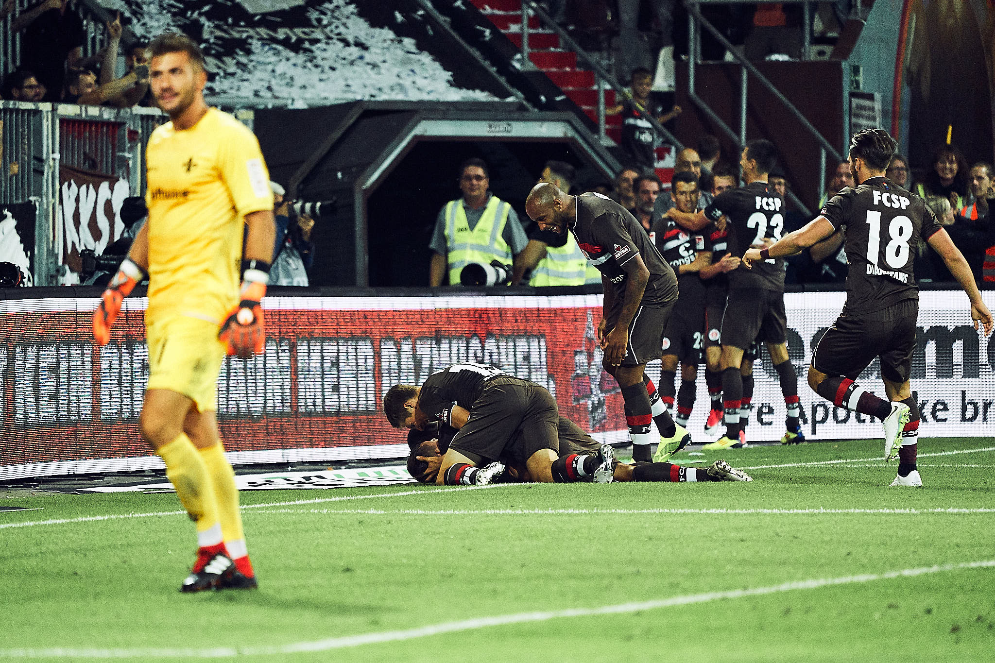 Klar rasten da einige Fans in aller Euphorie aus. Interessant, wie viele das testosterongeschwängerte Ultra Lied von der Nummer 1 in der Stadt mit anstimmen und bei der nächsten Pyro-Aktion die gleichen Vorsinger wieder auspfeifen. Es ist der zweite Spieltag und natürlich freue auch ich mich. Aber wenn jetzt nicht nachgelegt wird, ist das alles nichts wert. Fussball ist ein verdammt schnelllebiges Geschäft. Deswegen fand ich es sehr sympathisch, dass die Mannschaft in den Gesang nicht mit eingestiegen ist.