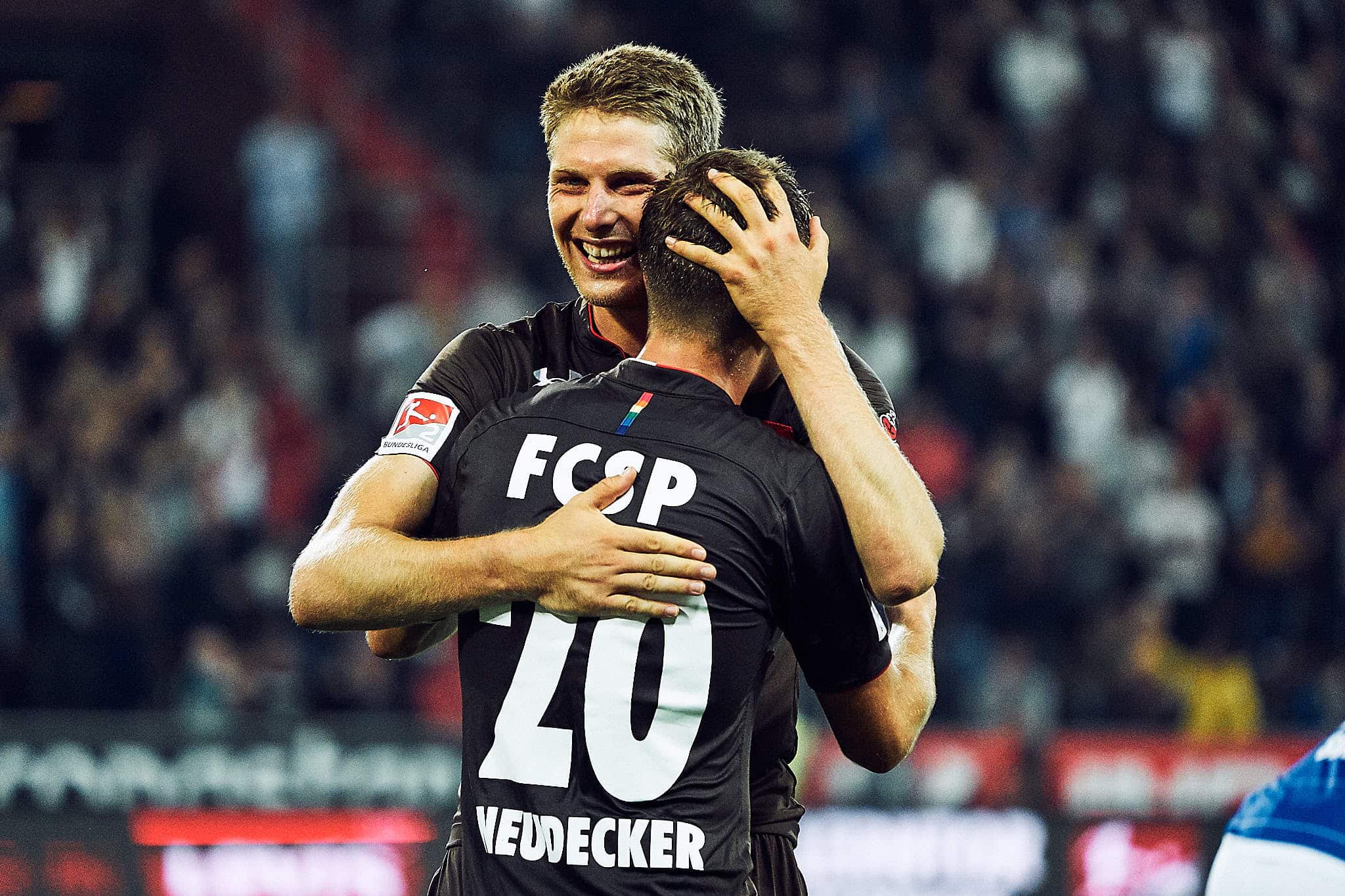 Mit einem tollen Konfettiinferno beginnt das Spiel und die ersten 45 Minuten gehören den Gästen und Himmelmann. Dank ihm und einer tollen Teamleistung, bei der auch Buchtmann mal hinten in der Abwehr mithilft, gibt es keinen Rückstand. In der Halbzeit wird leicht umgestellt und schon läuft der Ball besser. Darmstadt bekommt kaum noch was auf die Reihe und Neudecker bzw Møller Dæhli sprinten ein ums andere Mal bis zur Grundlinie. Das verdiente und erlösende 1:0 fällt dann auch genau so: Møller Dæhli funkt von der Grundlinie über alle hinweg und Neudecker (1,74m) ist so frei, dass er mit dem Kopf das Tor erzielen kann.