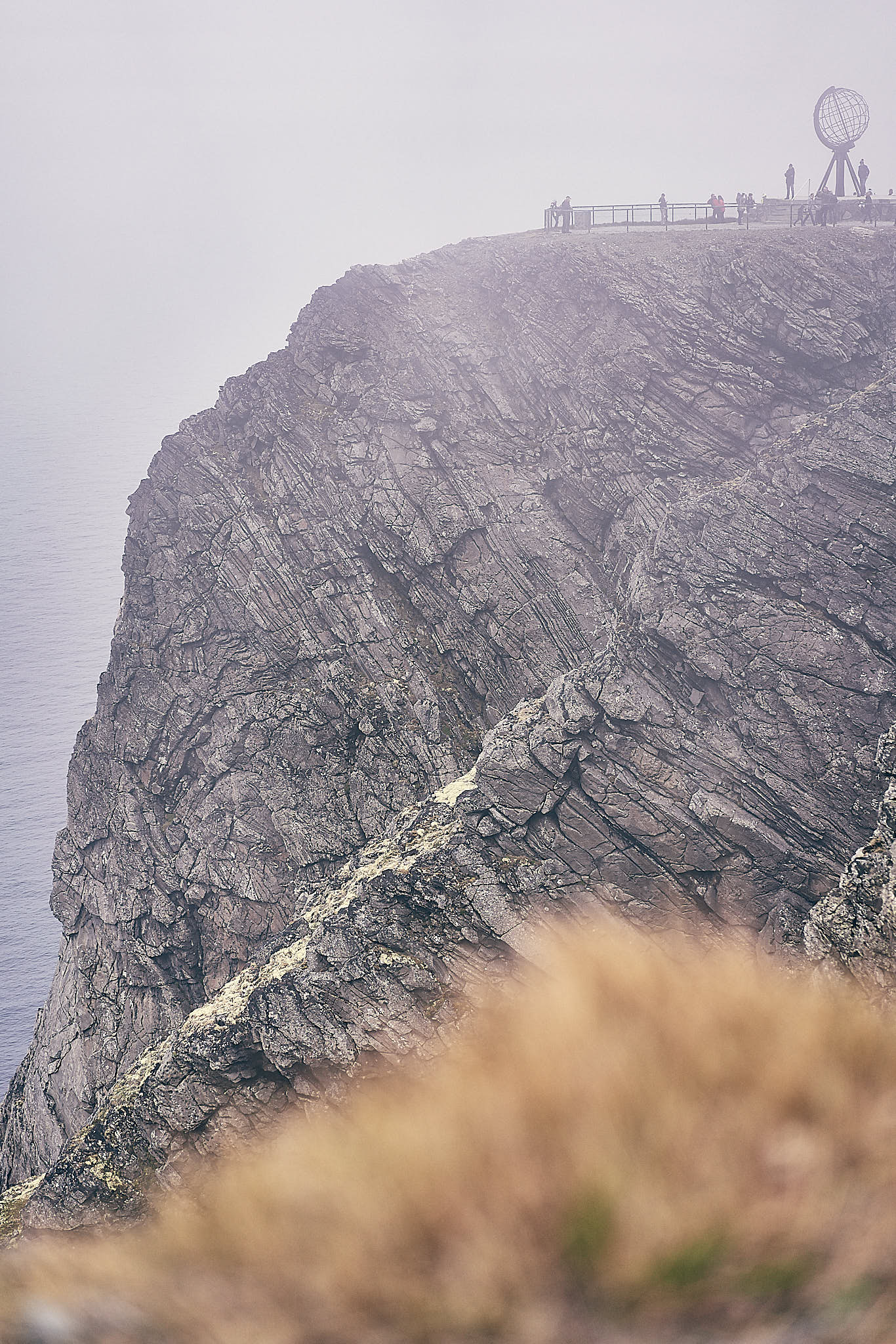 Obwohl ich nun wirklich kein Landschaftsfotograf bin, fand ich die gut 30km lange Anreise durchs Nichts und ein paar Rentiere absolut faszinierend. Gerne hätte ich hin und wieder angehalten, aber dann wären wir wohl nie angekommen. Auf der Strasse sahen wir so gut wie keine Autos oder gar Menschen. Das änderte sich schlagartig, als wir oben den Parkplatz vom Nordkap erreichten. Normalerweise hätten wir dort Eintritt bezahlen müssen, dank unserer netten Reisebegleitung blieb uns das erspart.