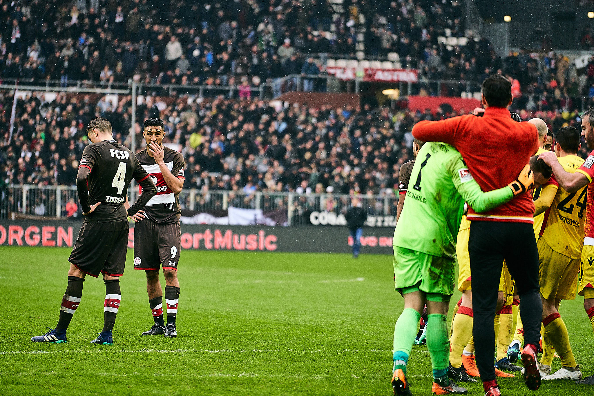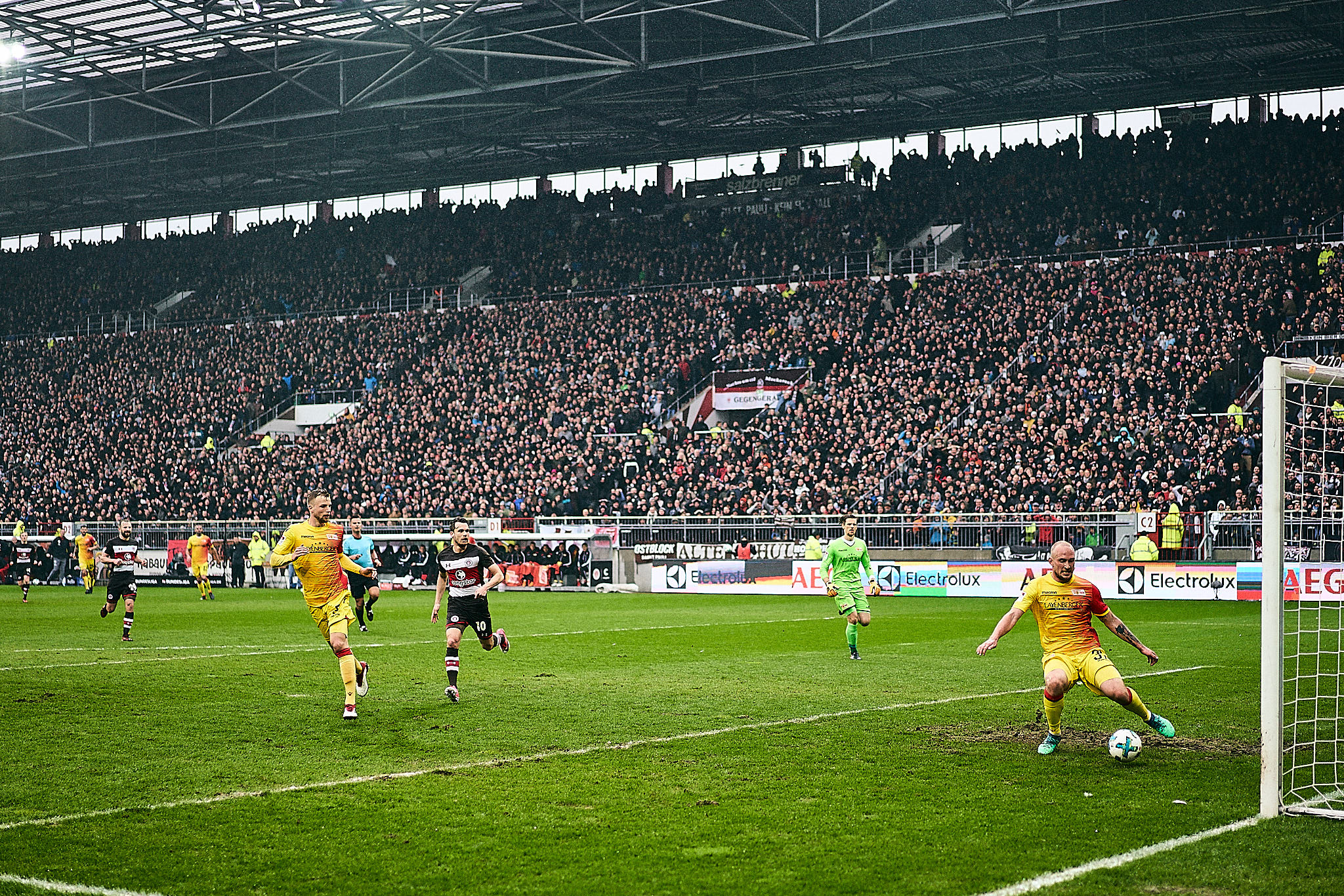 Elanvoller Start, der Mut auf mehr machte, aber leider in Planlosigkeit verpuffte. Eine wirklich gute Chance in Halbzeit eins. Nach der Halbzeit ein gefährlicher Schuss auf die Querlatte von Berlin, der dem FC St. Pauli jeglicher Mut entzog. Verlustängste bahnten sich den Weg in die braun-weißen Beine und da half es auch nichts, dass Berlin ein Spieler verlustig ging. Mit einem Spieler mehr auf dem Feld nicht einen Torschuss hinbekommen. Mit einem Spieler weniger das Glück erzwungen. Letztlich hat Eisern Union verdient gewonnen, denn die Schüsse auf’s Tor waren alle gefährlicher.