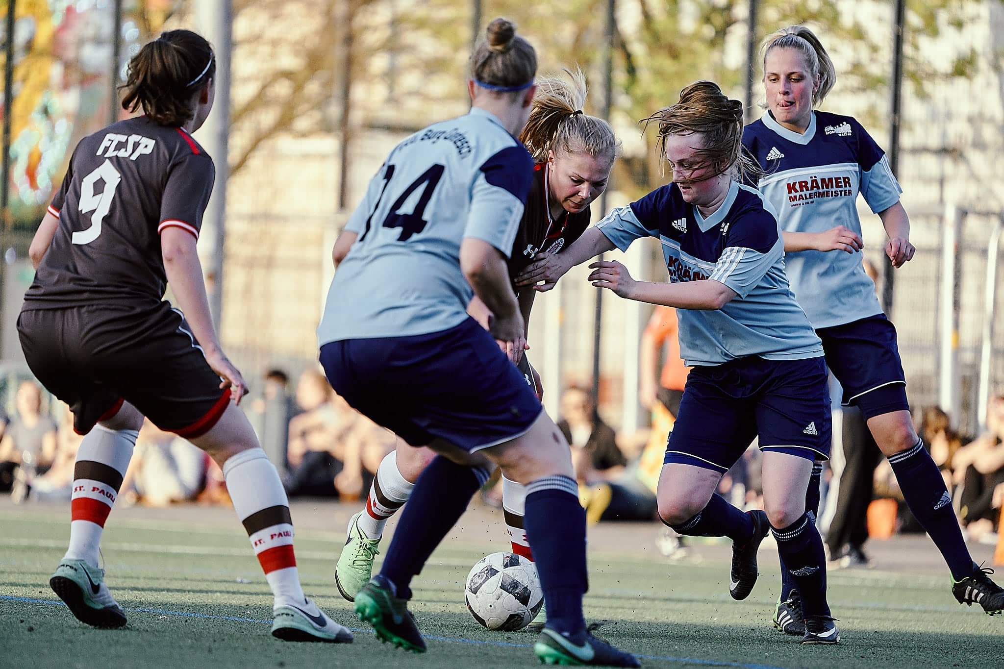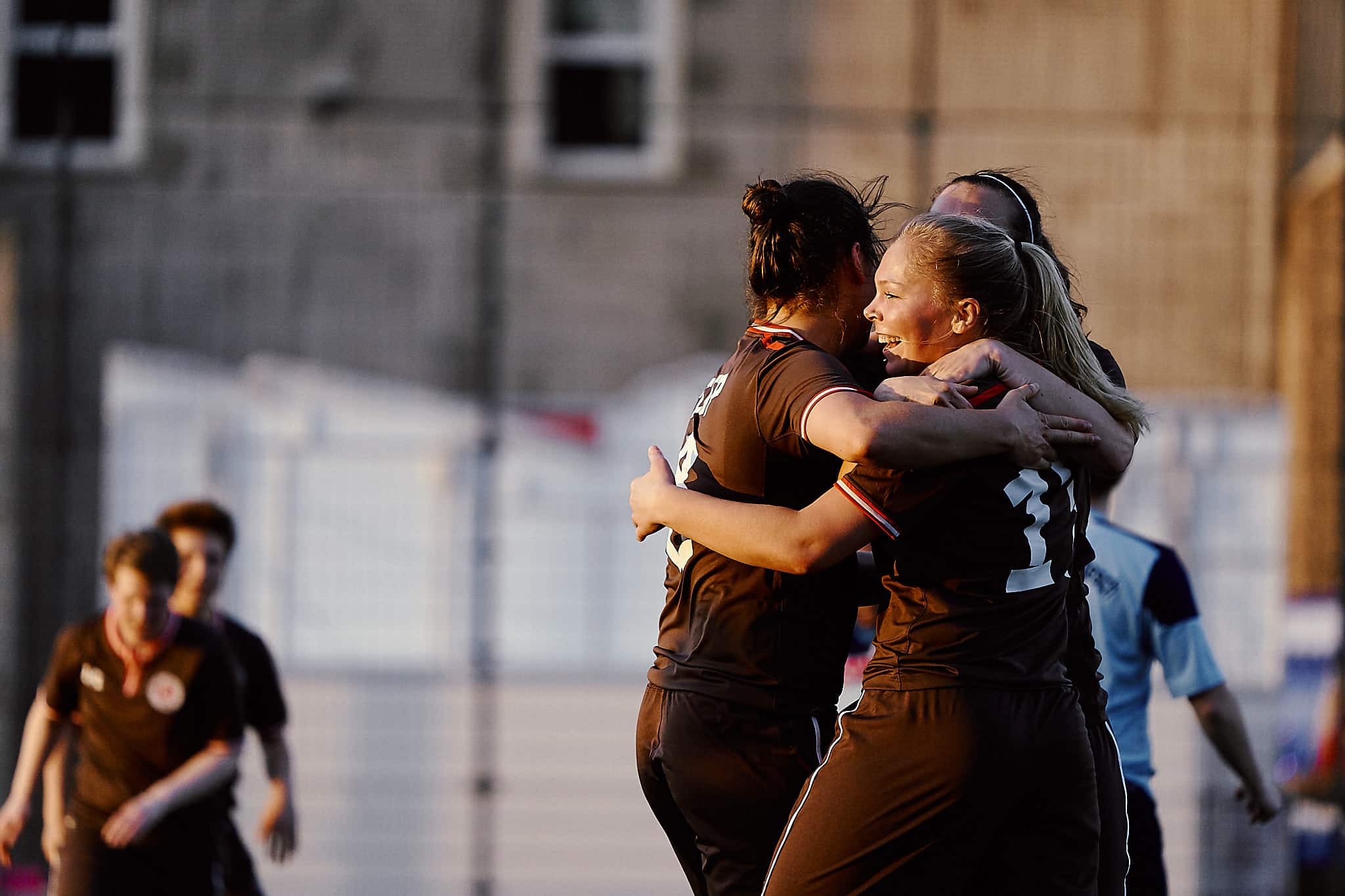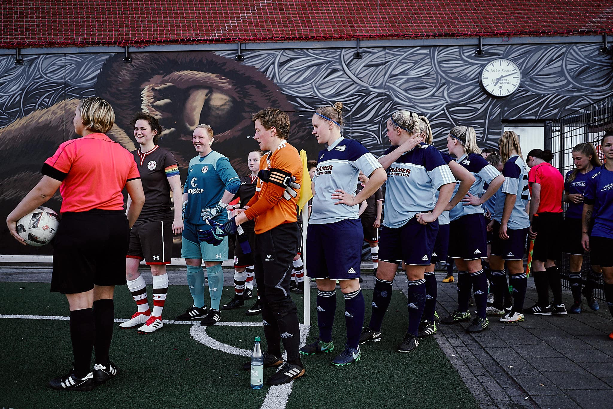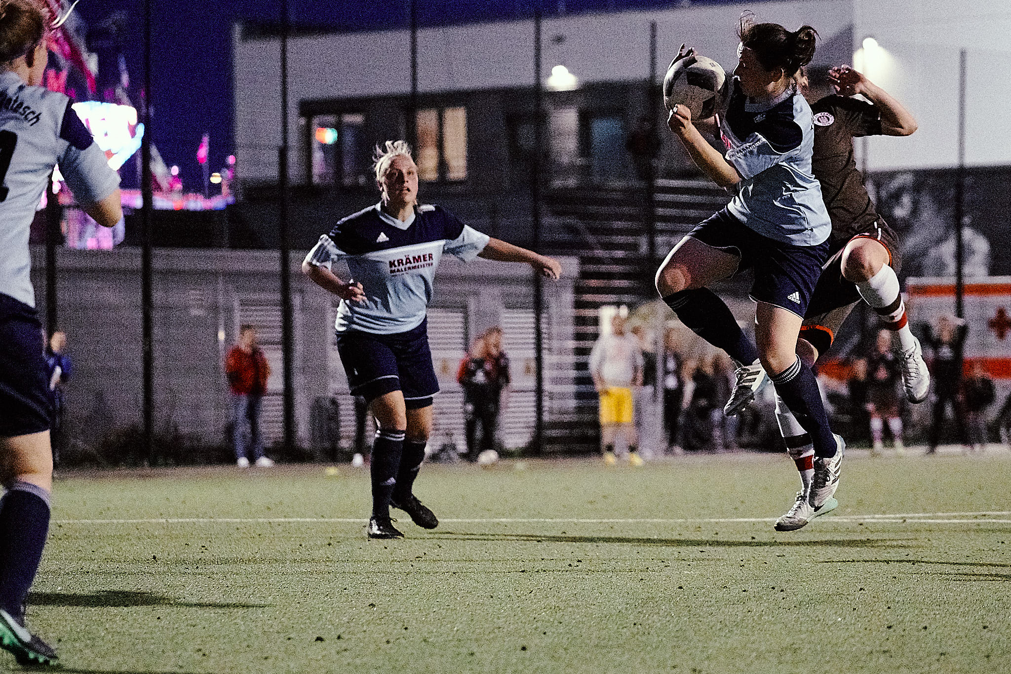 Ersatzgeschwächt gingen die 1. Frauen vom FC St. Pauli ins Nachholspiel gegen Burg Gretesch, legten aber ordentlich los. Oft fehlte es aber an der Präzision beim letzten Pass. Erst nach einer Viertelstunde kam der Gast besser ins Spiel und es entwickelte sich eine ausgeglichene Partie. Mit dem zweiten Schuss aufs Tor kamen die Spielerinnen aus Burg Gretesch nach einer halben Stunde zum Torerfolg. Durchaus überraschend, aber St. Pauli ließ sich nicht aus der Ruhe bringen. Kurz nach dem Führungstreffer konnte Linda Sellami mülleresk den Ausgleich erzielen. Die Frauen in braun und weiß versuchten noch vor der Pause nachzulegen, aber irgendwie fehlte an dem Abend das Abschlussglück.