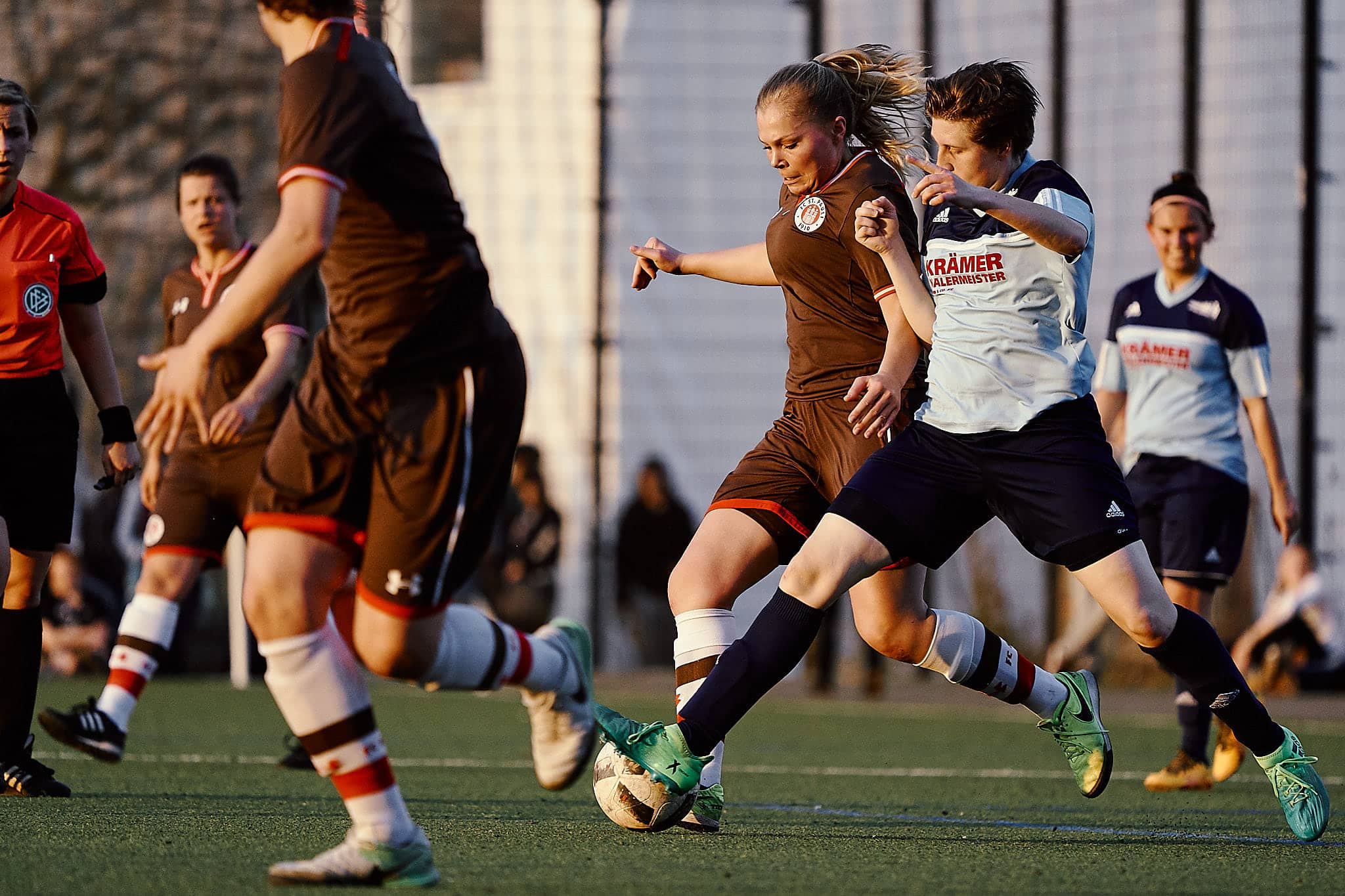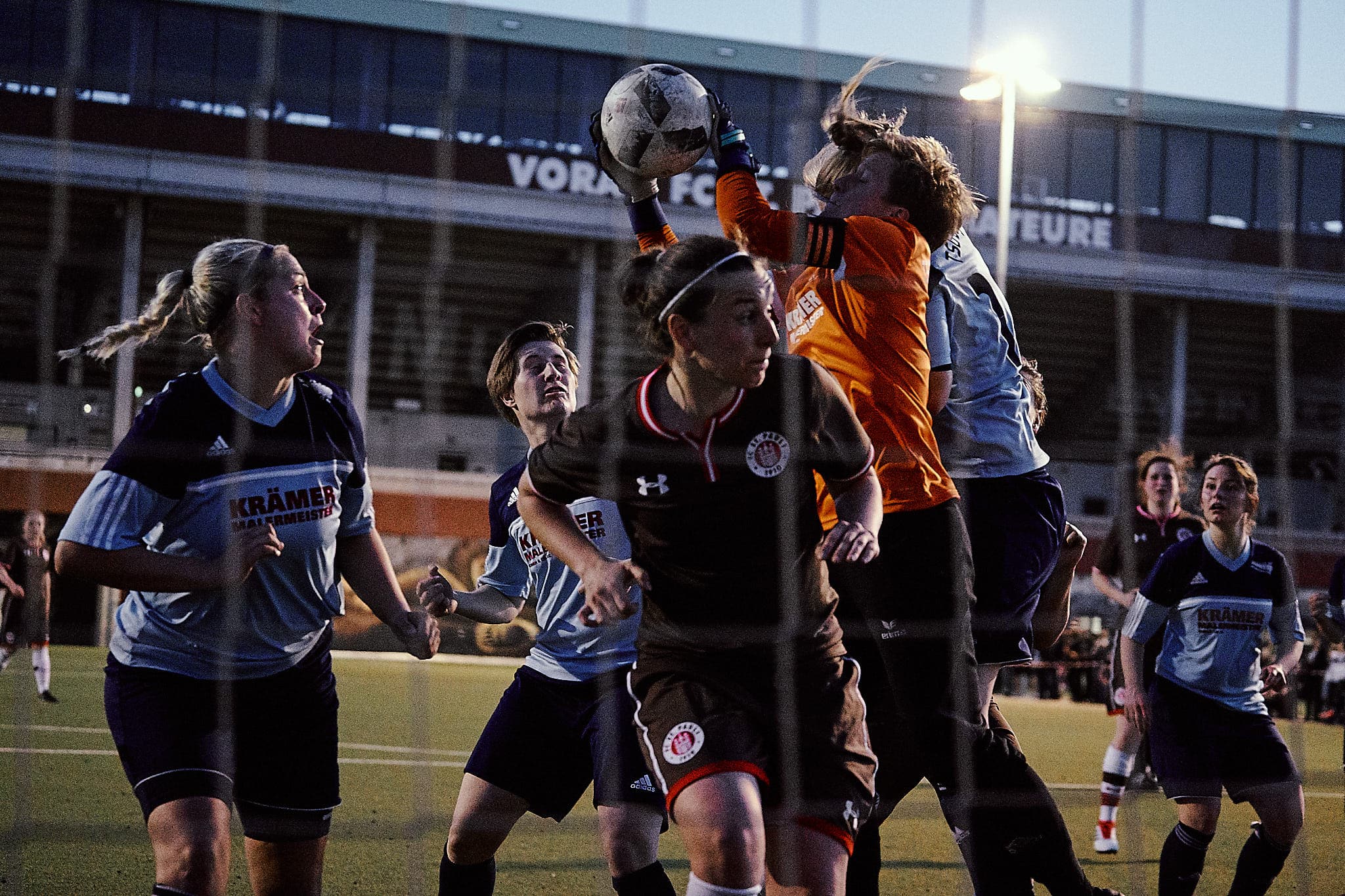 Zweite Halbzeit, gleiches Bild: die einen spielen sich Chancen heraus, die anderen treffen. FC St. Pauli wirft noch mal alles nach vorne, aber irgendein Abwehrbein ist immer dazwischen oder die gute Torhüterin der Gäste pariert.
