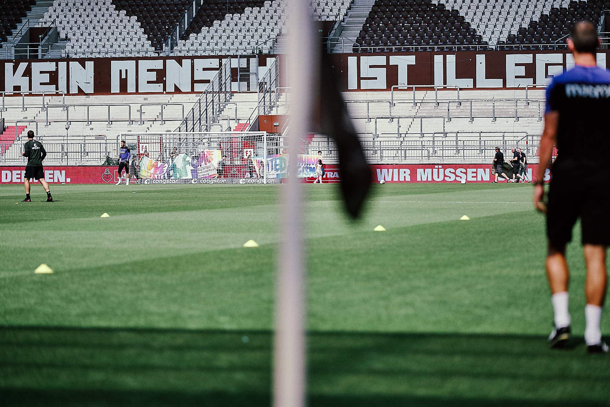 Das Wichtigste vor dem Spiel war der Hinweise auf die antirassistische Parade in Hamburg „We’ll come united“ am 29. September – am Besten jetzt schon mal im Kalender notieren.
