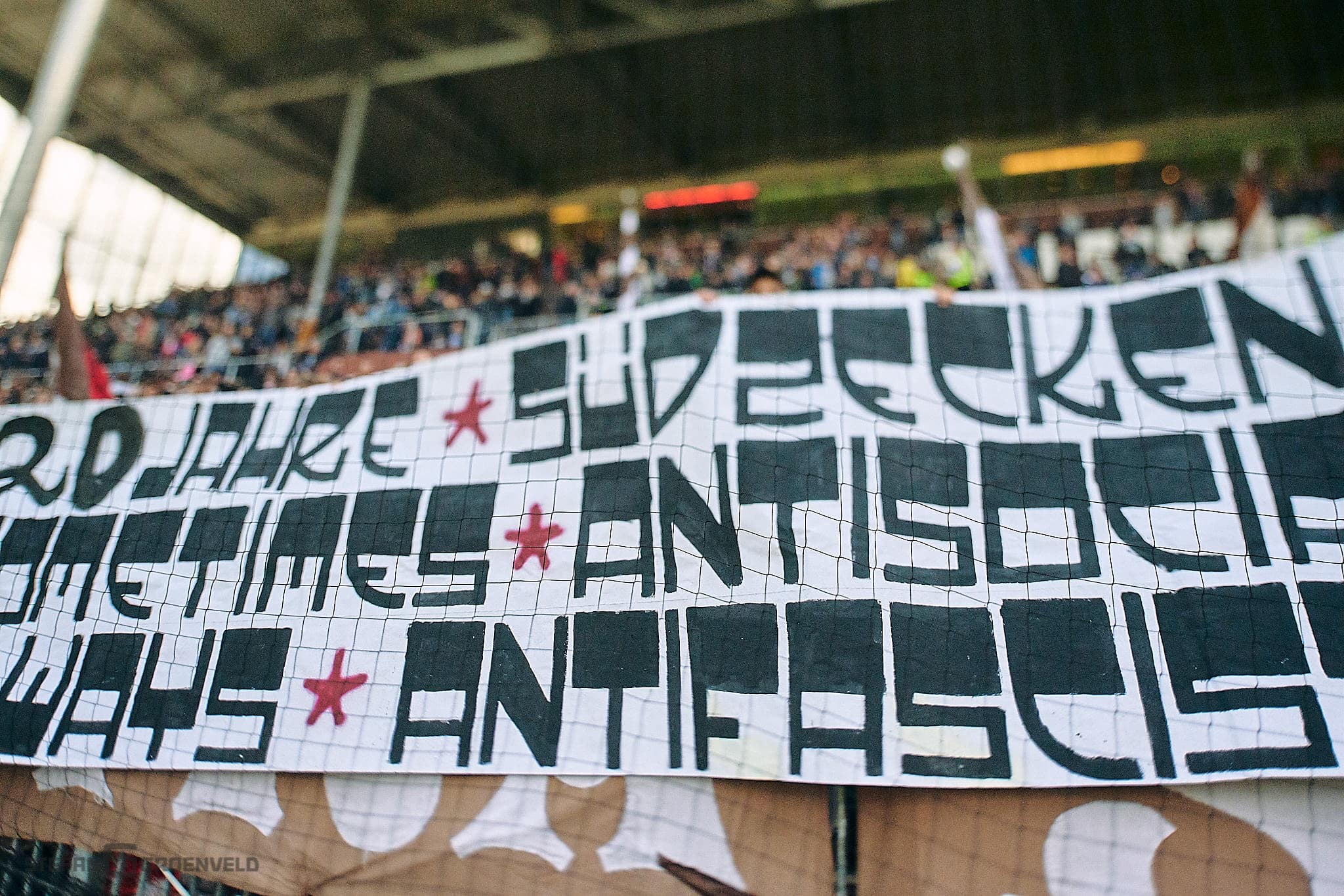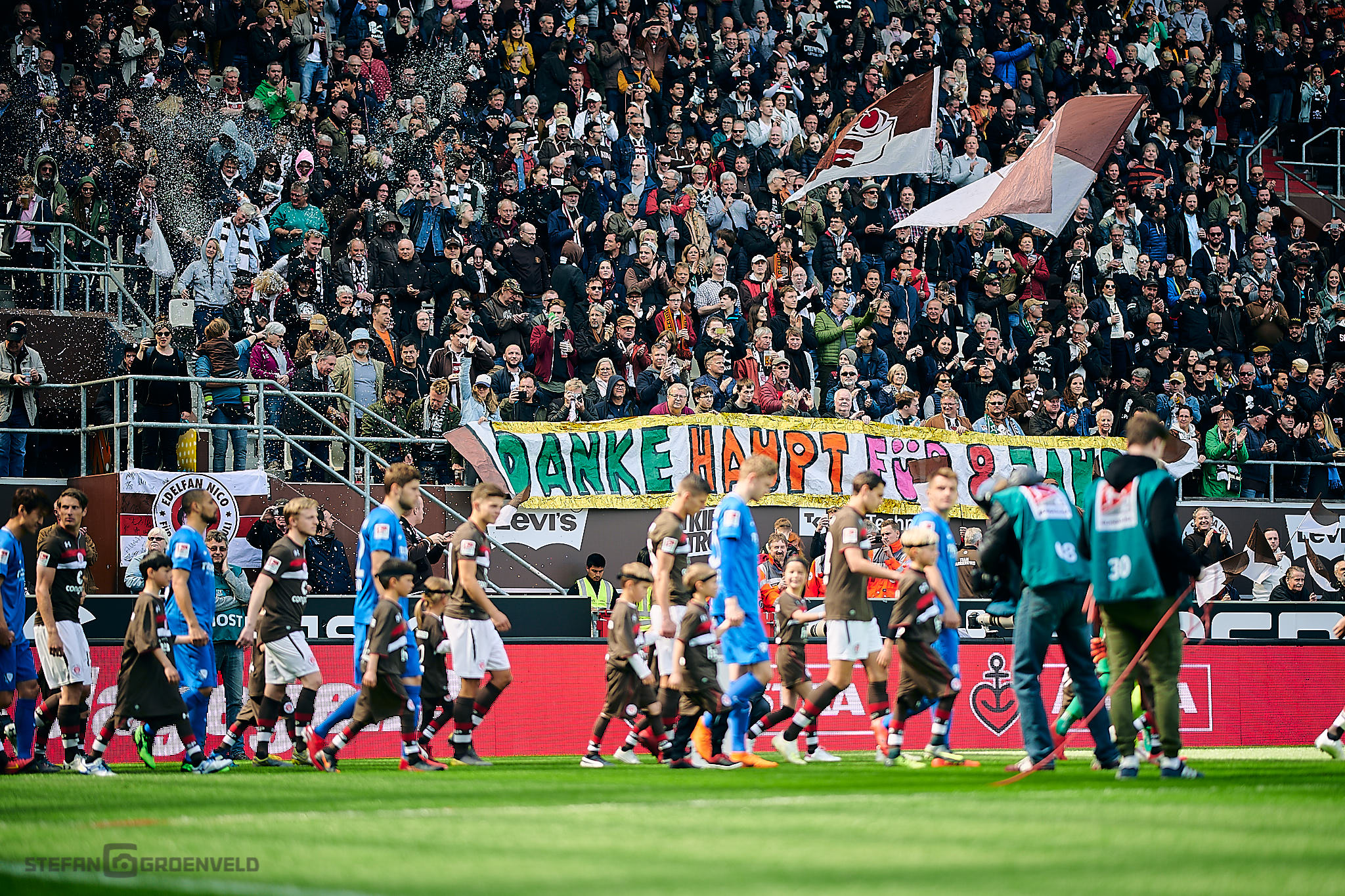 Das letzte Heimspiel der Saison ist am Millerntor eigentlich immer ein schöner Anlass die Sommerpause einzuleiten. Diesmal war es irgendwie anders. Keine Transpis bei der Verabschiedung der Spieler, kein Spruchband der Spieler am Ende des Spiels, keine letzte Choreo. Ein belangloser Saisonabschied. Offensichtlich gibt es auf beiden Seiten Unzufriedenheit mit dem Ende dieser Spielzeit. Der Beginn war ja lange Zeit mit großer Freude durch eine braun-weiße Brille zu begutachten.