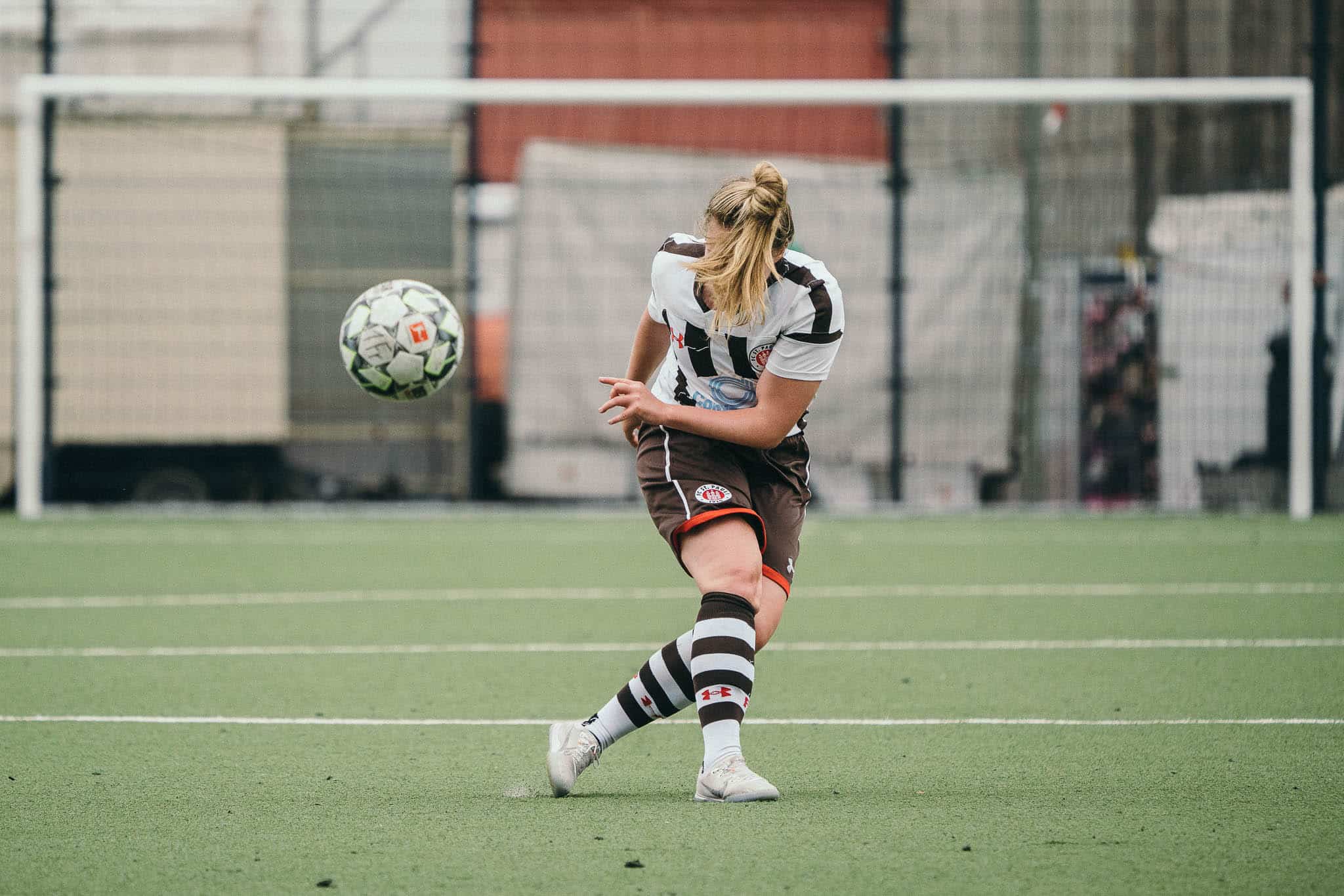 Allerdings musste die Torfrau von SV HU erst in der 80. Minute das erste Mal retten: AnSo Greifenberg hatte von der Strafraumgrenze abgezogen. In der 87. klingelte es dann doch im Kasten – Julia Pastorek stand im Strafraum ziemlich allein und konnte unbedrängt einen Kopfball ins lange Eck platzieren. Der Treffer für den FC St. Pauli war wichtig für die Moral, aber nicht mehr für das Spiel. Zu dem Zeitpunkt führte Henstedt-Ulzburg schon mit 7 Toren verdient. Und Tara Zimmermann zwischen den Pfosten und auch der Pfosten selbst bewahrte die St. Paulianerinnen vor noch mehr Gegentreffern.