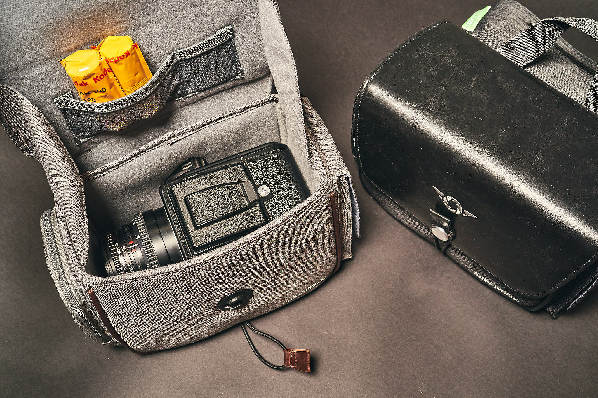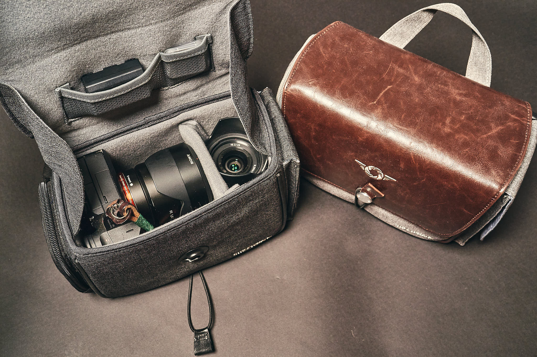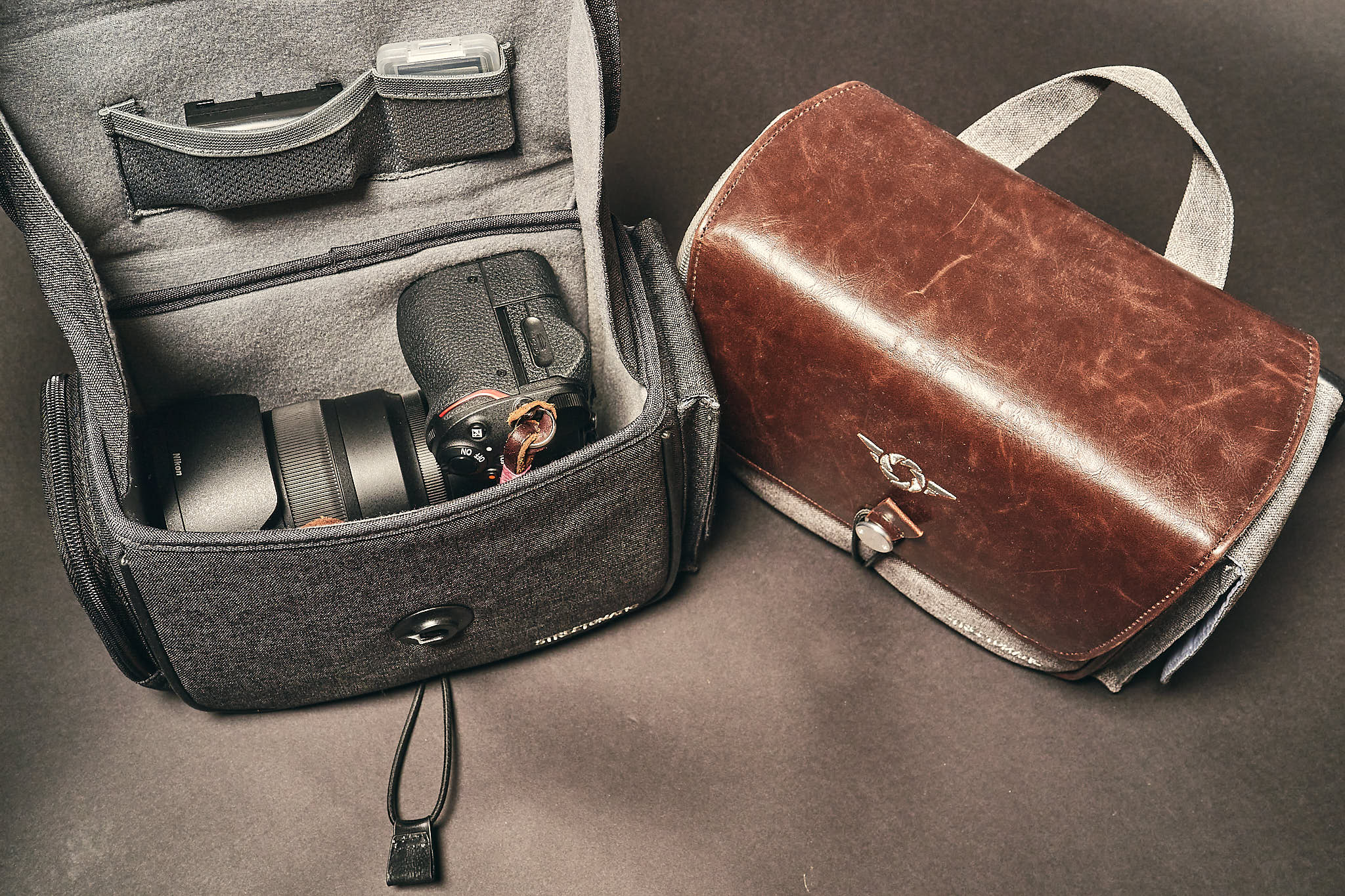 Innen hat die Streetomatic+ Platz für eine Systemkamera mit Objektiv. Je nach verwendetem System passt oft auch noch ein Wechselobjektiv mit rein. Flexibel einsetzbare Trenner werden mitgeliefert. Dazu passt in das Netz des Deckels noch ein zweiter Akku oder eine Filmdose rein. Weiterhin gibt es noch zwei Taschen aussen: eine zum Beispiel fürs Smartphone und eine für’s Portemonnaie.