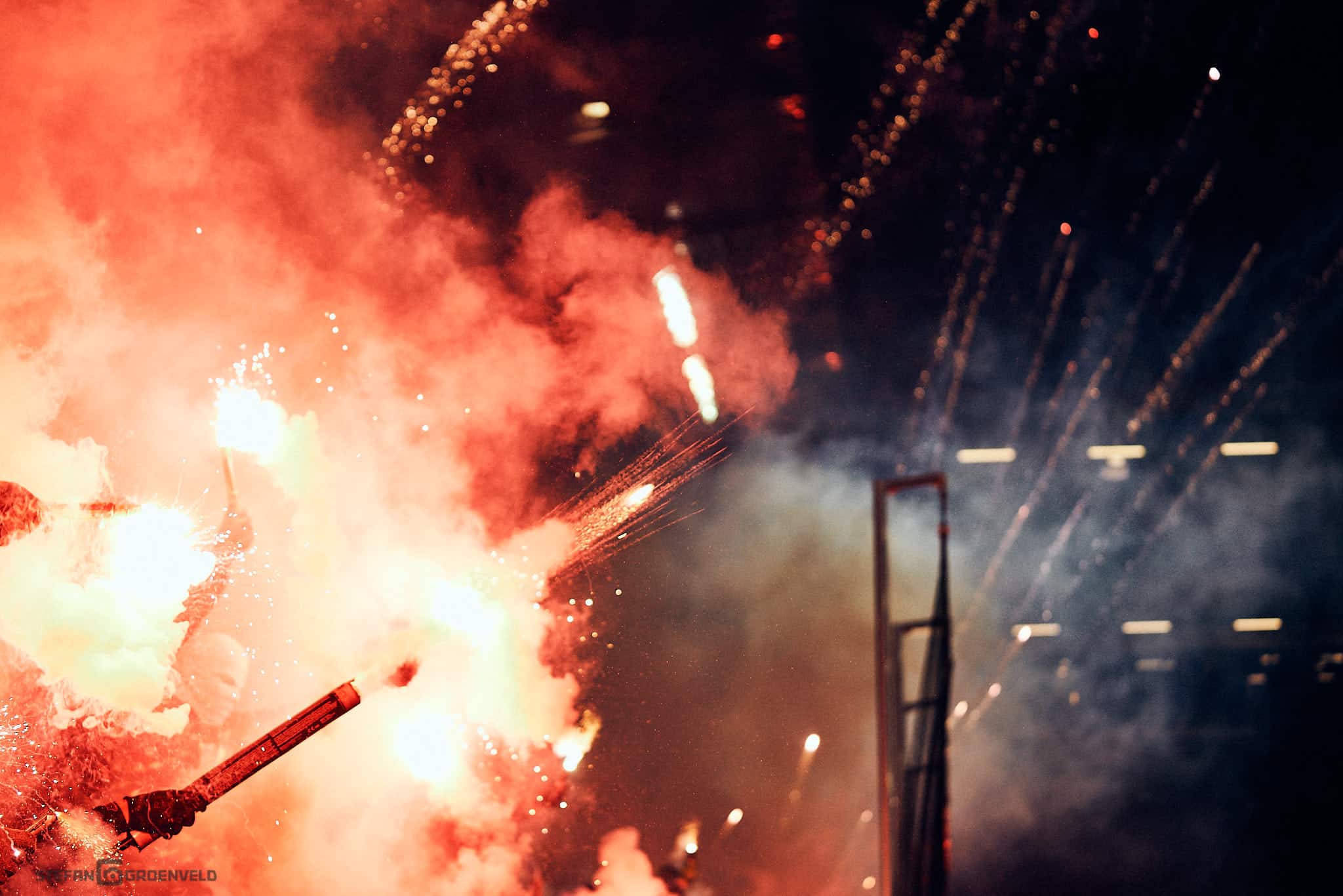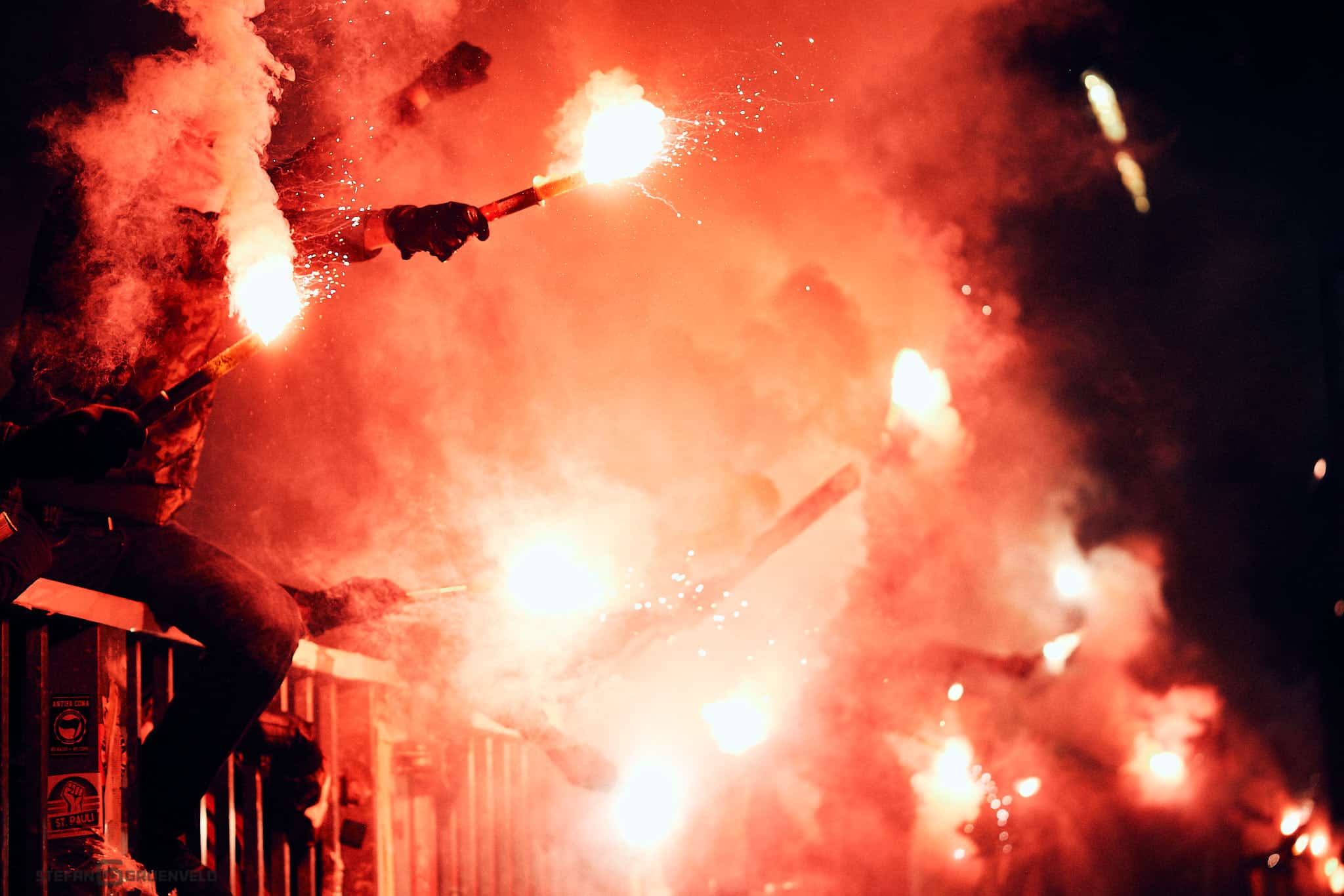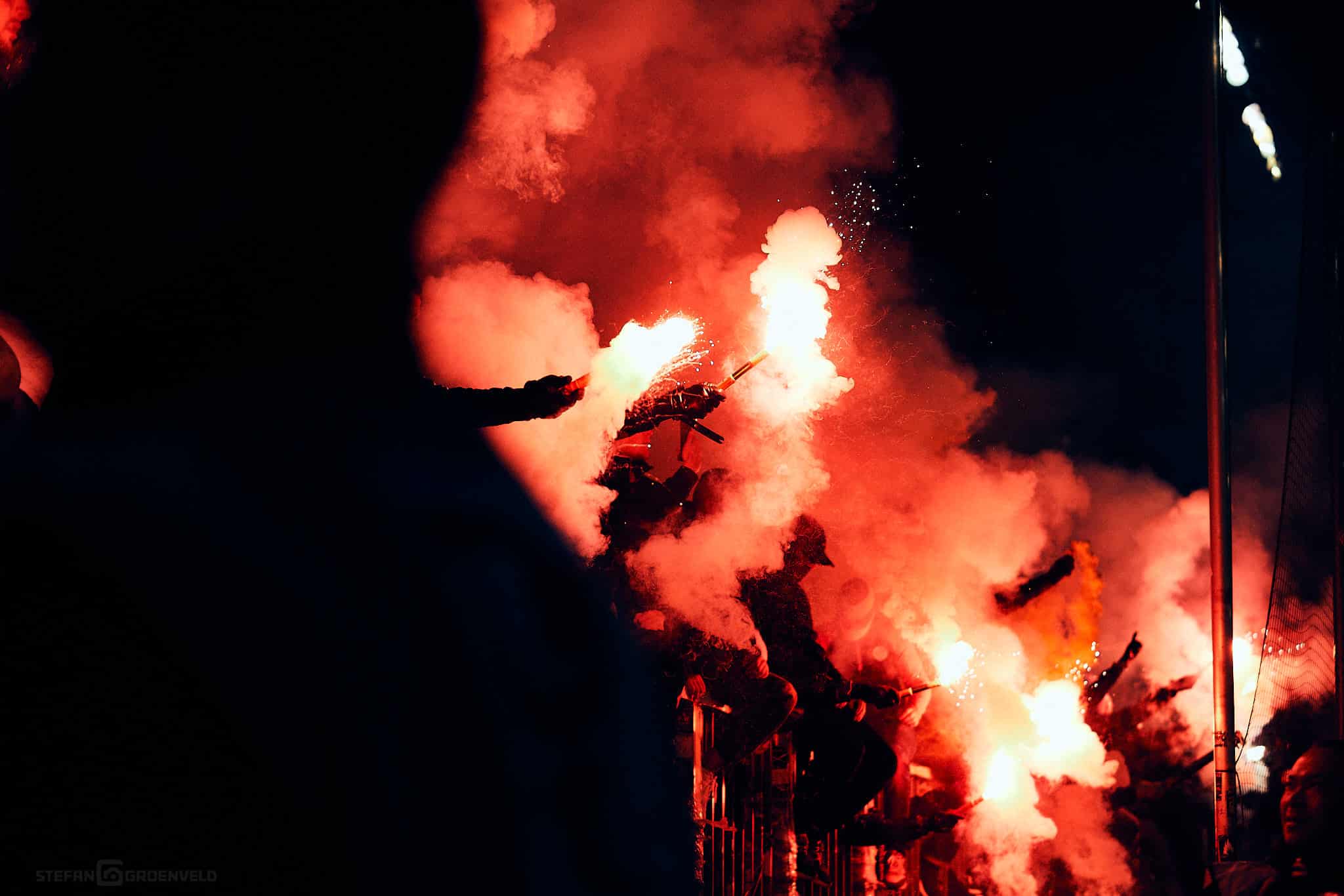 Schön auch der neue Zusammenhalt zwischen Gegengerade und Süd. Als am Ende der Pause klar war, dass gleich Pyrotechnik zum Einsatz kommt, wollten ein paar wenige auf der Gegengerade das nicht gut finden. Sie wurden sofort begrüssenswert überstimmt. So kontrolliert mit Löschsand und Feuerwehr in Reichweite ist Pyrotechnik nun wirklich kein Verbrechen.
