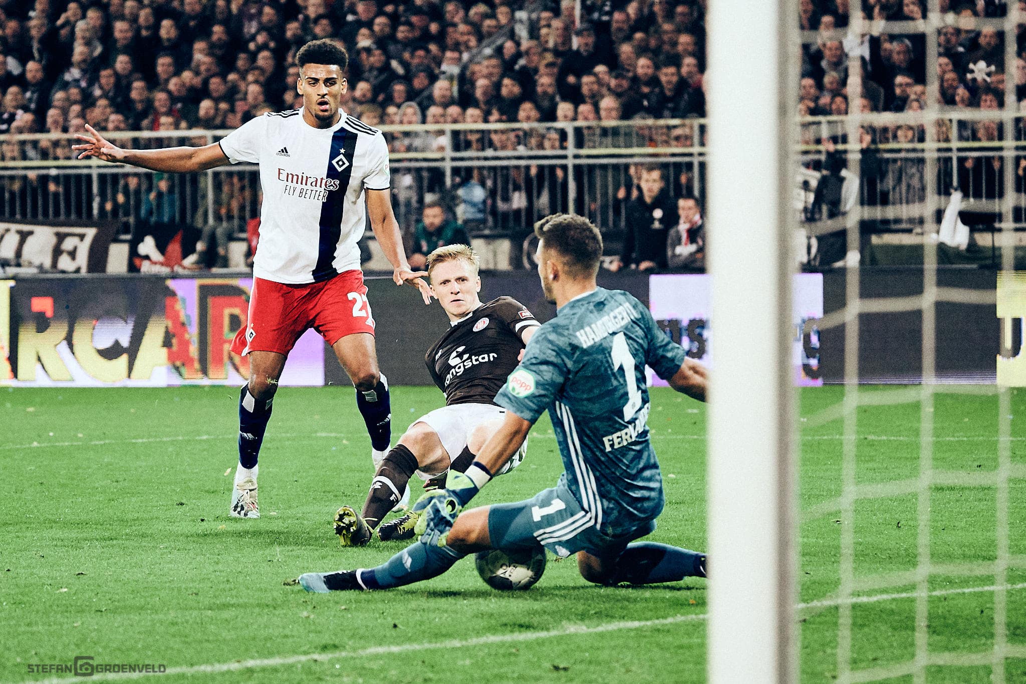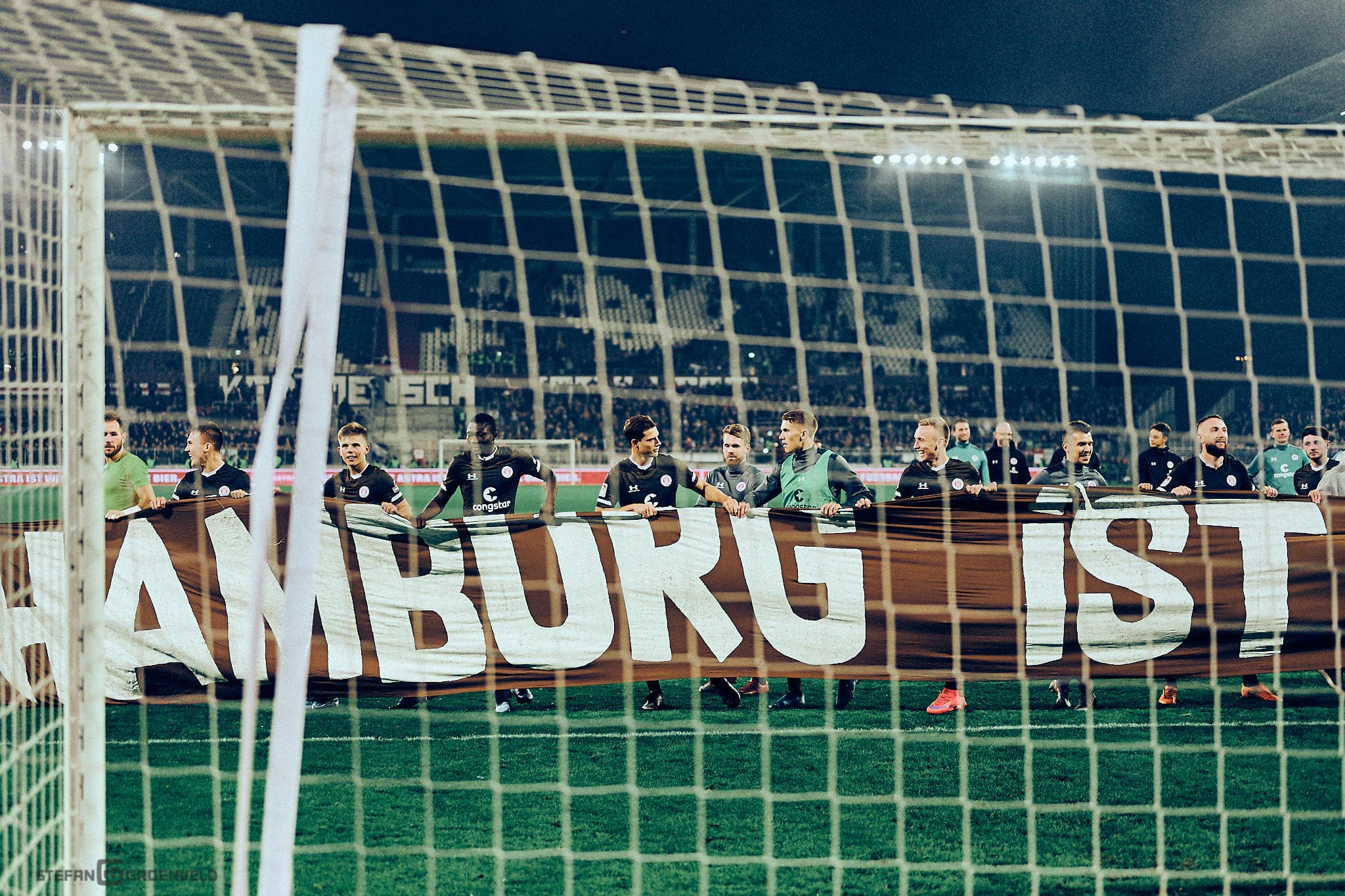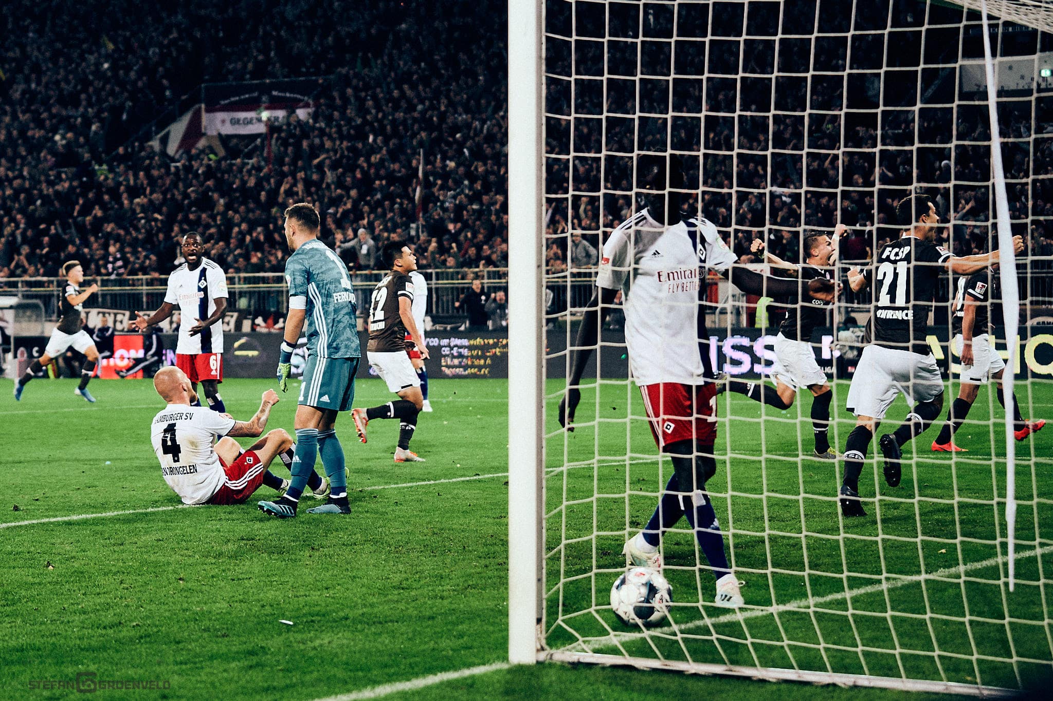 Mein klarer Fotofavorit: Das Foto vom Eigentor. Weil da die 6er-hsv-Raute so herzlich entsetzt drein schaut, während einer der unsrigen Spieler seinen Kopf mit einem völlig entzückt jubelnden Gesichtsausdruck genau in den Maschen des Tornetzes zeigt.