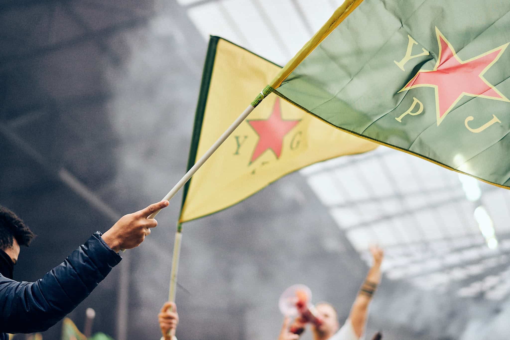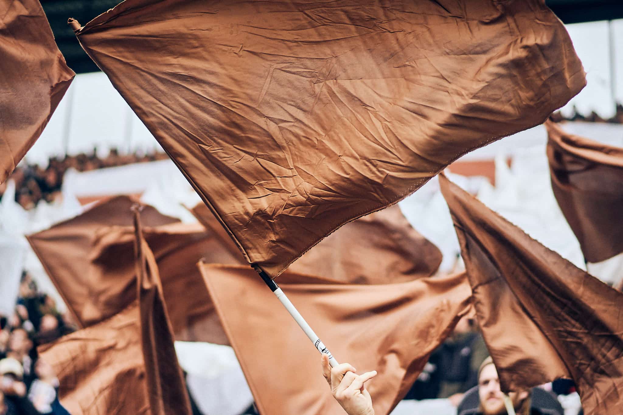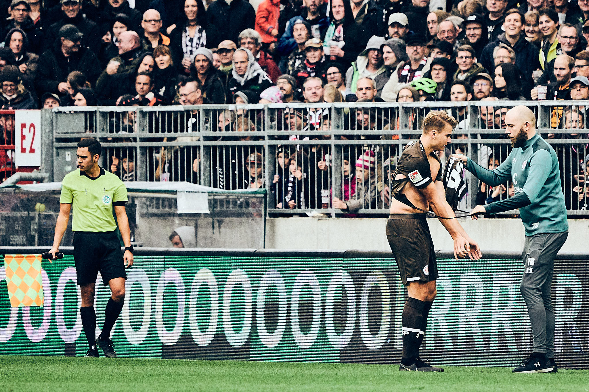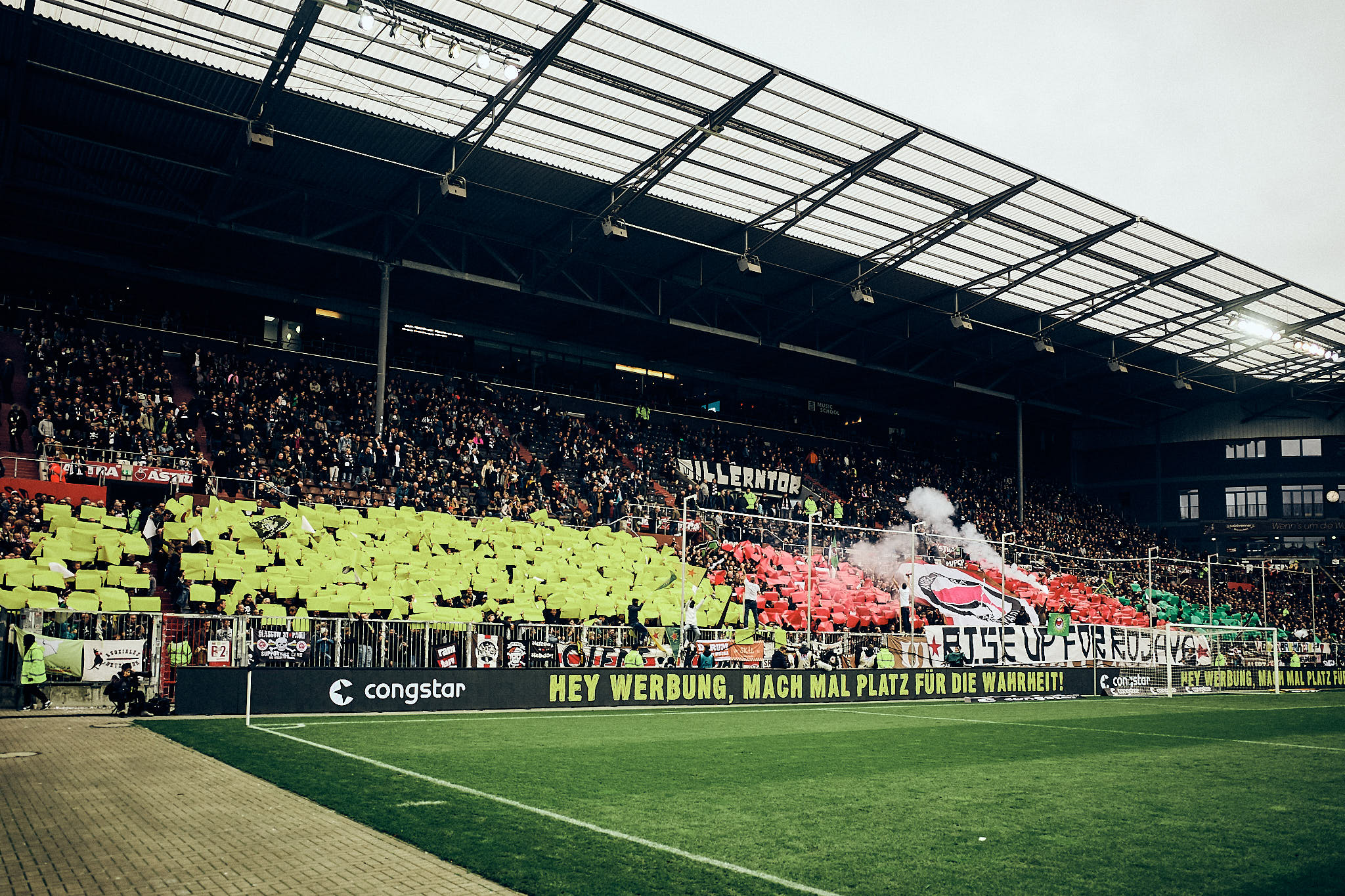 Ansonsten: schöne Choreo auf der Nord zum 11-jährigen Bestehen des Nordsupports, 20 Jahre Babelsberg lässt blau-weiß-schwarze Farben auf der Süd erscheinen, Niveaulosigkeit auf der Haupt, Schiedsrichter mit Schnürproblemen und Sankt Pauli Spieler mit Trikotproblemen. Aber toller Unterstützung für die zum Spielball der Kriegstreiber der Welt gewordenen Kurden – ich hätte bei den Choreos im Stadion gerne Cenk Sahins Gesicht fotografiert. Und das alles nun in Bildern.