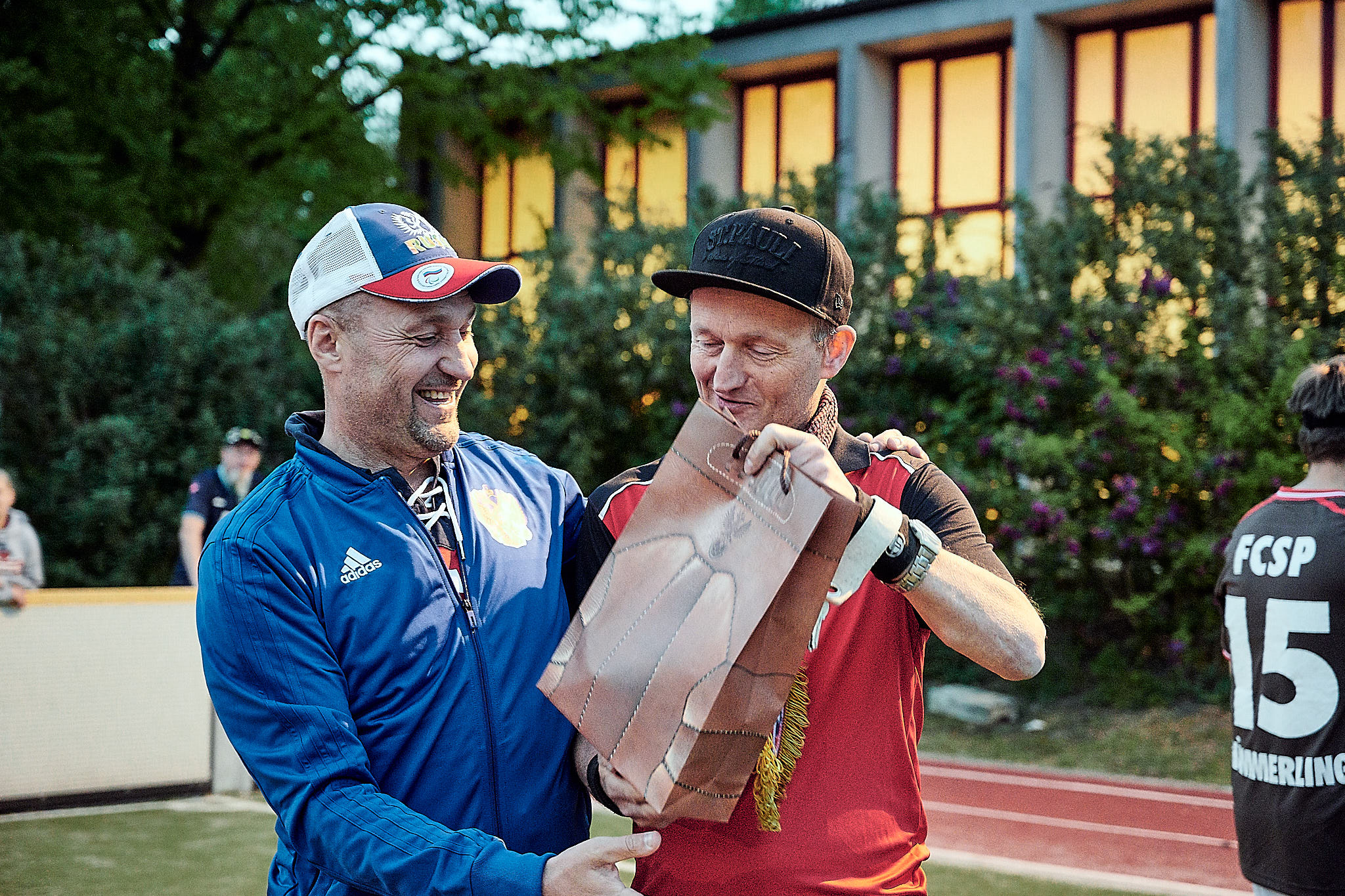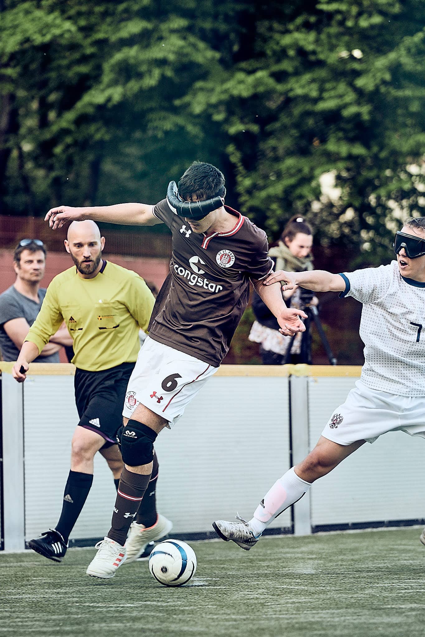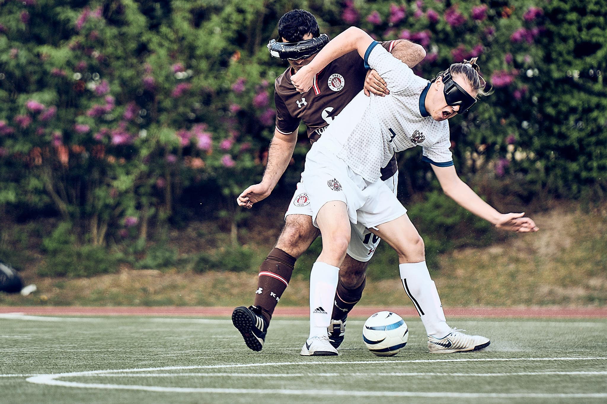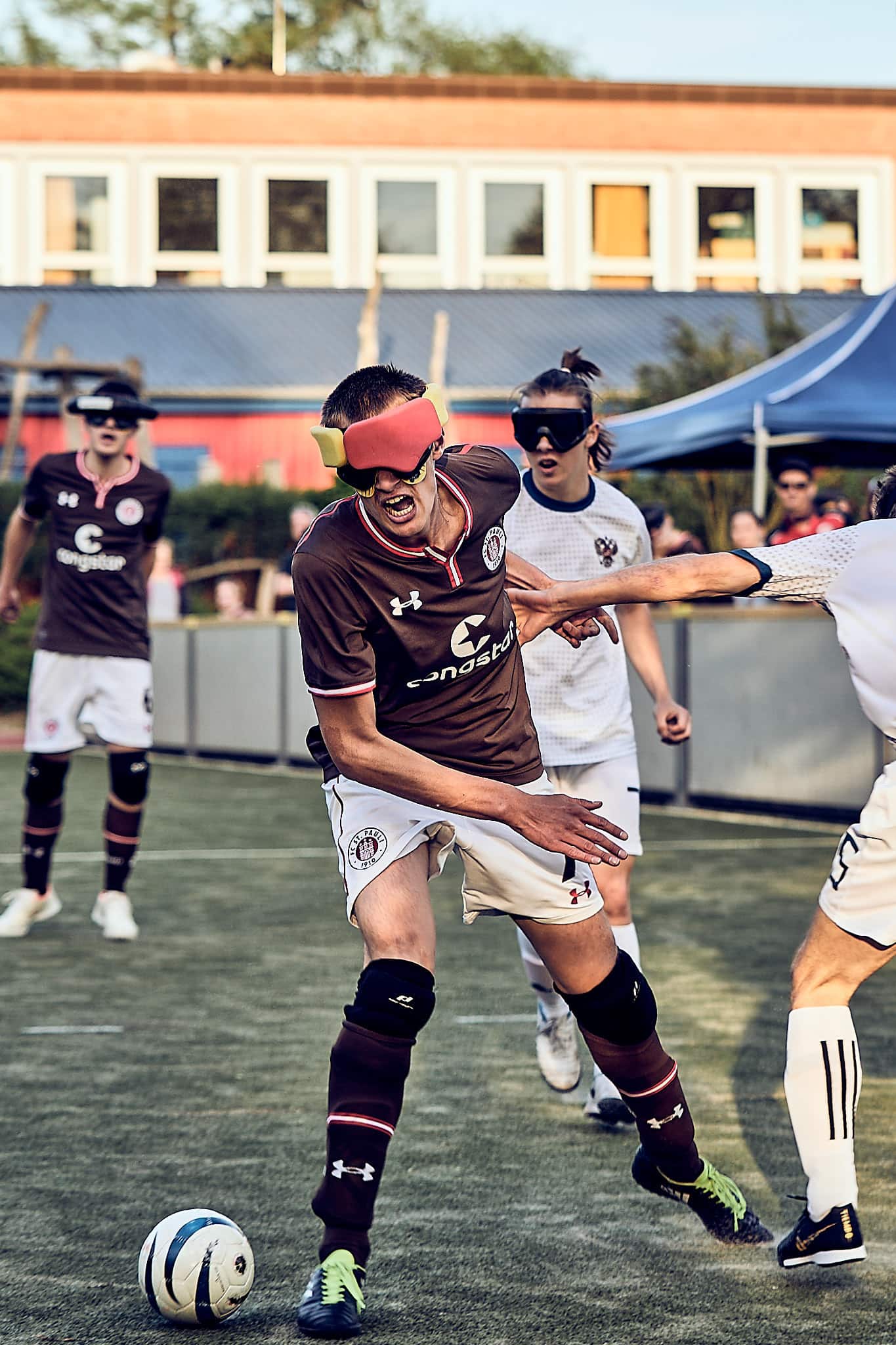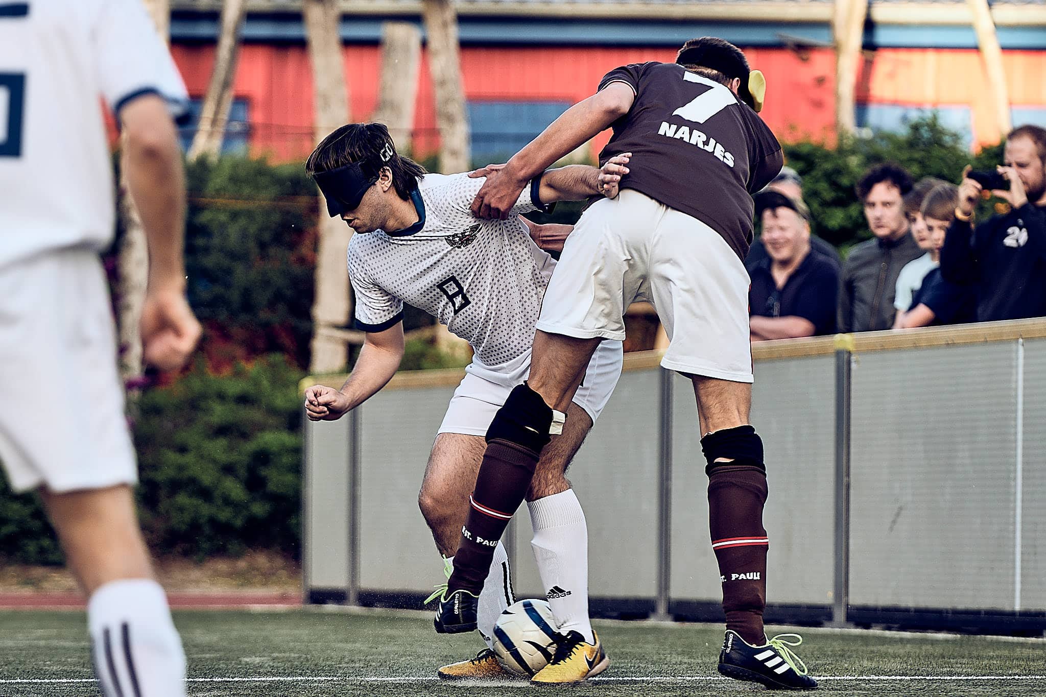 Gestern Abend um 19:10 Uhr traf der amtierende deutsche Vizemeister gegen den aktuellen Europameister zum Freundschafts- und Vorbereitungsspiel zur neuen Bundesliga-Saison bzw. zur Europameisterschaft. FC St. Pauli spielt also gegen die russische Nationalmannschaft. Glücklicherweise fanden das auch viele Zuschauerinnen interessant und kamen vorbei. Was sie zu sehen bekamen, war ein packendes Freundschaftsspiel und eine echte Werbung für den Blindenfussball. Zurecht gab es oft Szenenapplaus, was beweist, dass viele das erste Mal da waren.