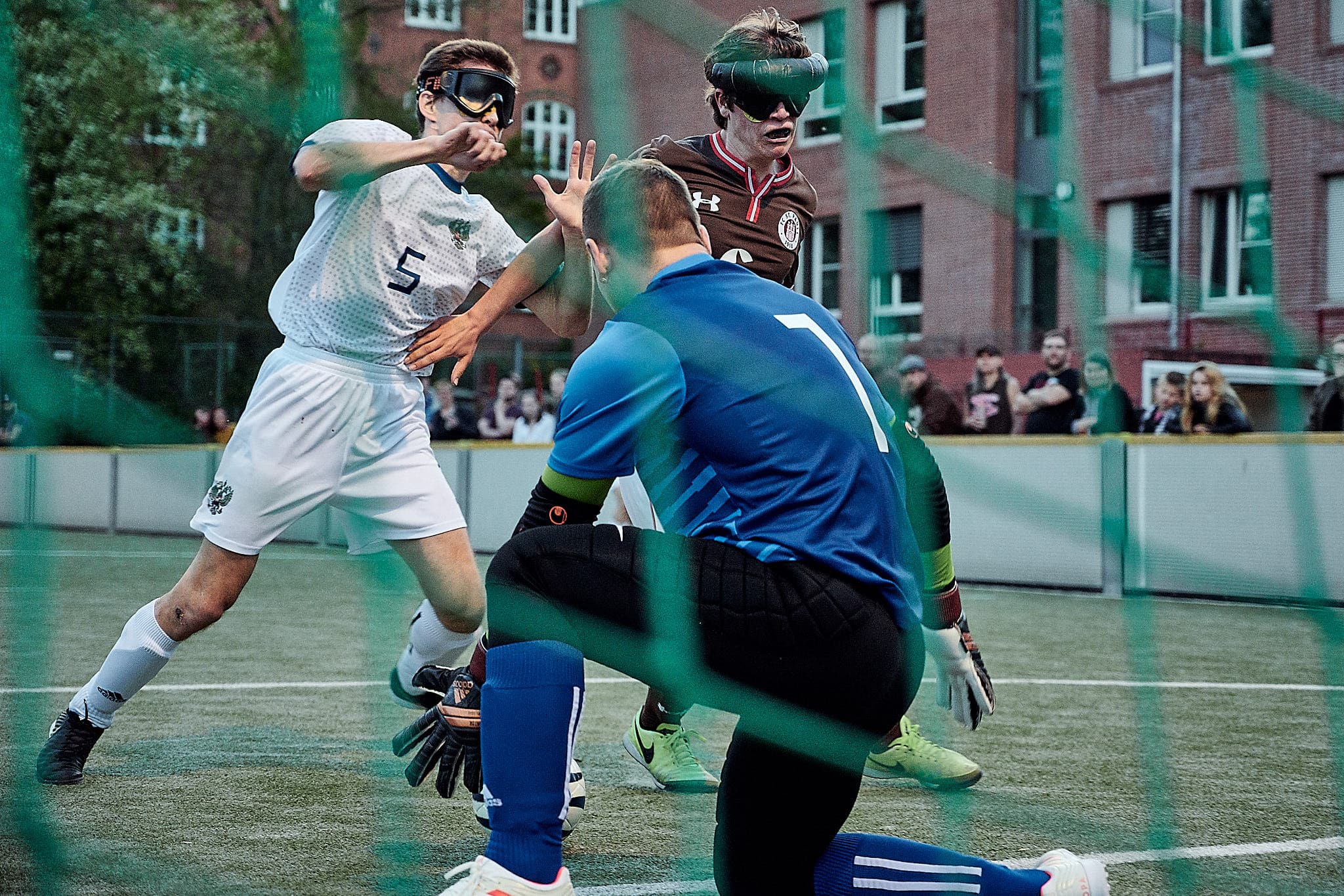 Schließlich ist Blindenfussball ein Sport bei dem es sehr auf das Gehör der Spielerinnen und Spieler ankommt. Hören, wo der Ball ist; hören, was der Gegenspieler macht; hören, was die Mitspieler sagen; hören, was die Guides rufen. Und das alles in hohem Tempo. Da sind Anfeuerung eigentlich nur in Pausen sinnvoll. Es ist ein wunderbares Zeichen für den Sport und die Darbietung der Sportler, die gestern auf dem Platz standen, dass die Zuschauerinnen ihre Finger und Stimmen nicht still halten konnten.