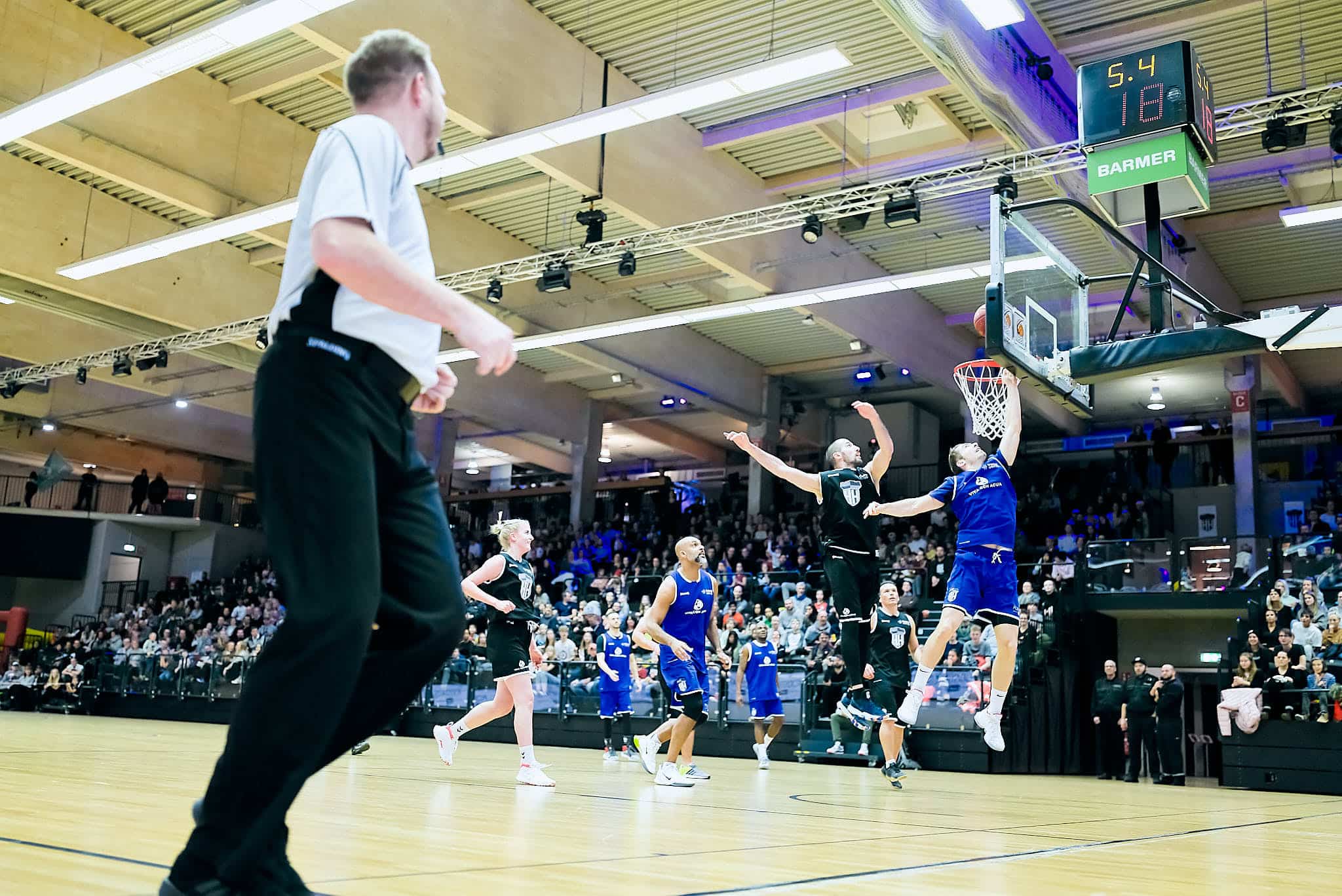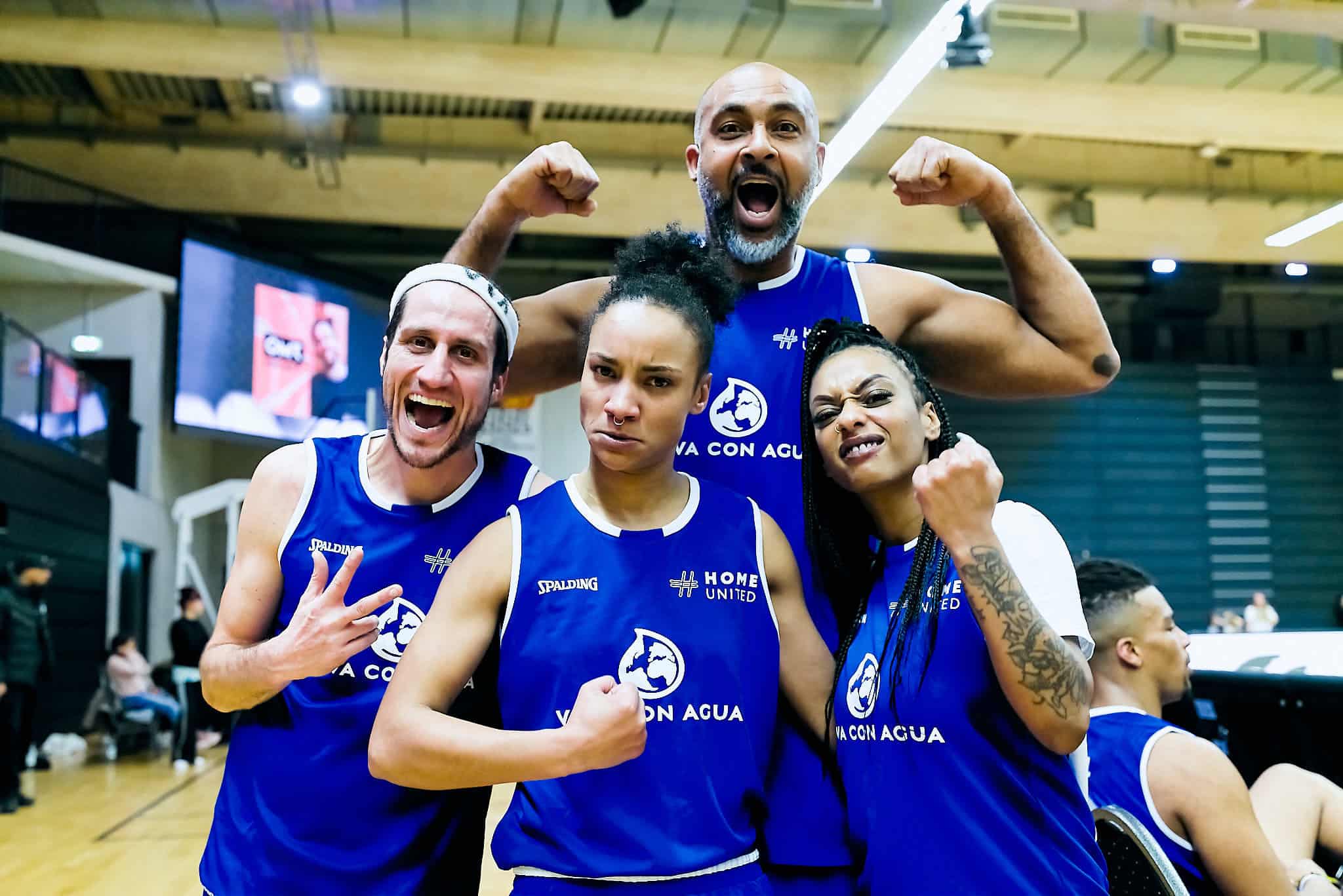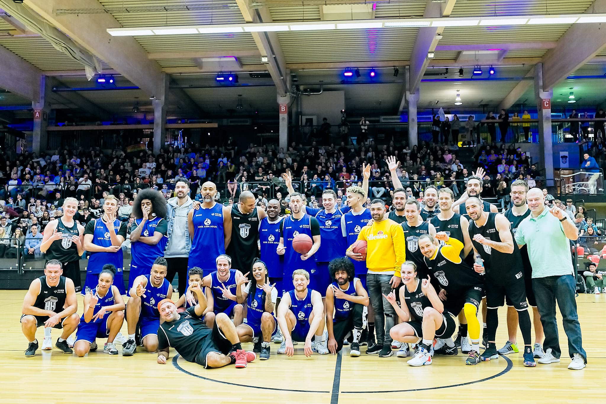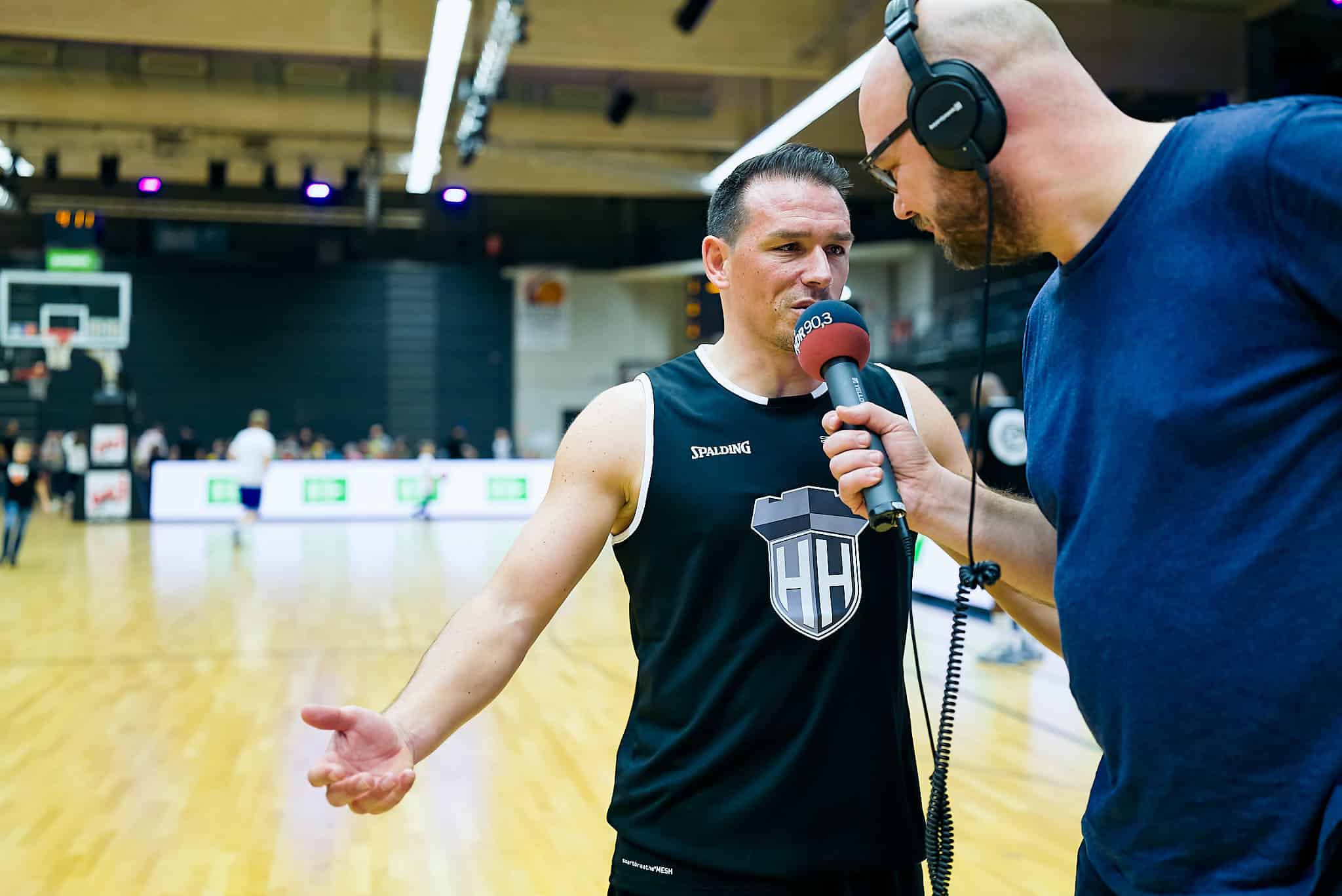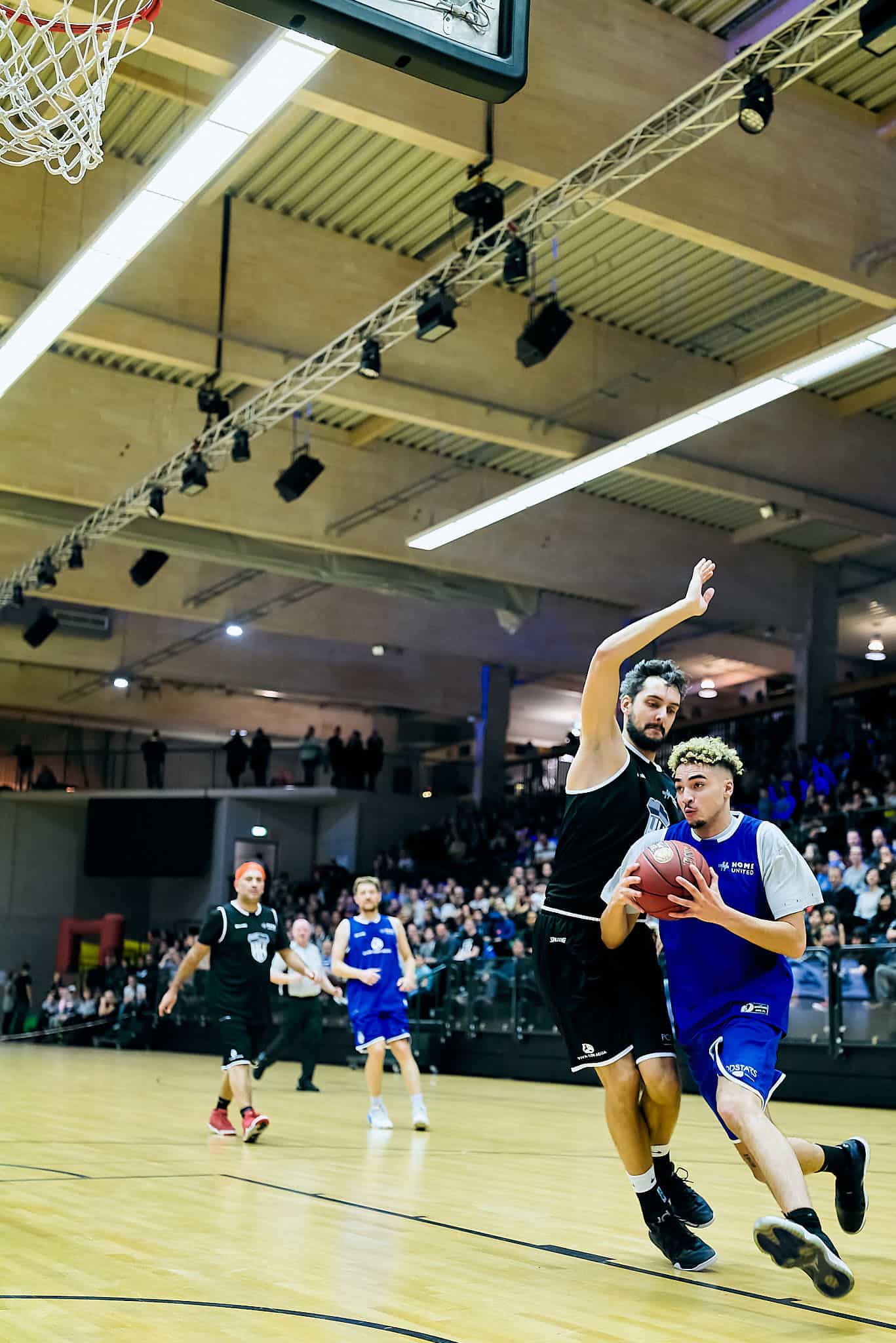 Nein, in der Überschrift ist kein Tippfehler. Es ist nur der sehr offensichtliche Hinweis auf die Sportart der heutigen Bilder. Schon zum zweiten Mal fand in der Wilhelmsburger Inselhalle ein Basketball-Spiel für den guten Zweck statt. Die Viva con Agua Allstars versuchten ihr Glück gegen die Hamburg Towers & Friends. Damit das Duell nicht zu ungleich wurde, spielten in beiden Teams Menschen, die was vom Basketballspiel verstehen. So verstärkte zum Beispiel der frühere deutsche Nationalmannschaftskapitän Ademola Okulaja das Team von VcA.