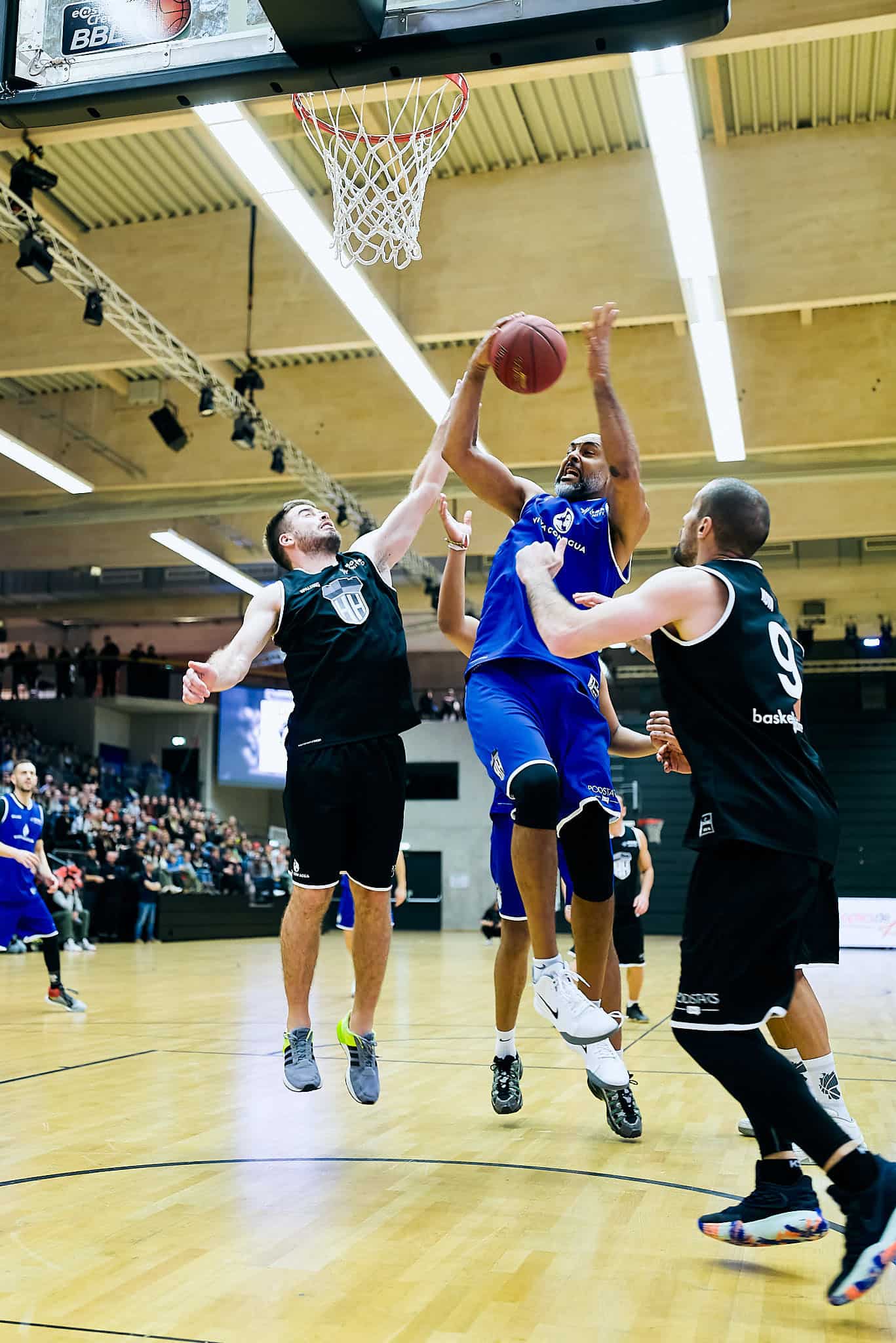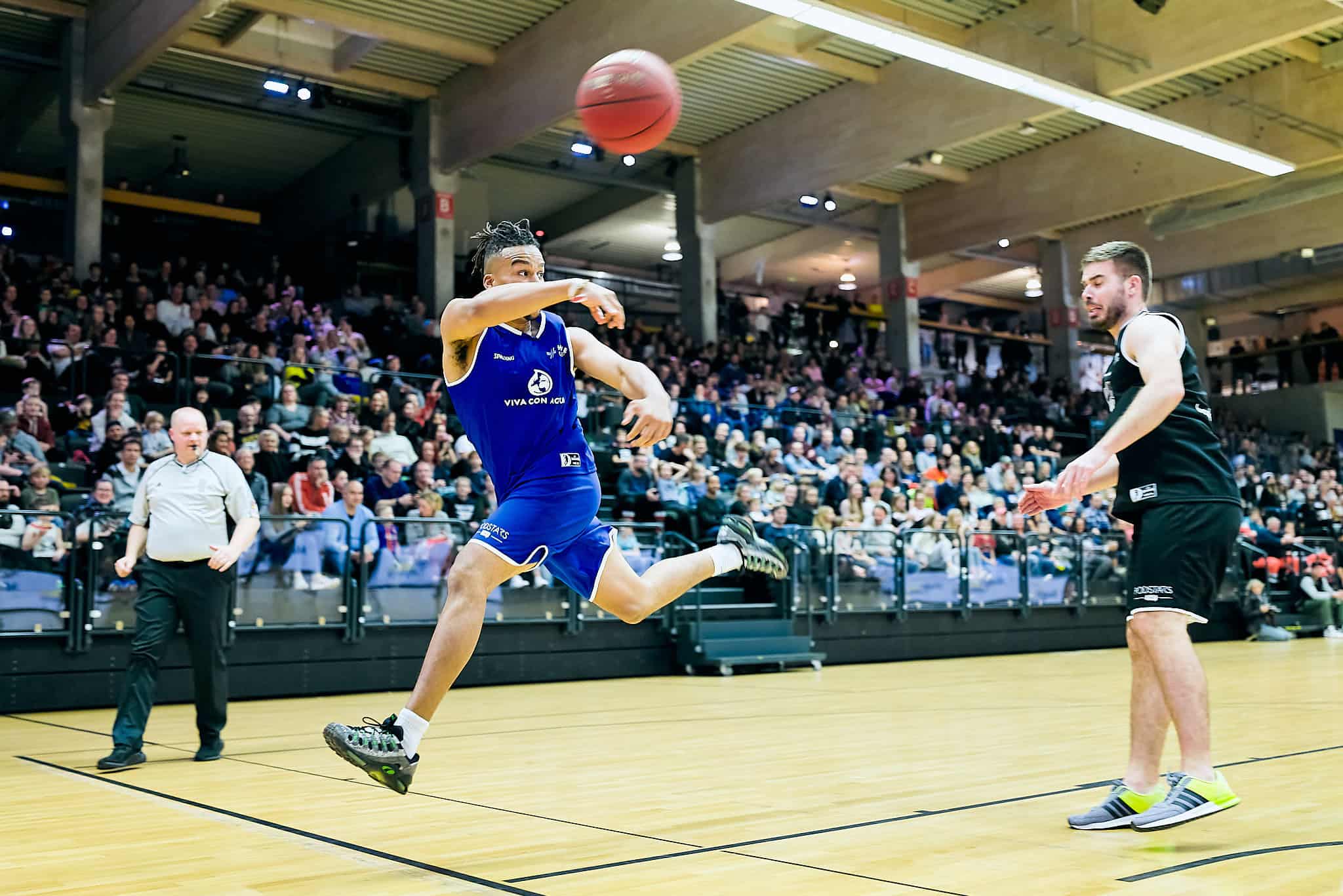 Ach ja: alle Bilder entstanden mit der Leica SL2 in Kombination mit dem Summicron-SL 35mm. Die erste Nagelprobe hat die Kamera also bestanden. Denn bei Hallensport hatte ich echte Bedenken. Aber solange der Autofokus auf Teamsport steht, funktioniert auch das. ISO 1600 bis 3200 sieht man – finde ich – den Bildern nicht unbedingt an. Nachfolgend mal ein sehr stark gecropptes Bild bei ISO2200. Schön auch die Unschärfe im Basketball bei einer Belichtungszeit von 1/750s.