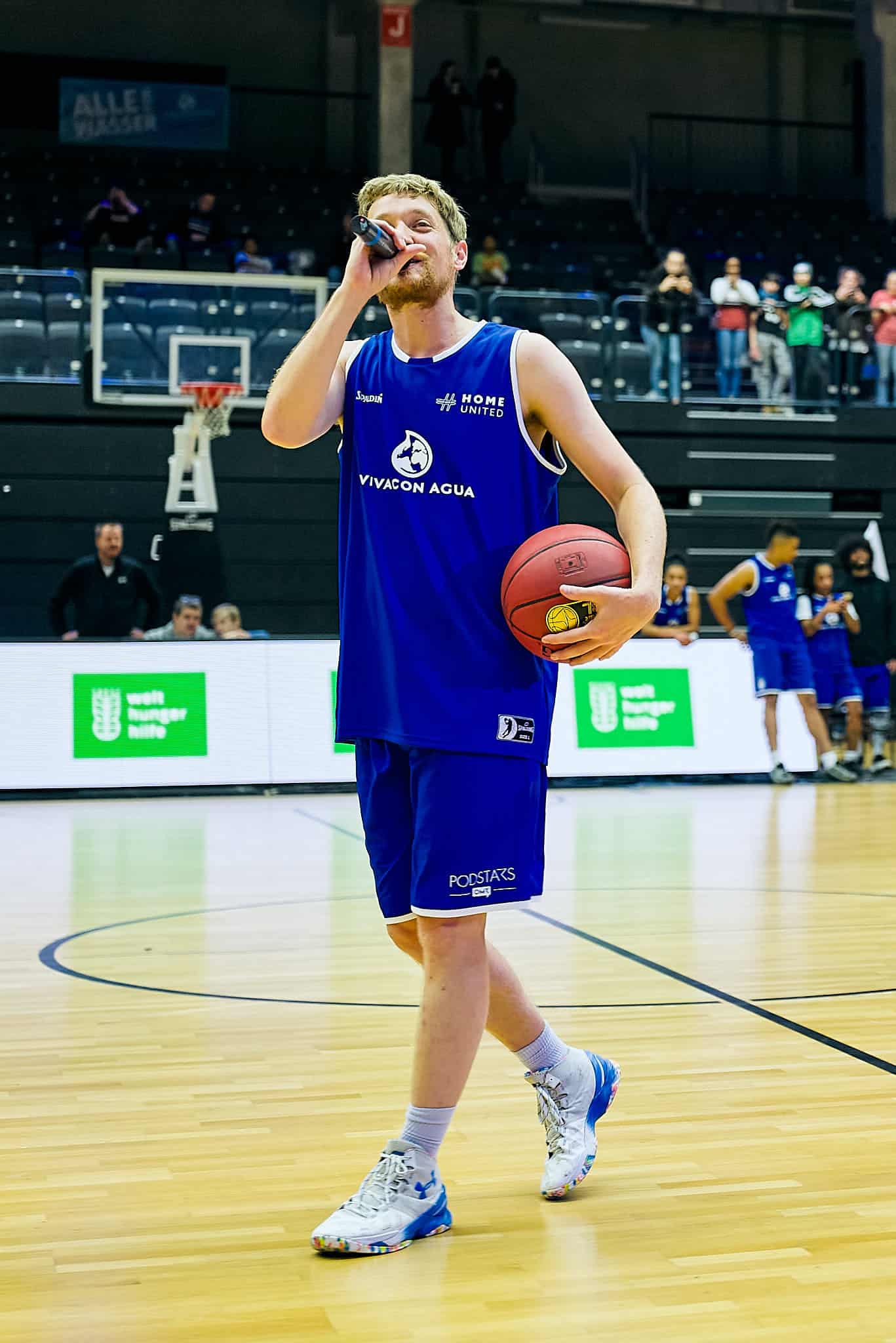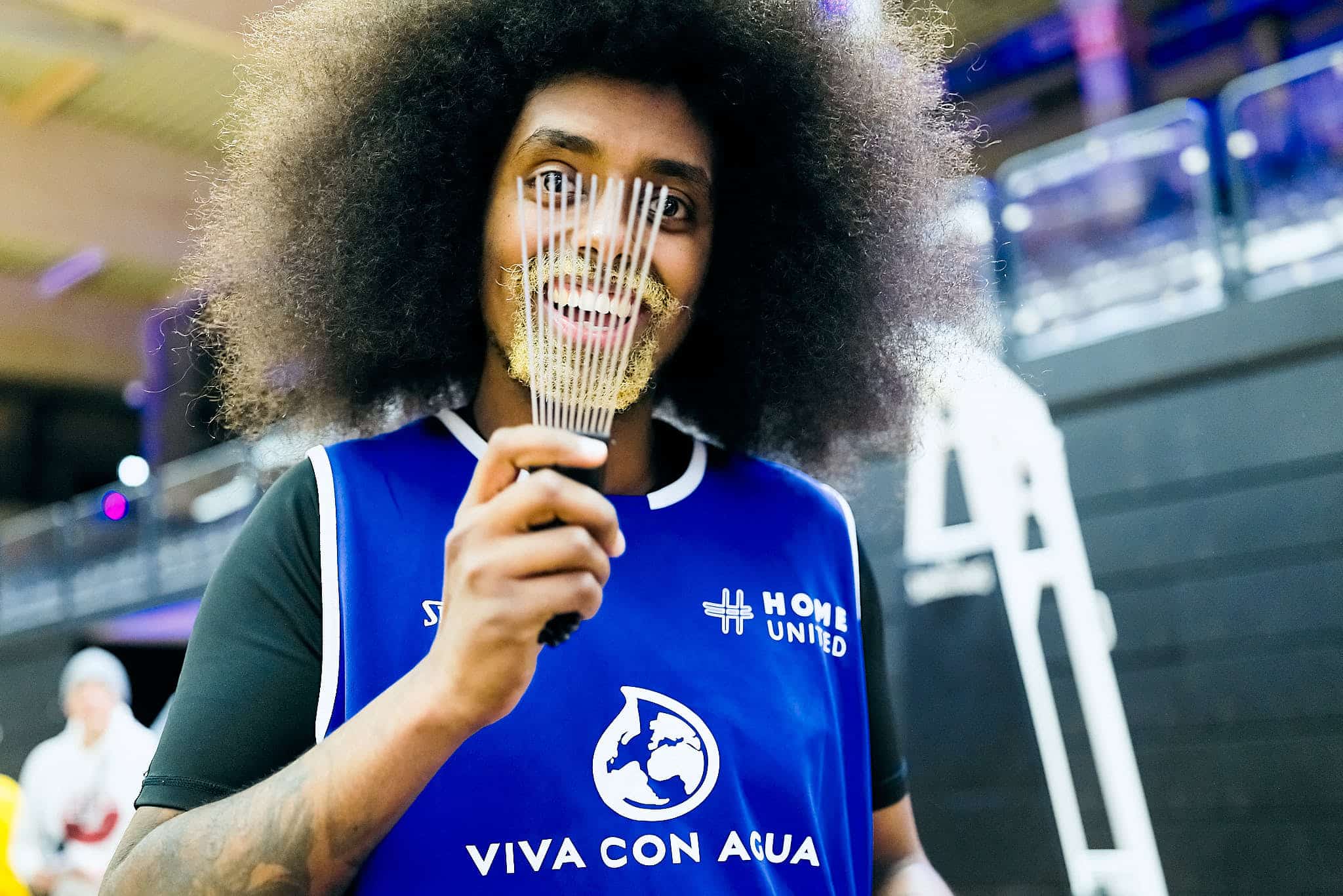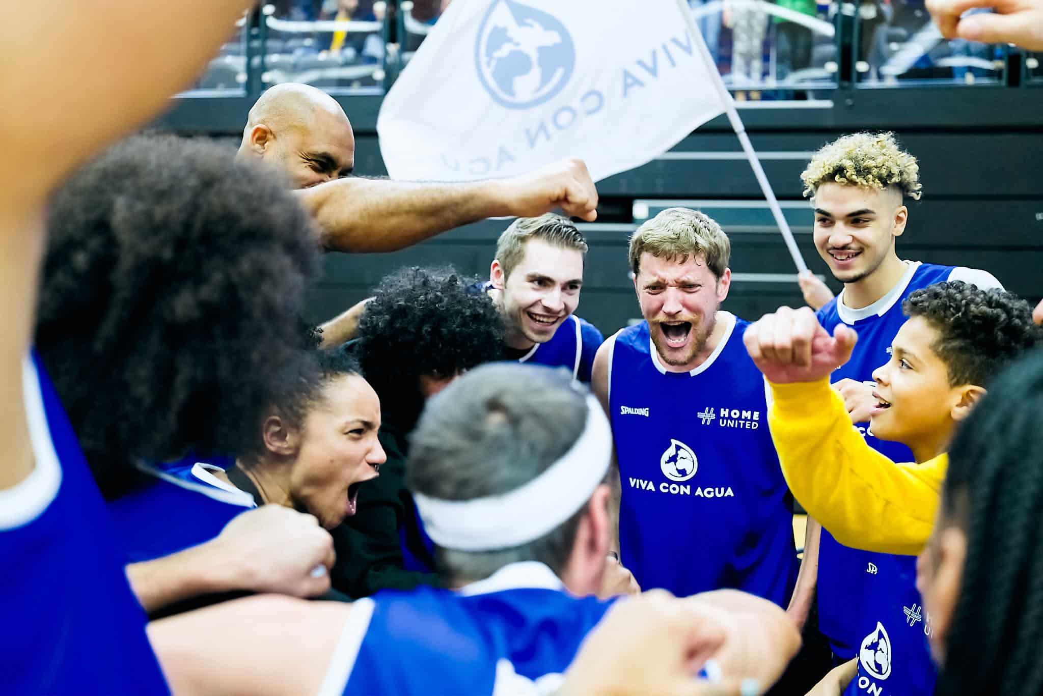 Vorher gab es stellenweise guten Sport und in den Pausen noch musikalische Akts zu sehen und hören. Höhepunkt war dann tatsächlich, dass der letzte Korb des Spiels ein Dreier vom jüngsten Crewmitglied der Viva con Agua Allstars war. Da war die Freude dann besonders groß.