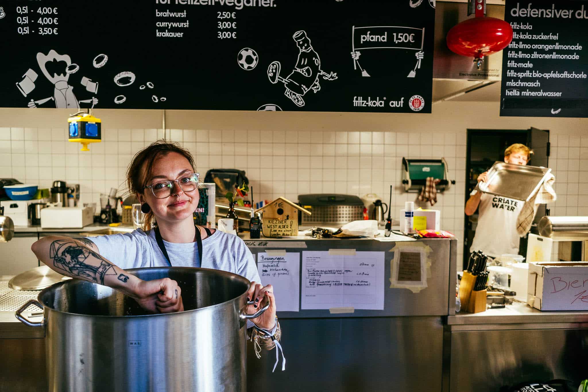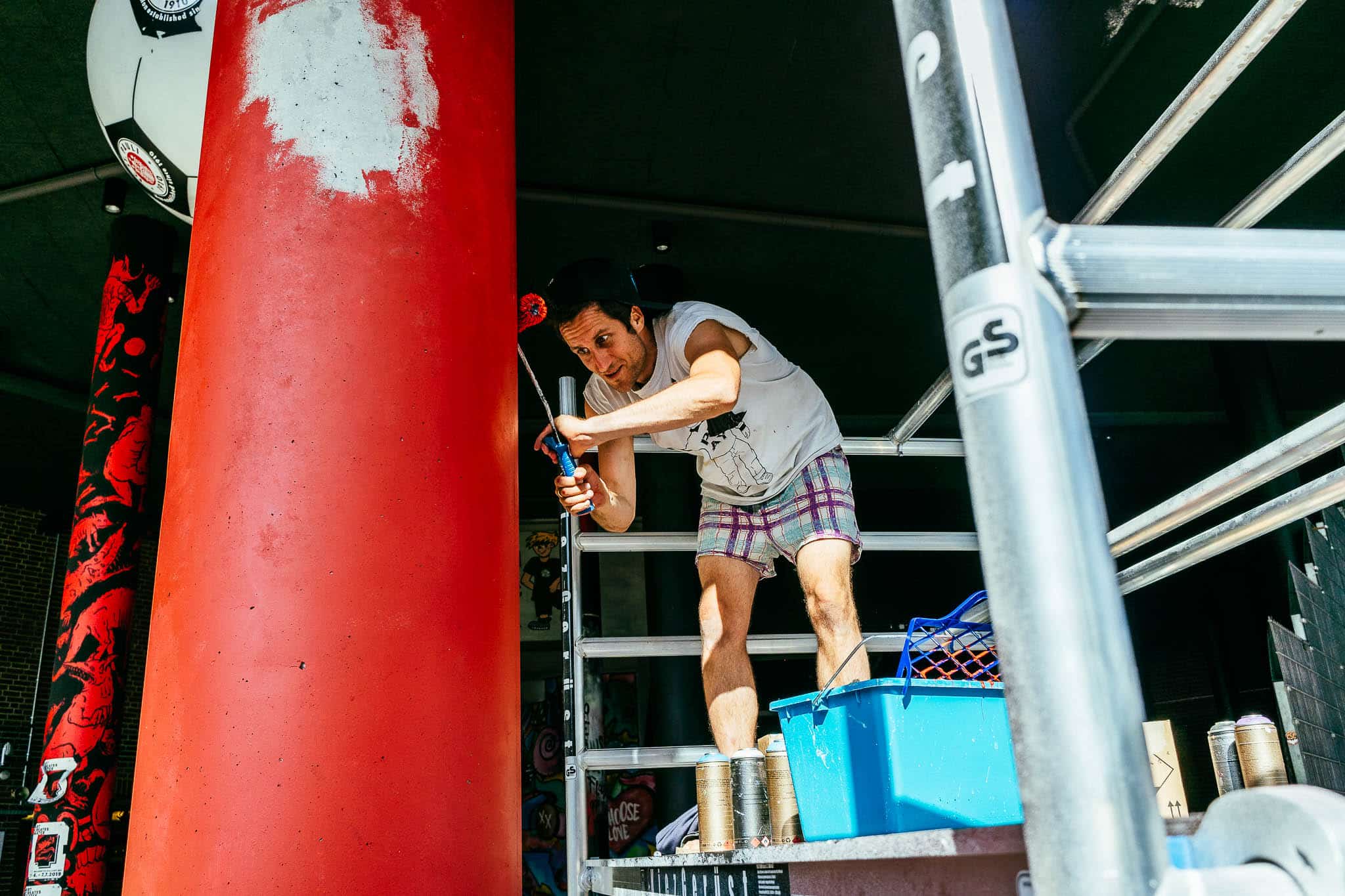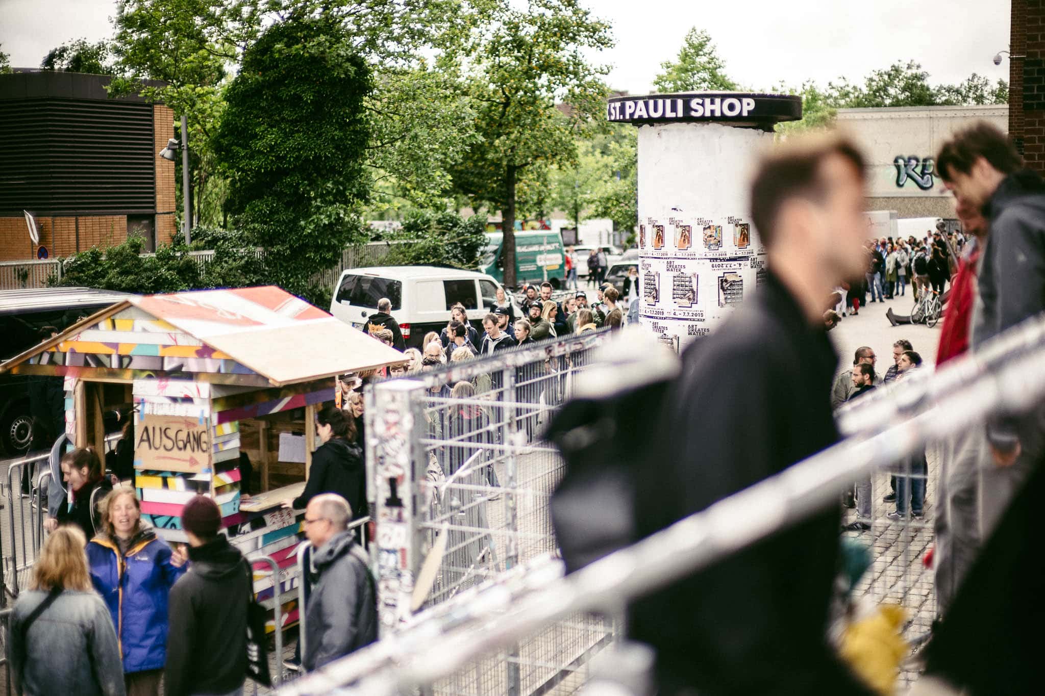 Die Millerntor Gallery ist grundsätzlich mittlerweile so groß geworden, dass es unmöglich ist, alles zu sehen. Zu viele tolle Dinge passieren auch parallel an unterschiedlichen Stellen im Stadion. Daher sind auch meine Erlebnisse nur Ausschnitte. Obwohl ich 8 Tage am Stück vor Ort war, sah ich in den Instagram Streams der Veranstaltung immer wieder Objekte und Begegnungen, die ich verpasst hatte. Du fragst dich nun vielleicht, wie ich bei einer 4 Tage Veranstaltung 8 Tage dabei sein kann? Zum einen finden Veranstaltungen für eine definierten Teilnehmerkreis immer schon vorab statt – wie zum Beispiel drei Tage vor Eröffnung der Instagram-Walk. Und zum anderen nutze ich das Wochenende vorher schon, um Künstlerinnen bei der Arbeit zu zusehen und Helferinnen im Weg rum zu stehen.